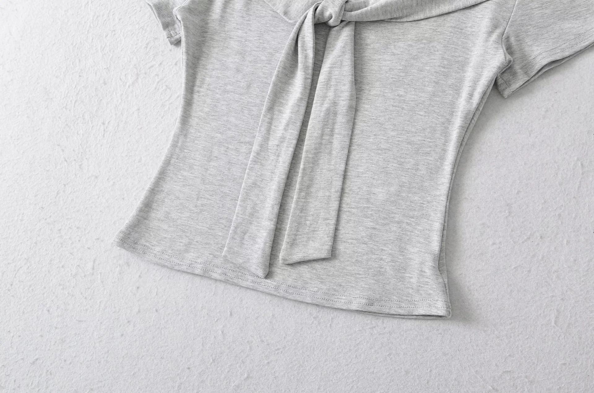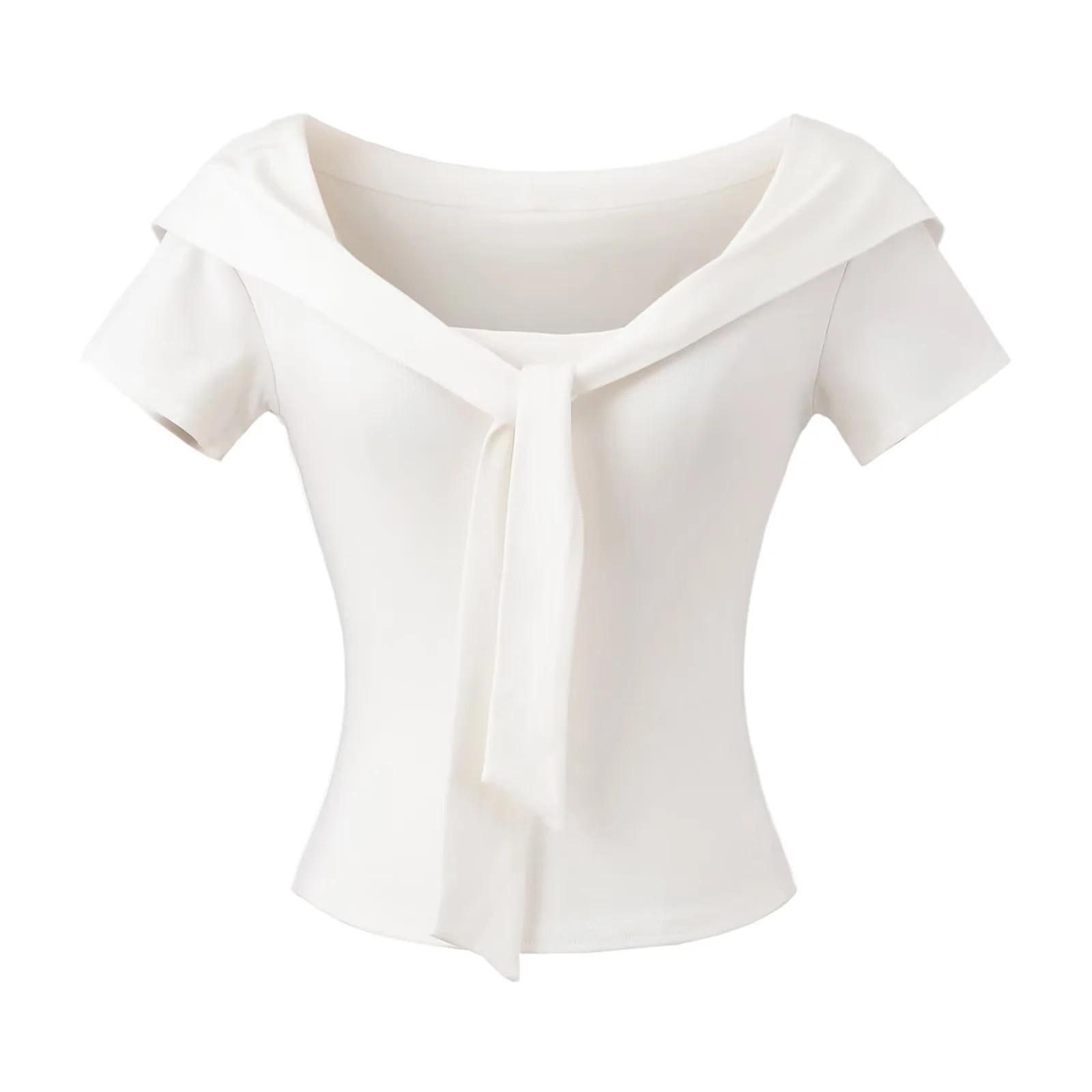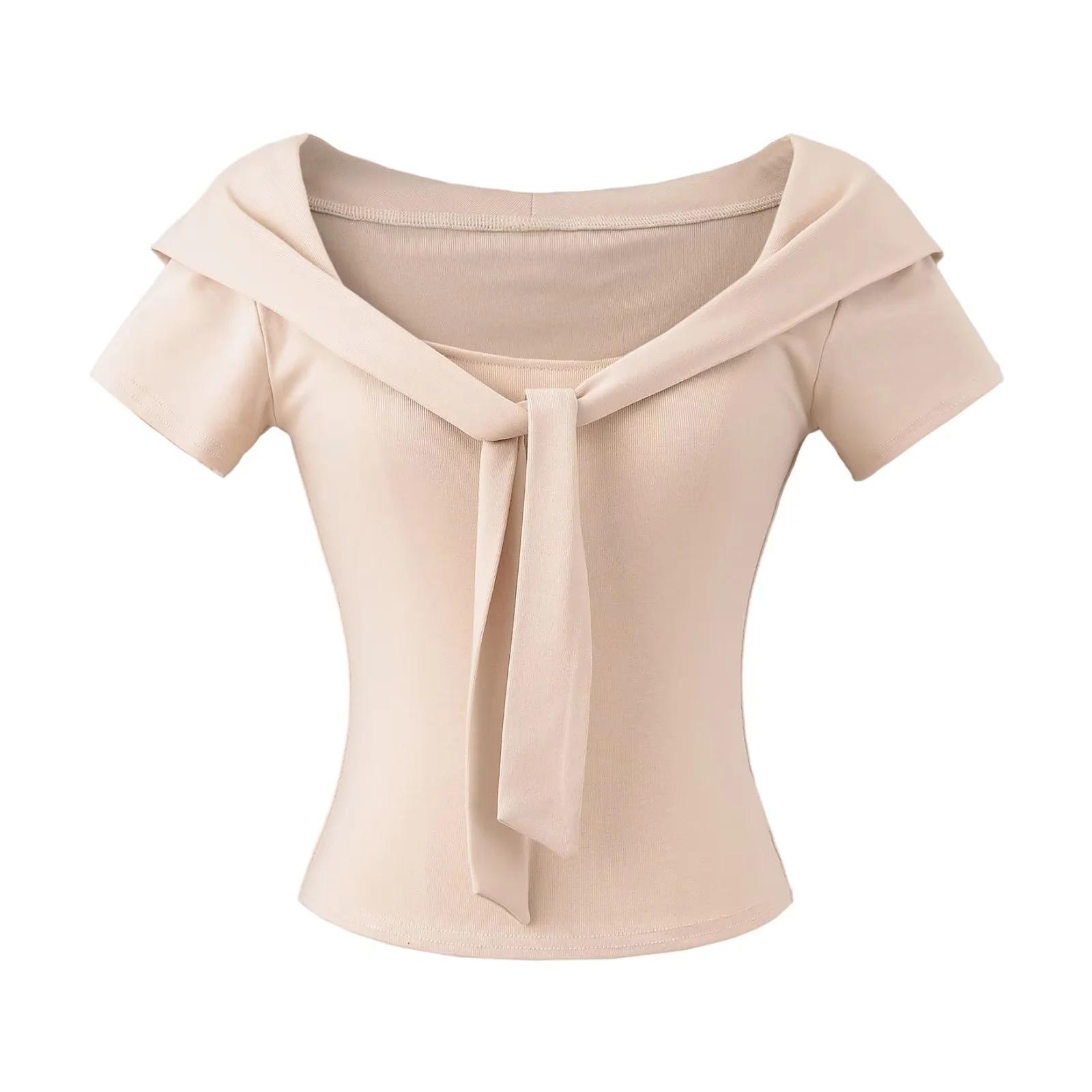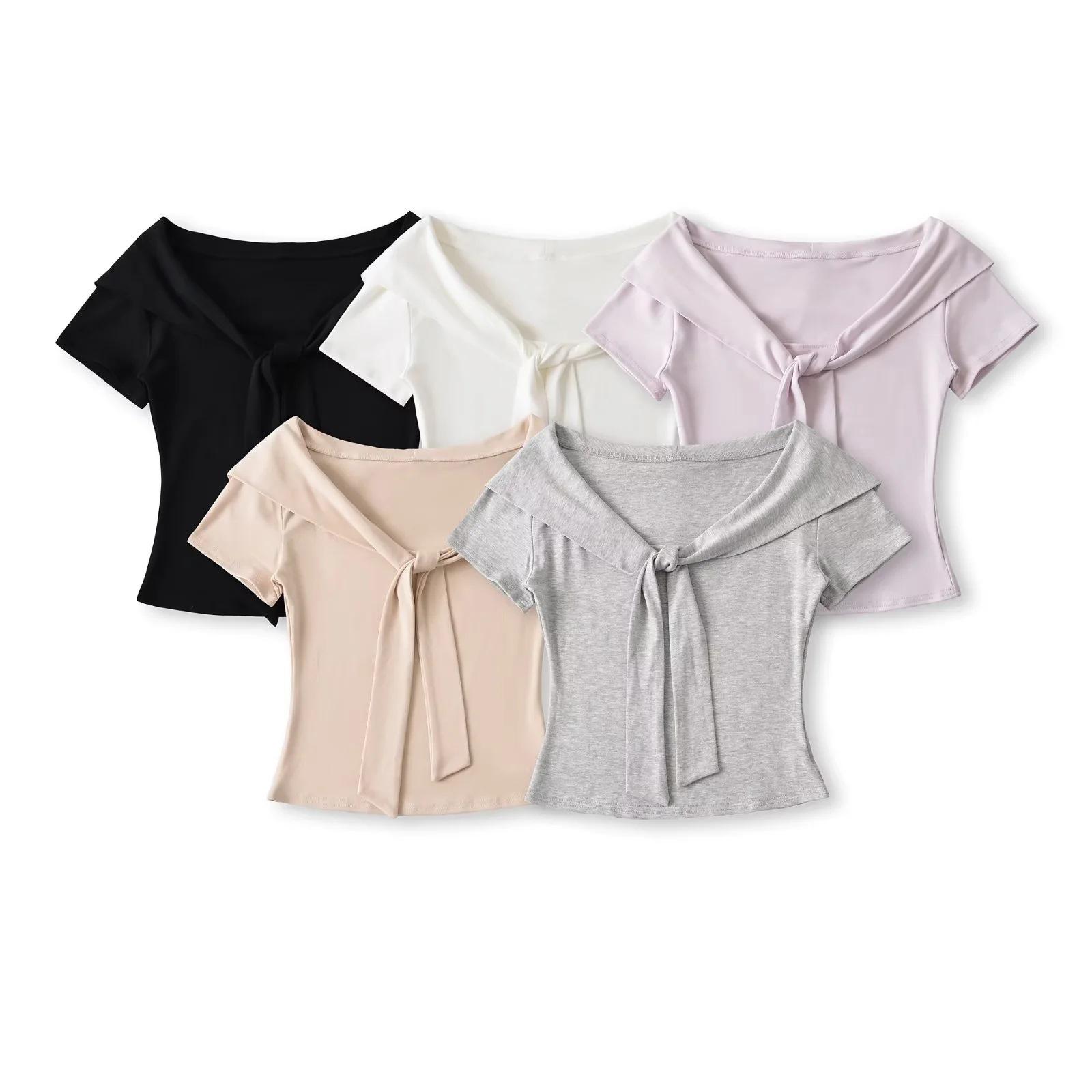Diseño de Verano Dulce y Picante Look Adelgazante Chal Corto Top con Cordones Estilo Coreano Morado Hombro Derecho Camiseta de Manga Corta para Mujer