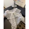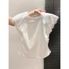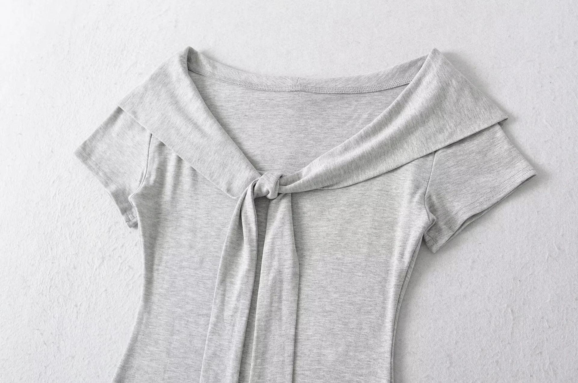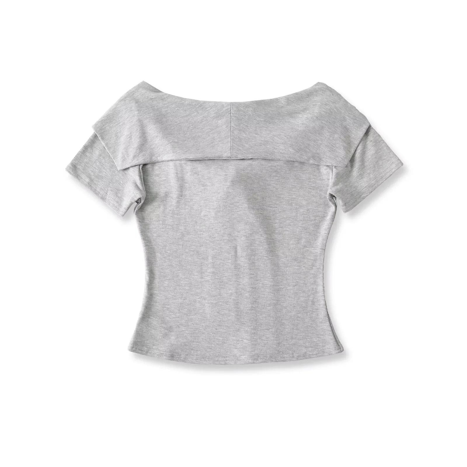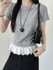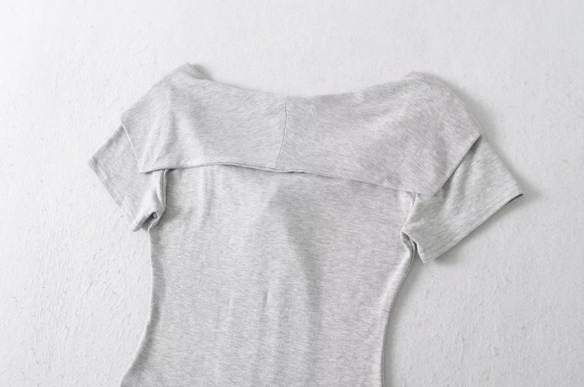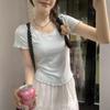 Diseño de Verano Dulce y Picante Look Adelgazante Chal Corto Top con Cordones Estilo Coreano Morado Hombro Derecho Camiseta de Manga Corta para Mujer