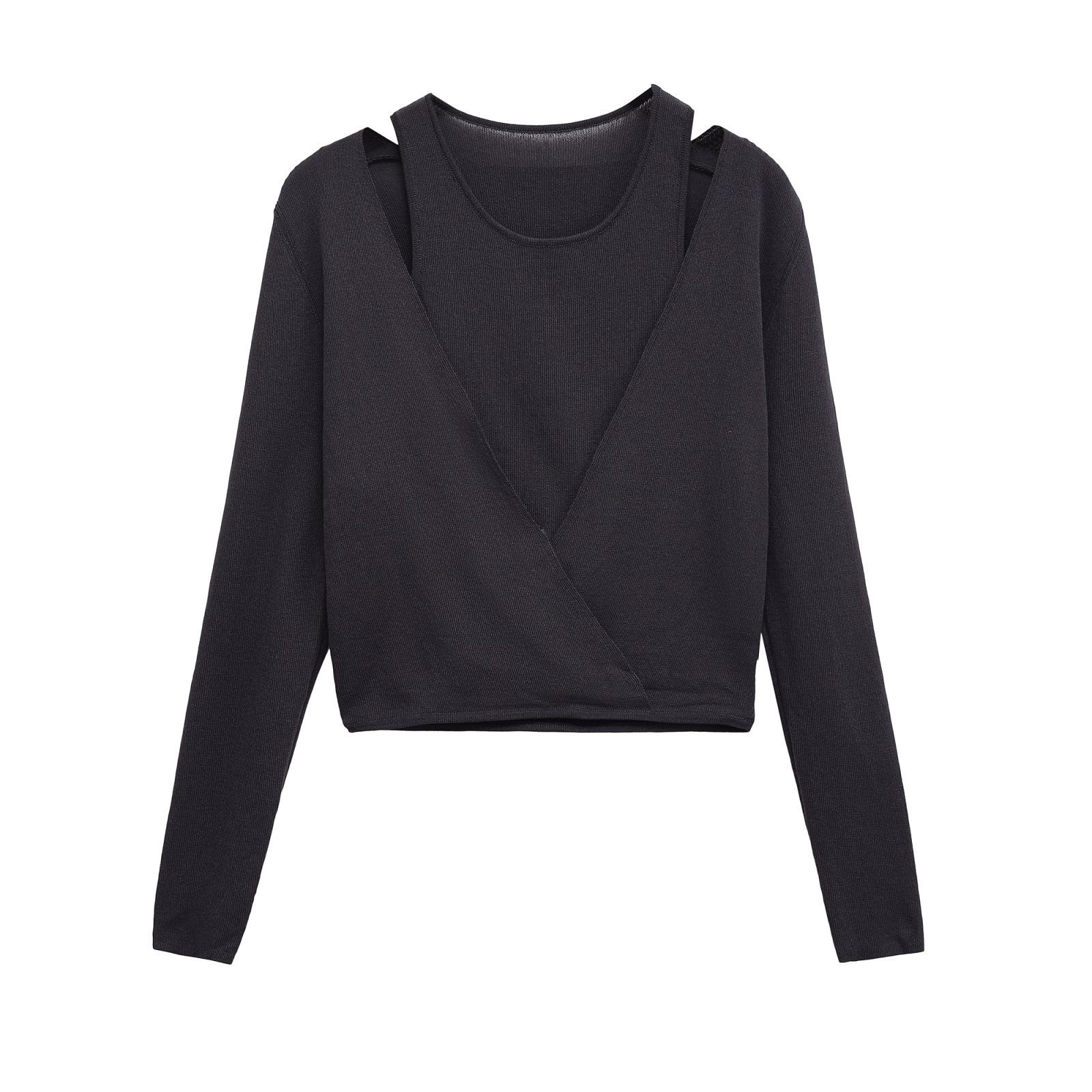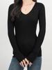 Otoño 2025 Nuevo Top de Punto de Manga Larga con Cuello Redondo y Ajuste Entallado para Mujer, Estilo Europeo y Americano Transfronterizo w08 26244