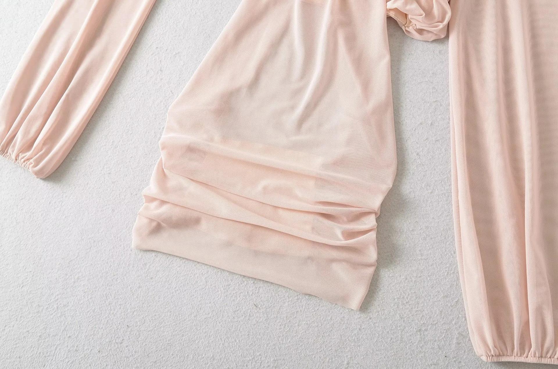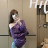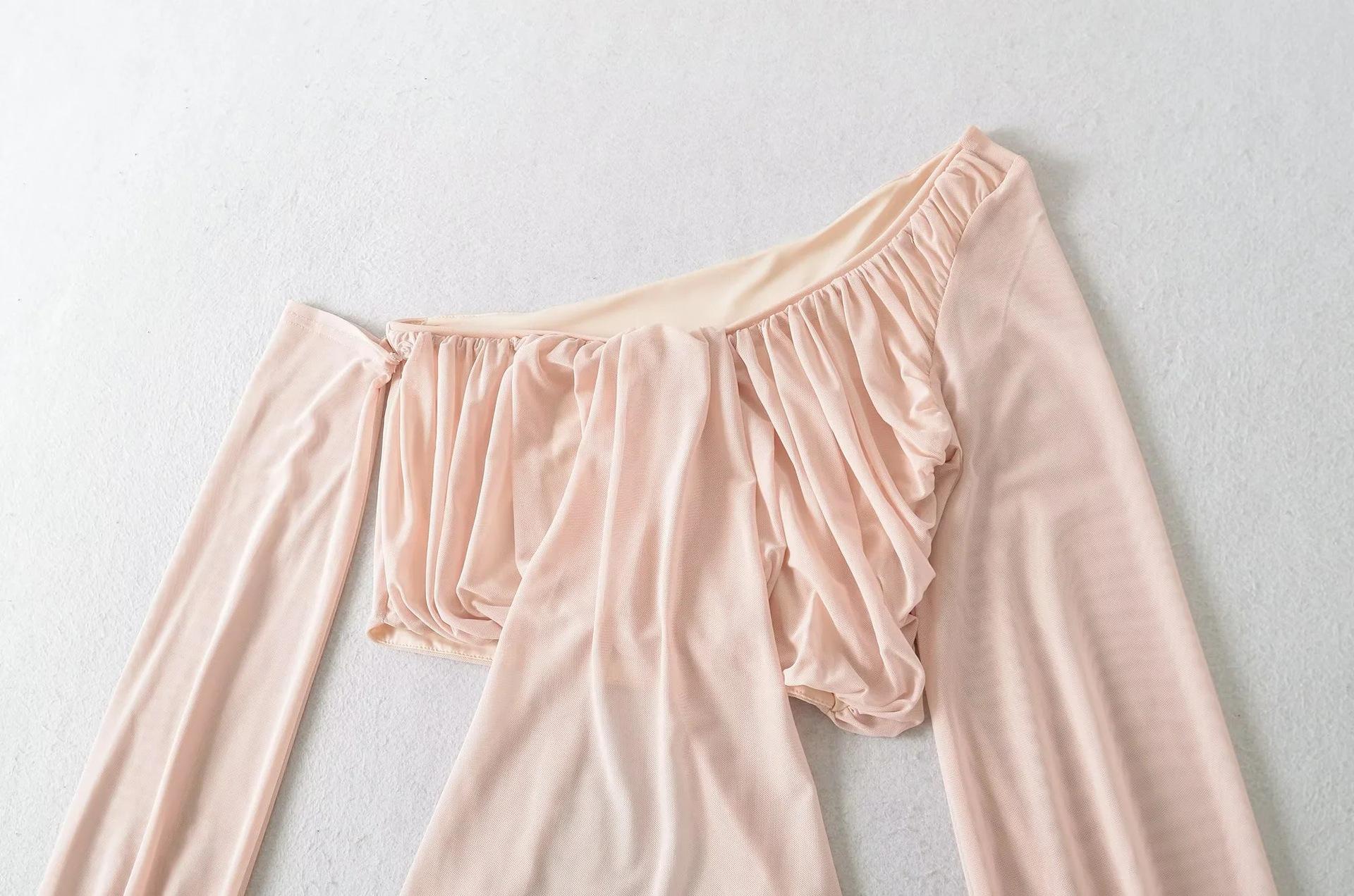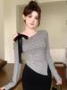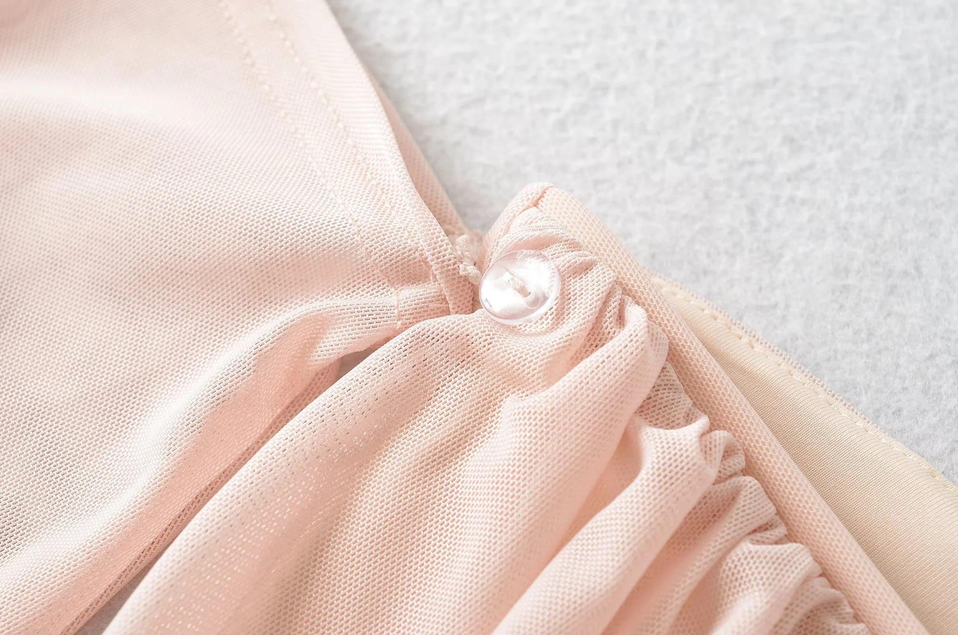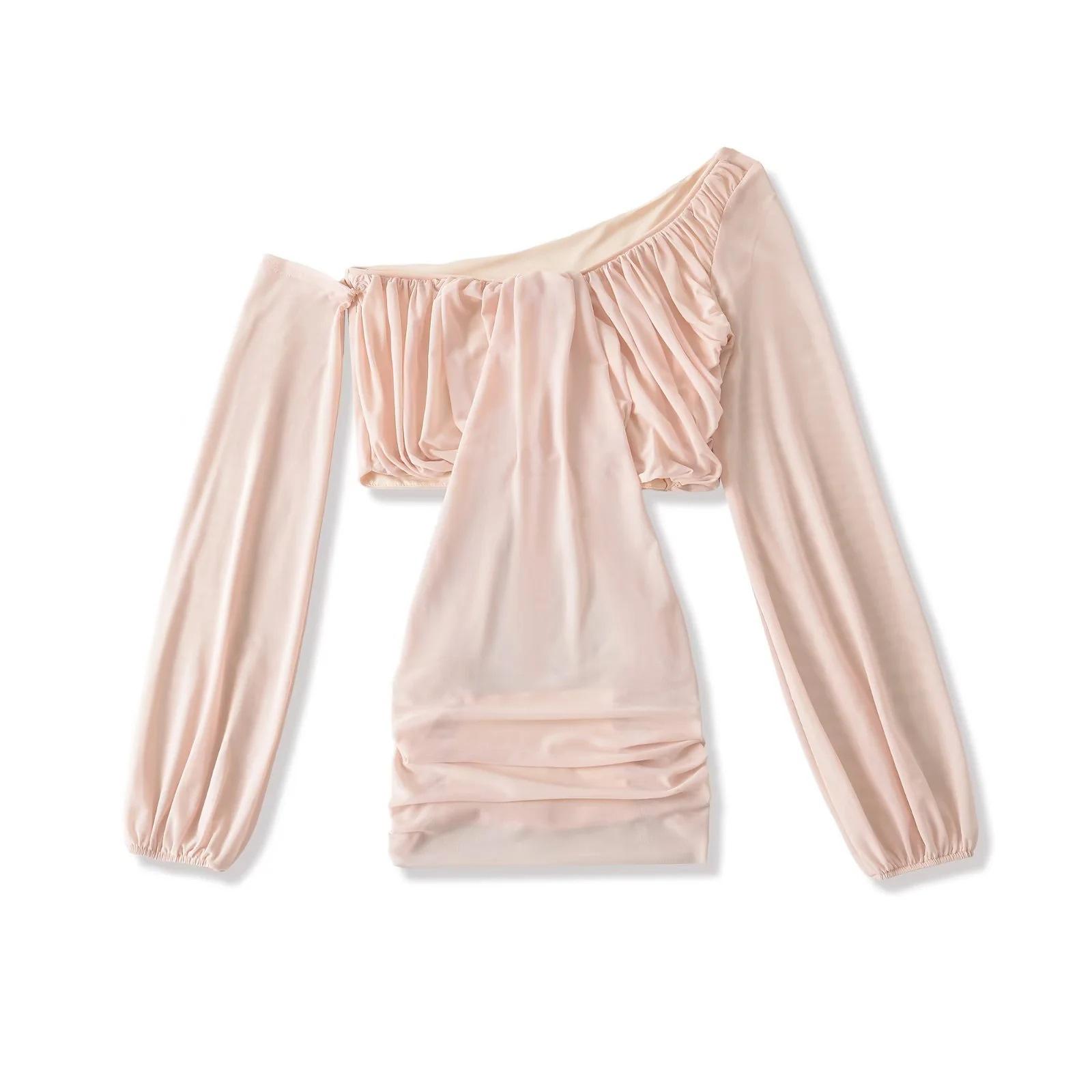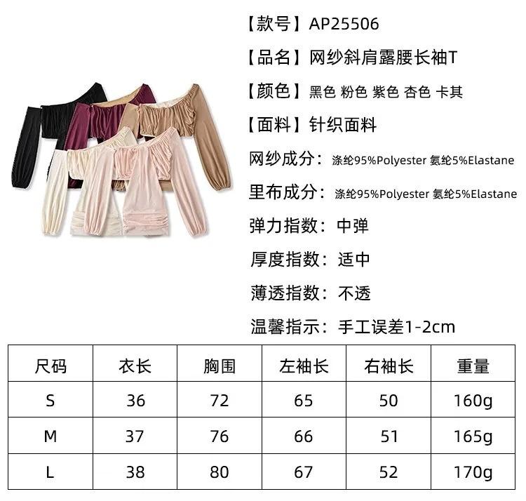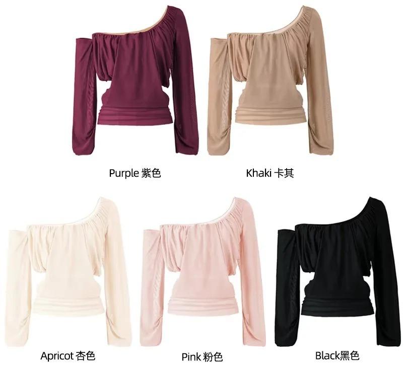 Playera Irregular de Deseo Puro de Un Hombro y Manga Larga para Mujer Verano Malla Patchwork Diseño Fruncido Adelgazante Sentido Top de Chica Caliente