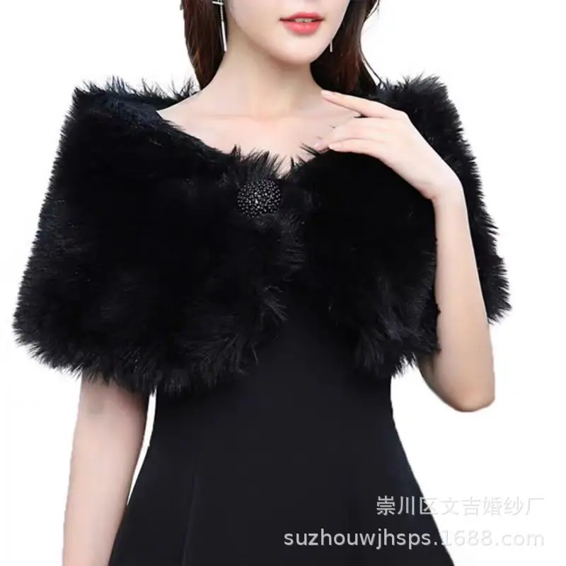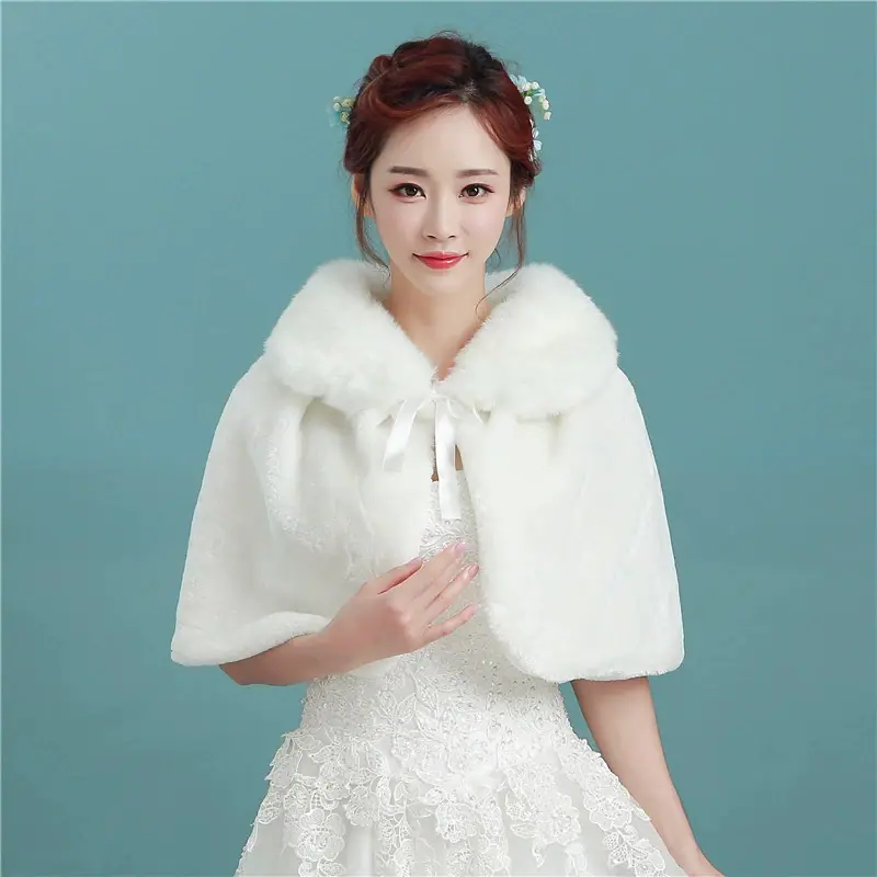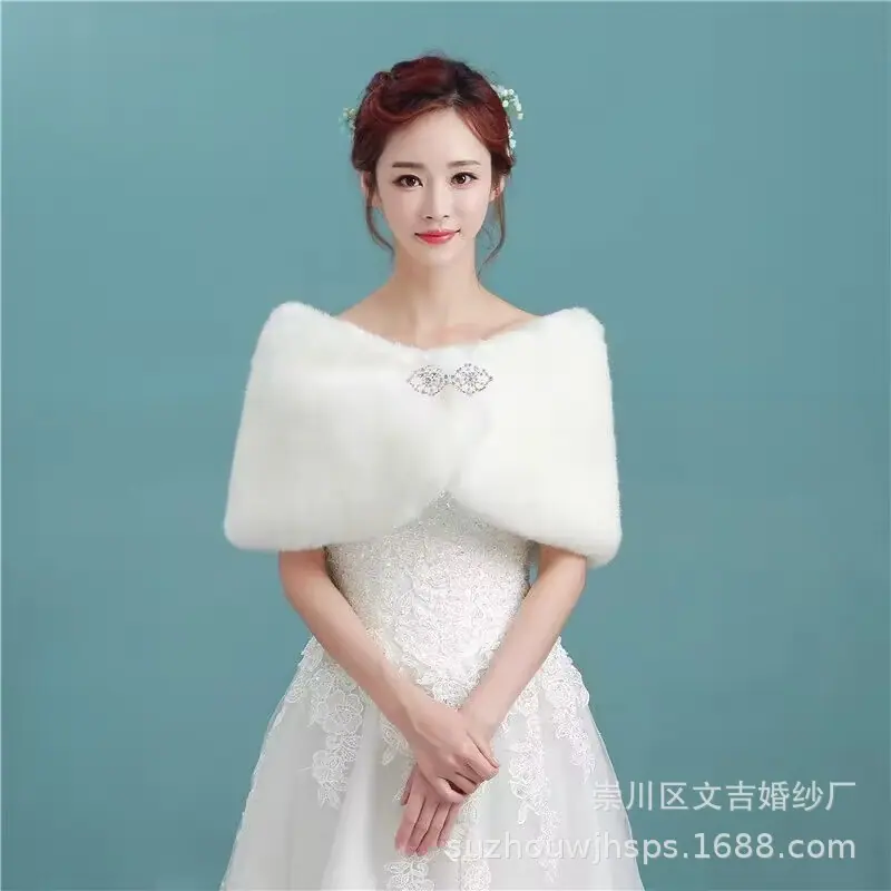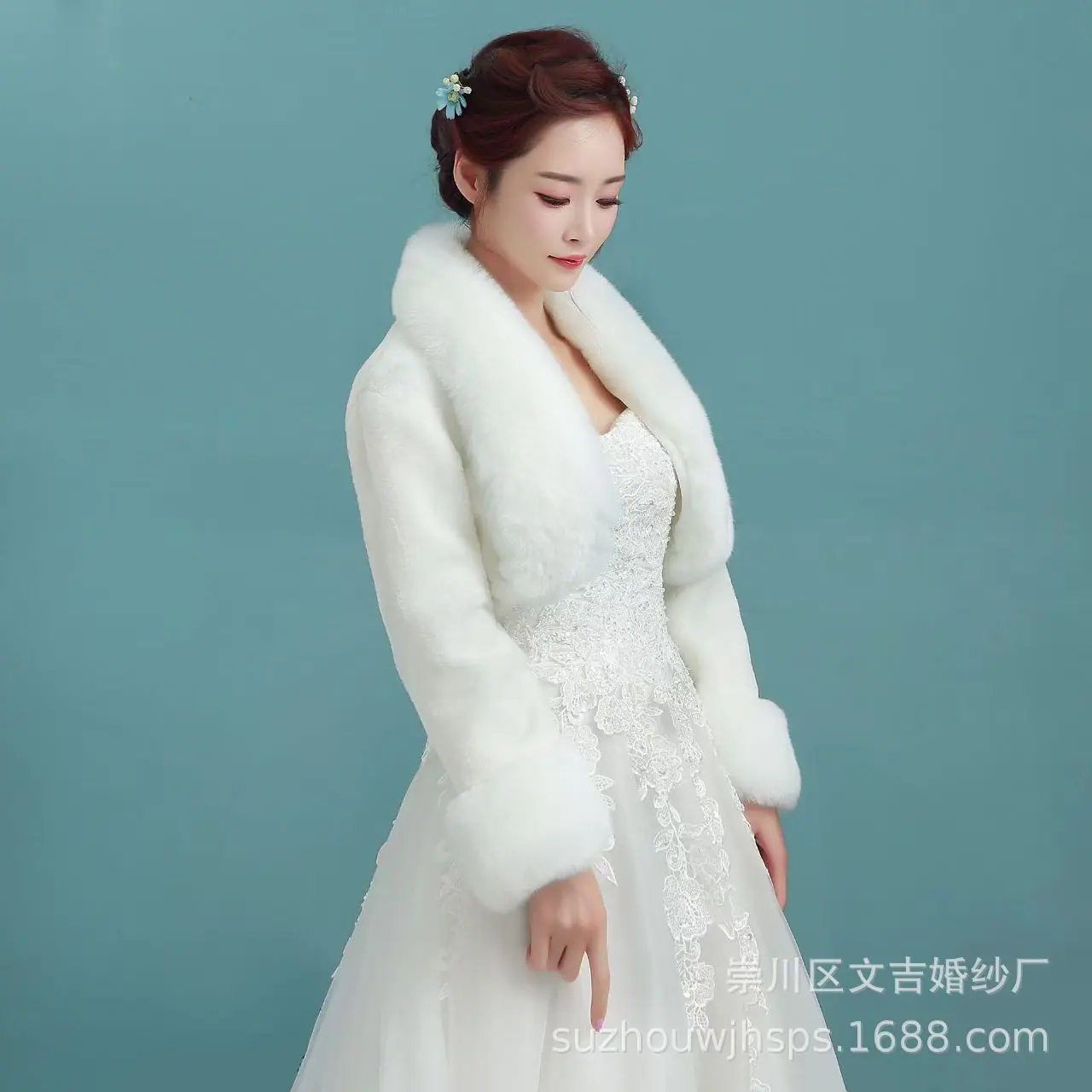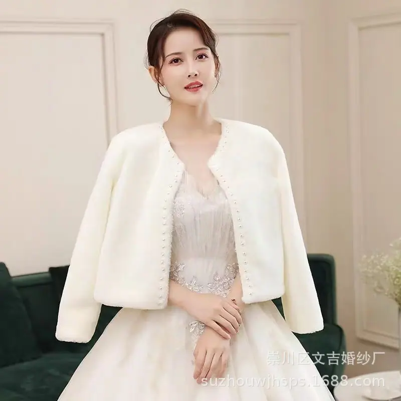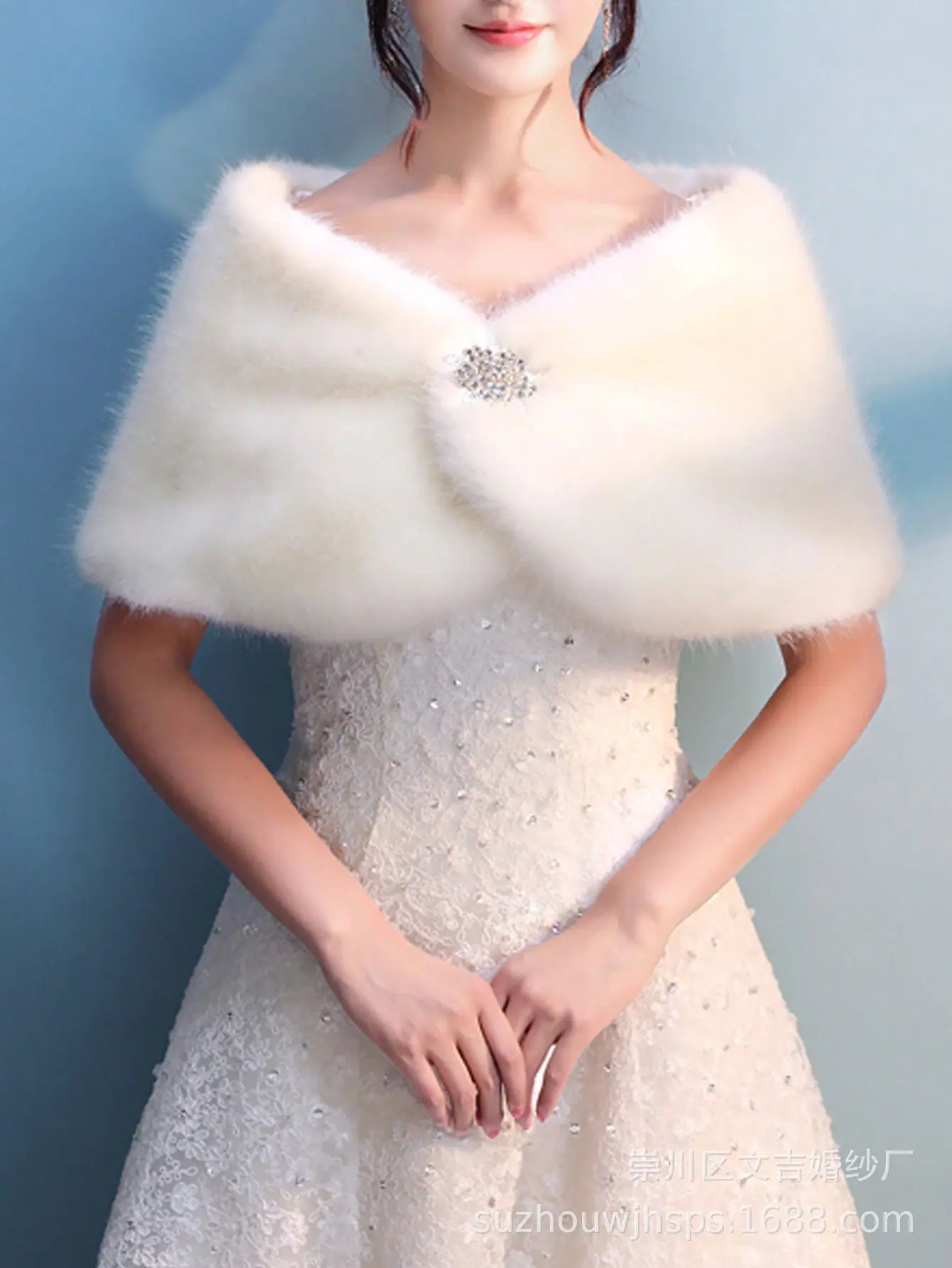 Vestido de Novia Otoño e Invierno Chal de Piel de Imitación Perla Piel Sintética Cálido Diario Foto Capa Clásica