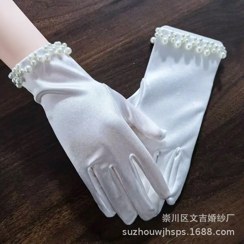 Suministro Directo de Fábrica Guantes de Boda de Satén Perlado para Novia Guantes Ceremoniales Guantes de Danza para Actuación Guantes de Boda al por Mayor