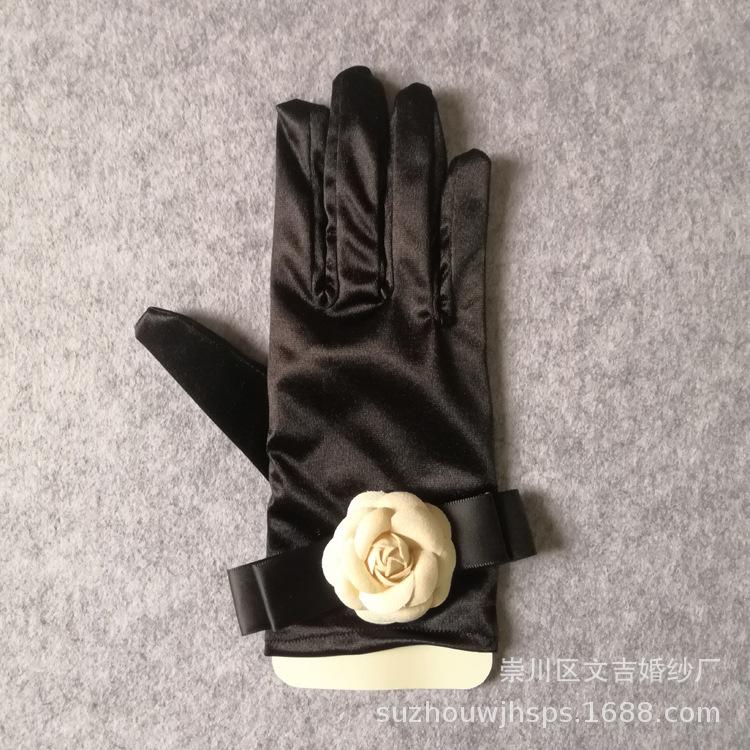 Guantes de Novia Coreanos Vestido de Novia Vestido de Noche Accesorios Cortos Satén Cinco Dedos Todo Incluido Otoño e Invierno Venta al por Mayor