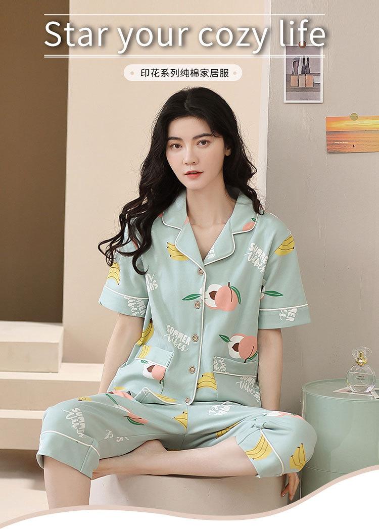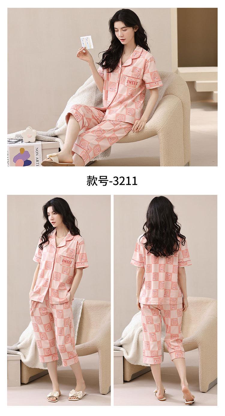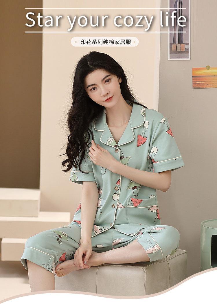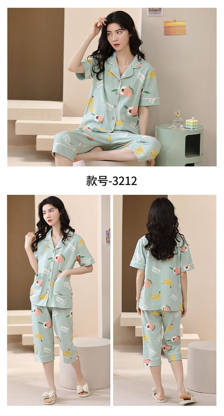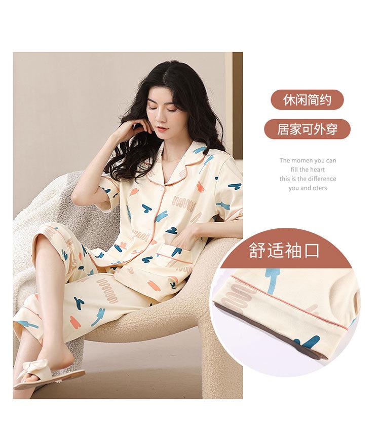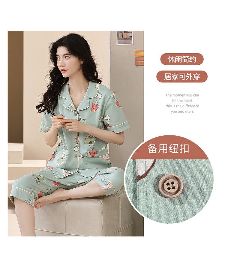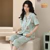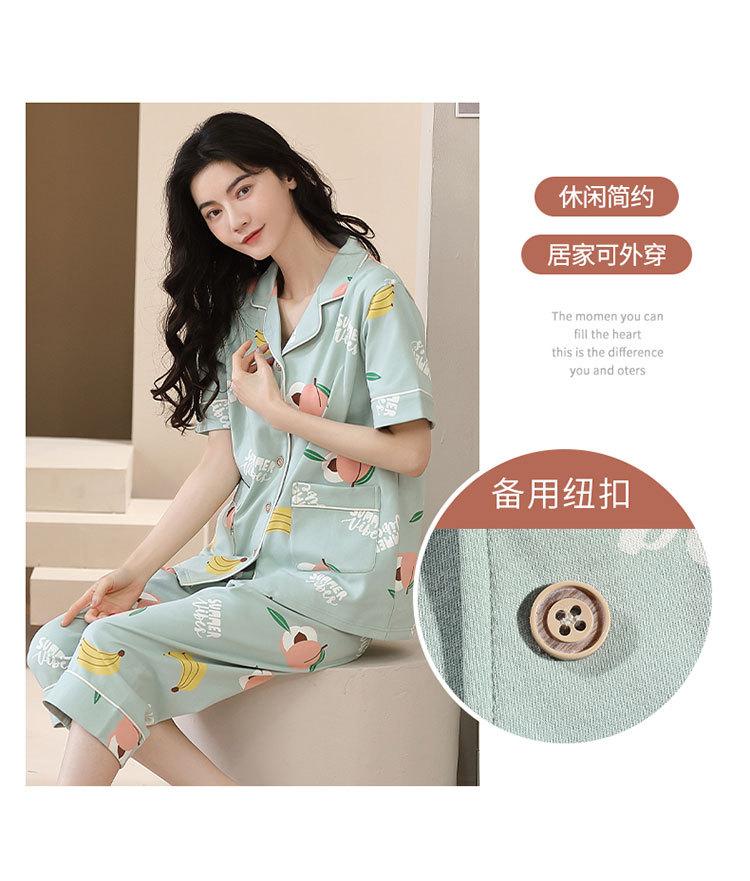 Pijama de Verano de Manga Corta Nuevo de Algodón Pantalones Capri Abrigo Delgado Traje Casual de Verano