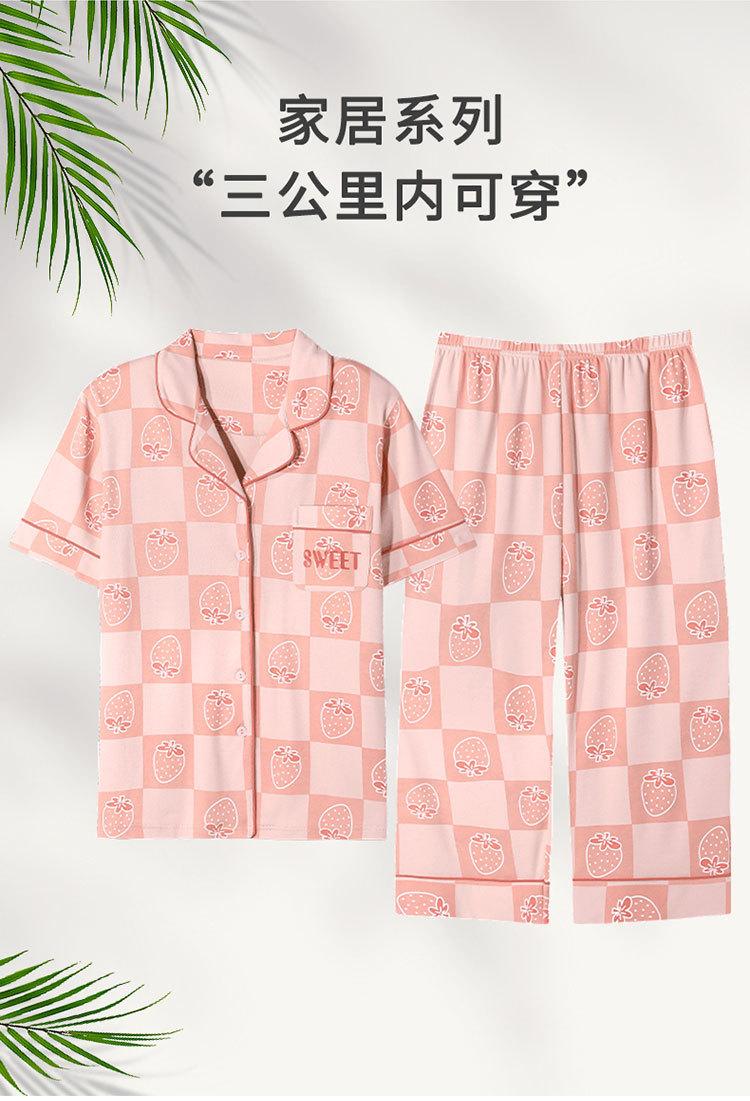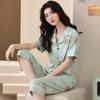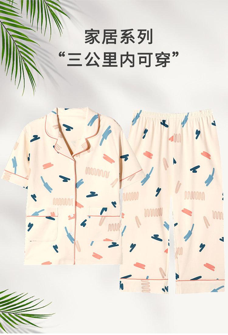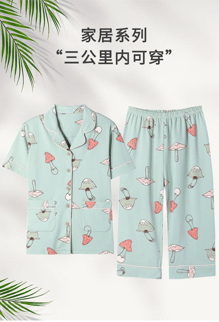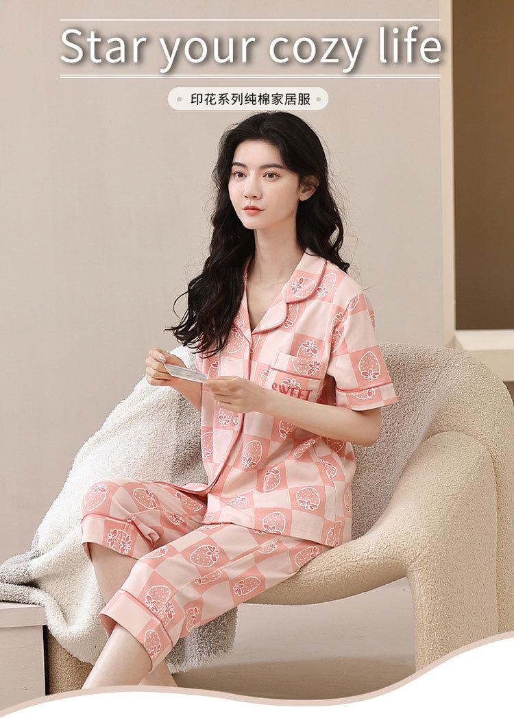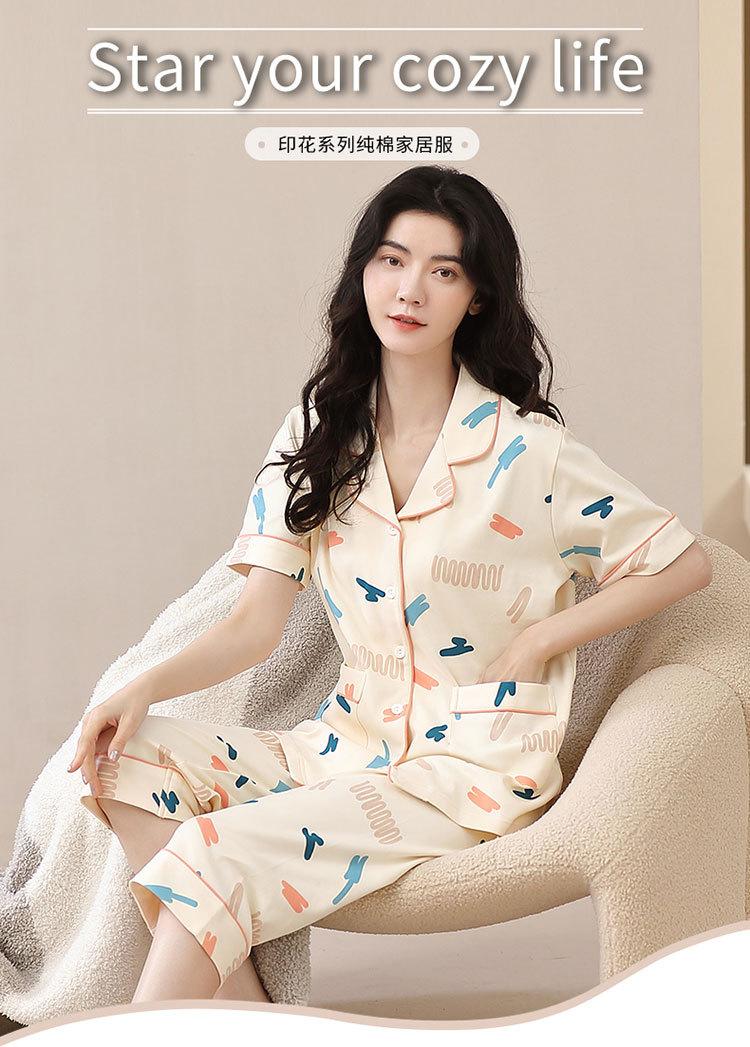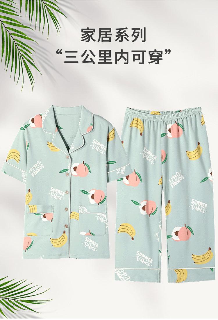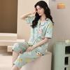 Pijama de Verano de Manga Corta Nuevo de Algodón Pantalones Capri Abrigo Delgado Traje Casual de Verano