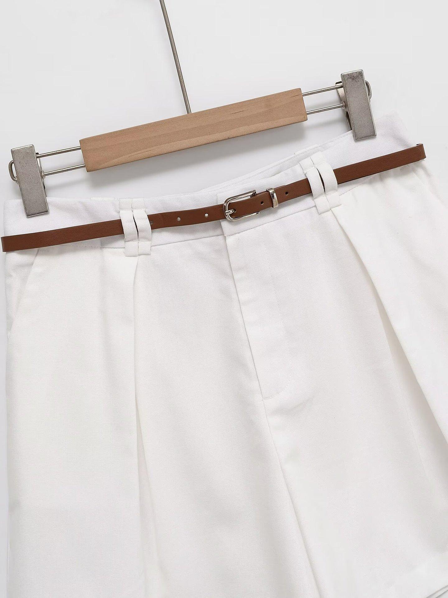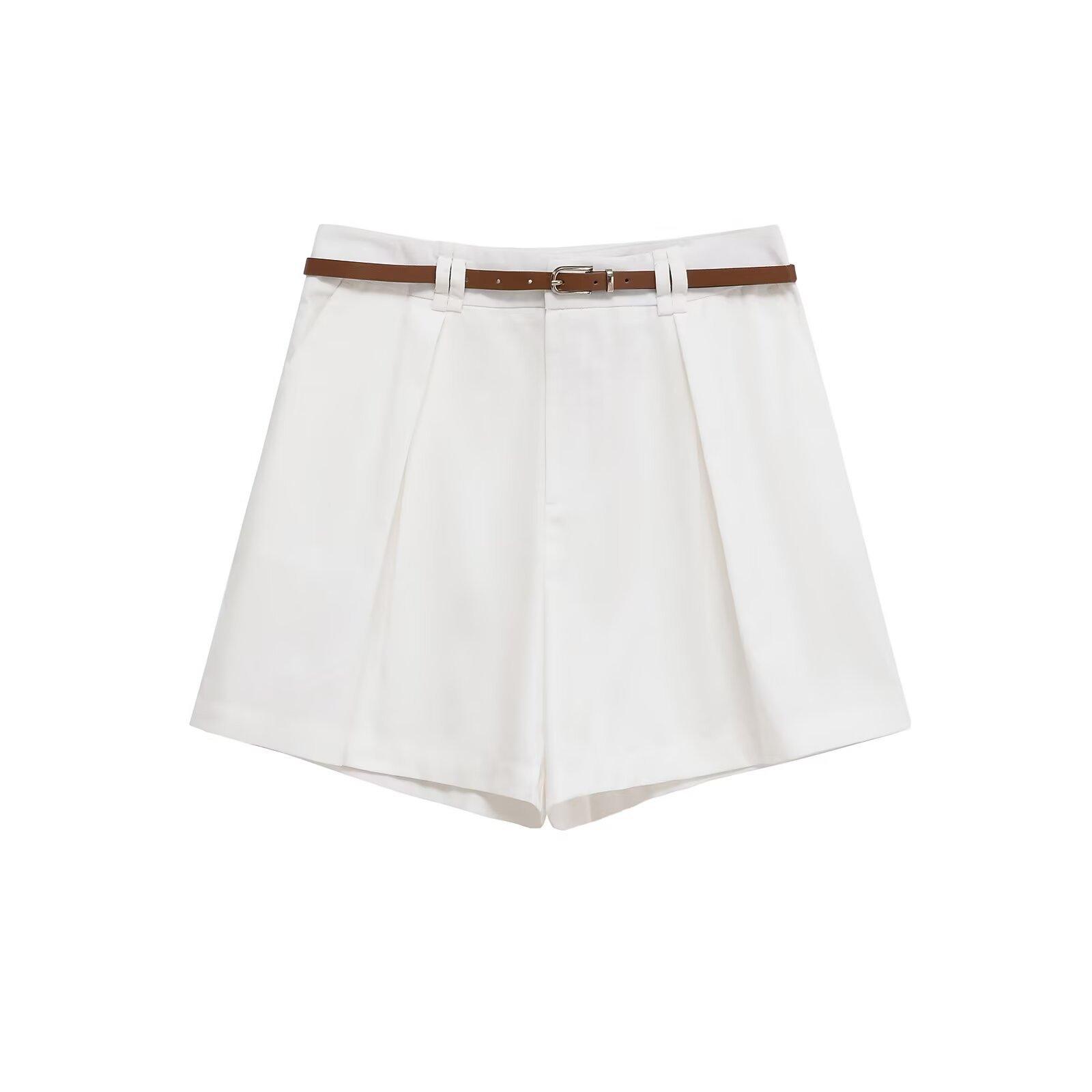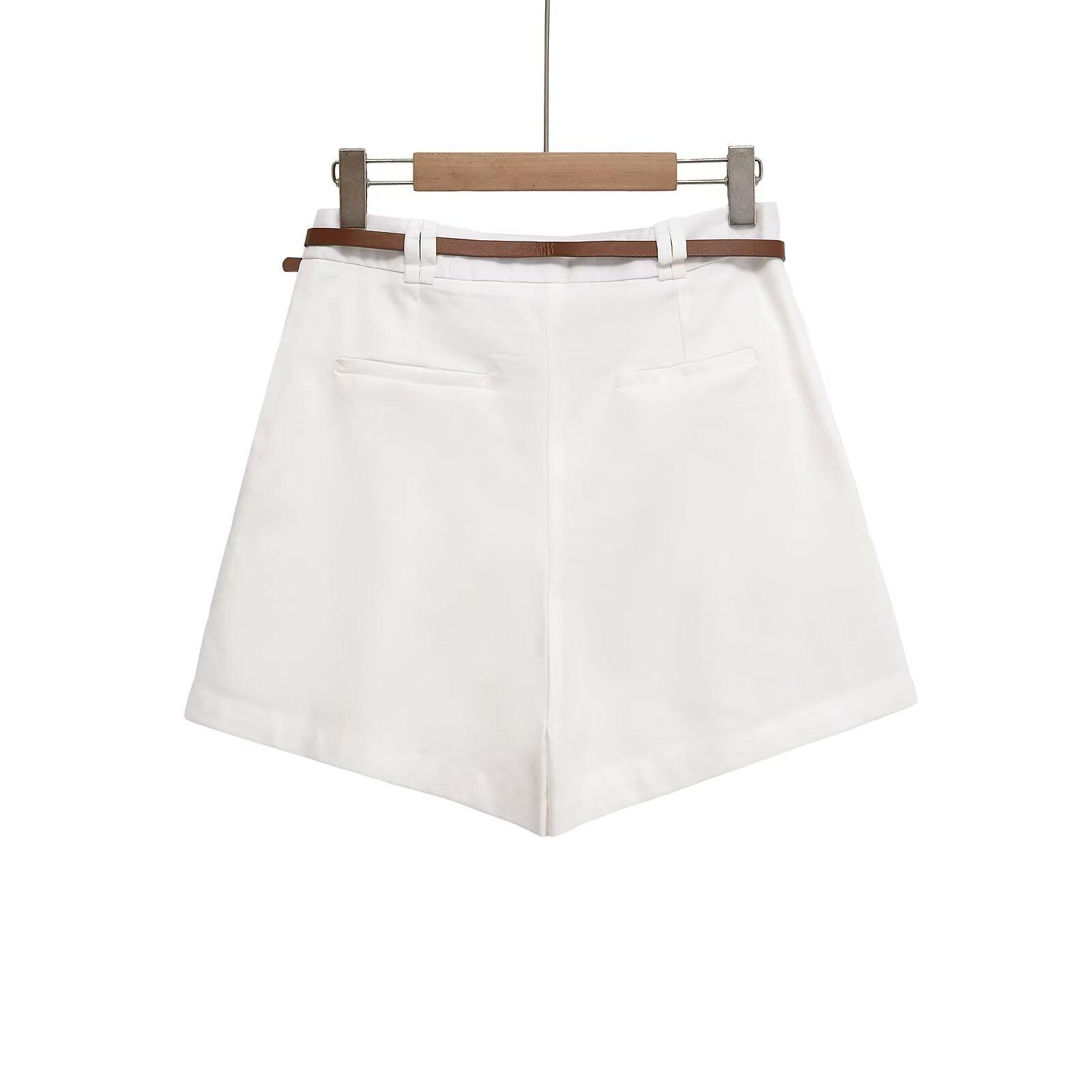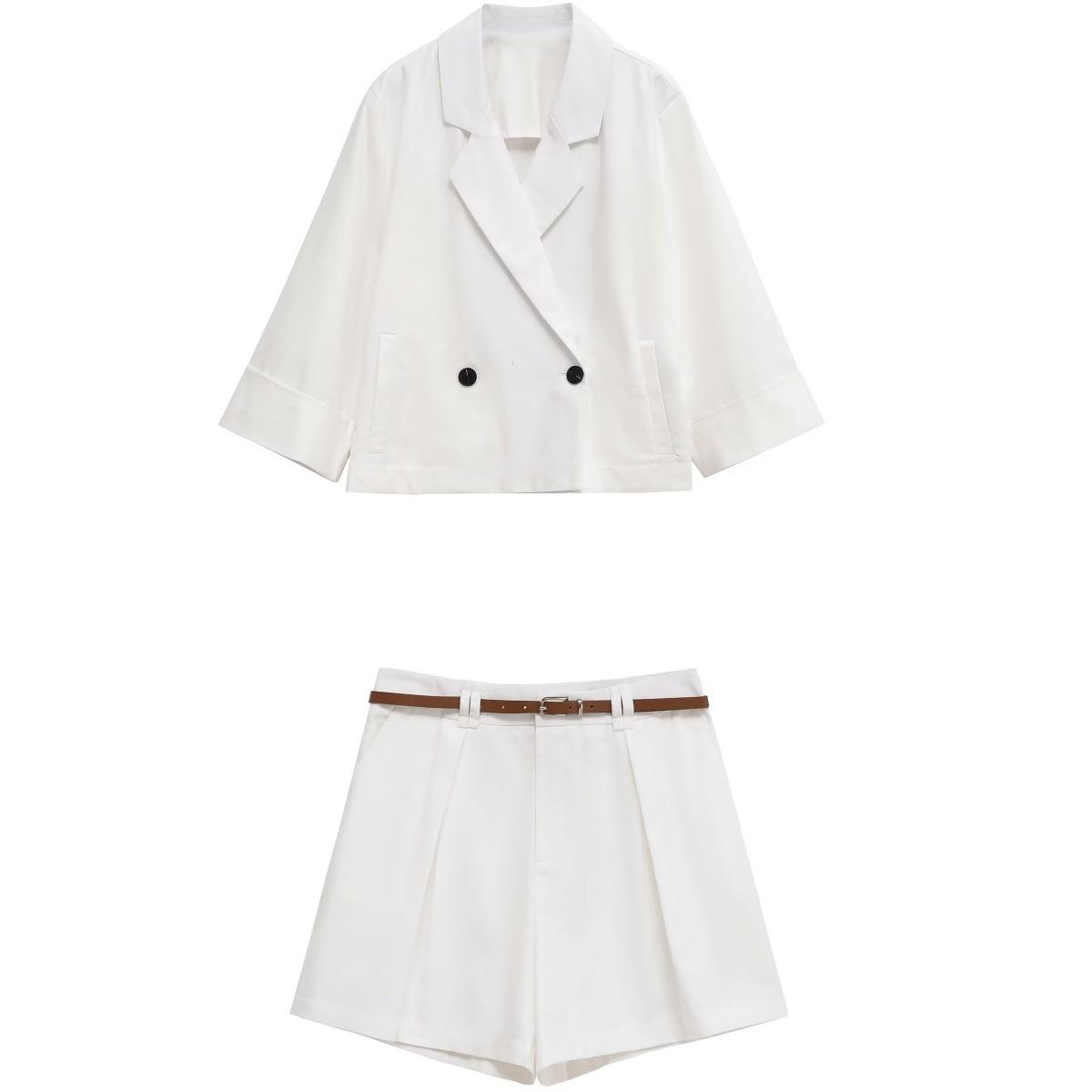 Exportación Transfronteriza Ropa de Mujer 2025 Verano Estilo Europeo y Americano Traje Corto Chaqueta + Cinturón Shorts Traje Mujer Blanco