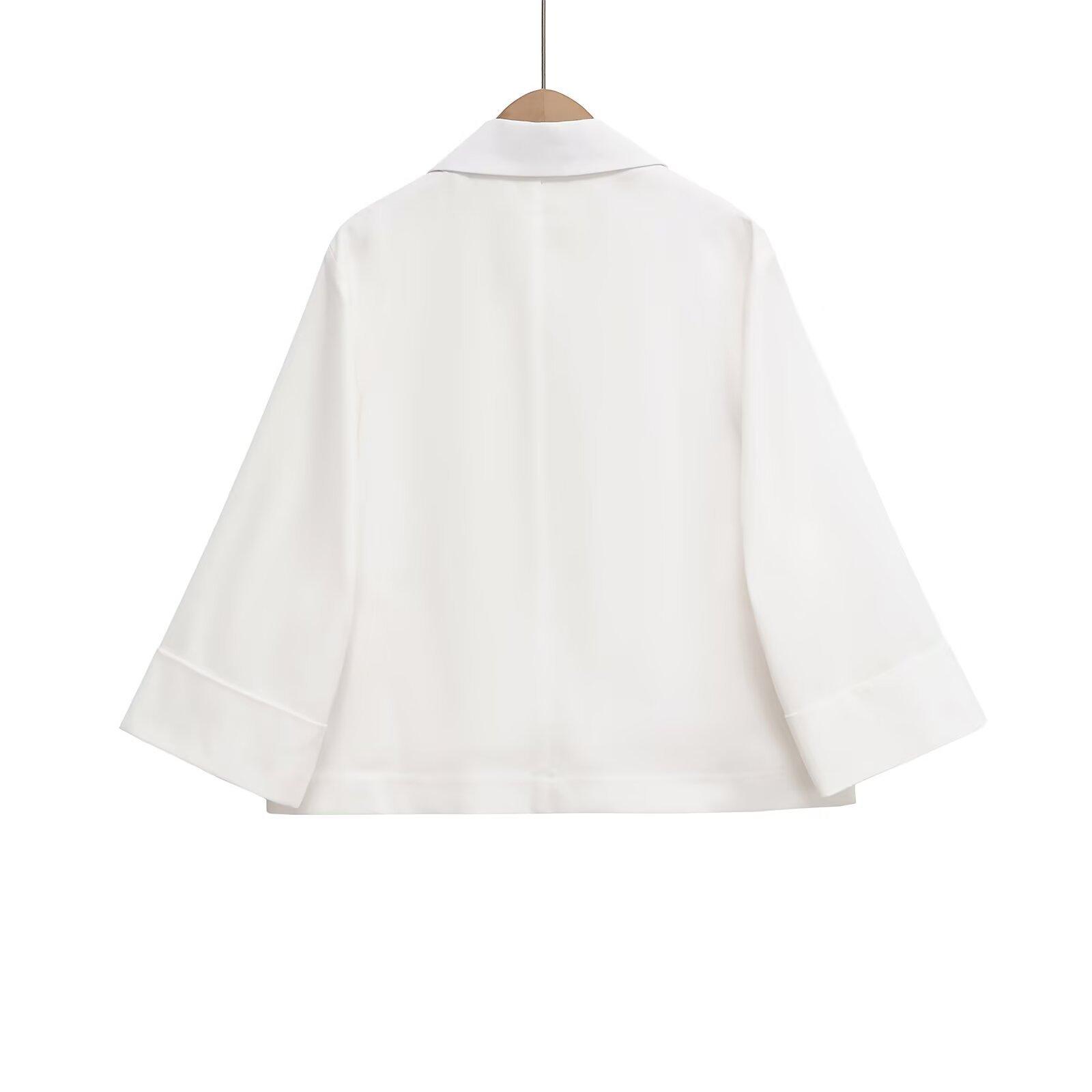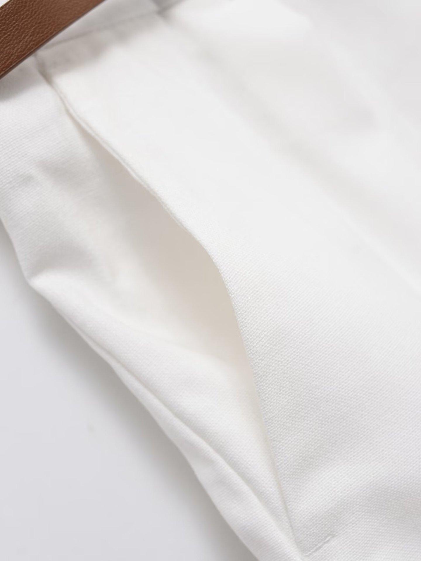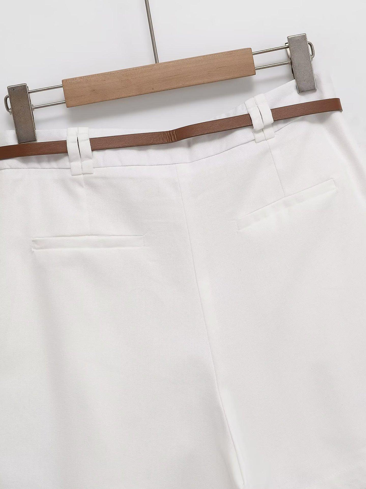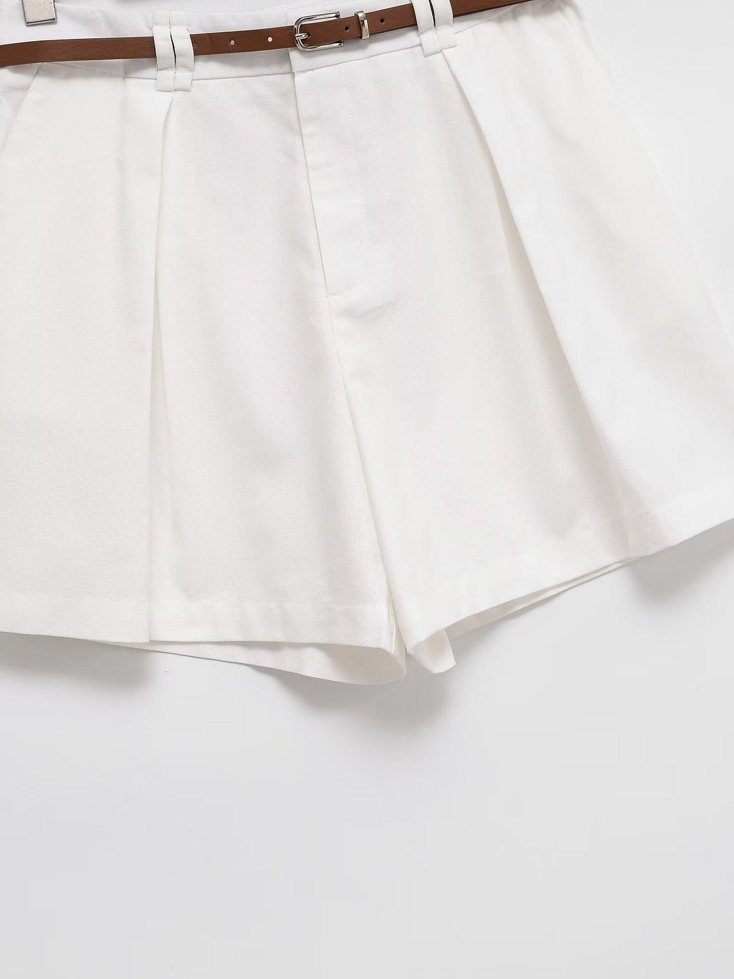 Exportación Transfronteriza Ropa de Mujer 2025 Verano Estilo Europeo y Americano Traje Corto Chaqueta + Cinturón Shorts Traje Mujer Blanco