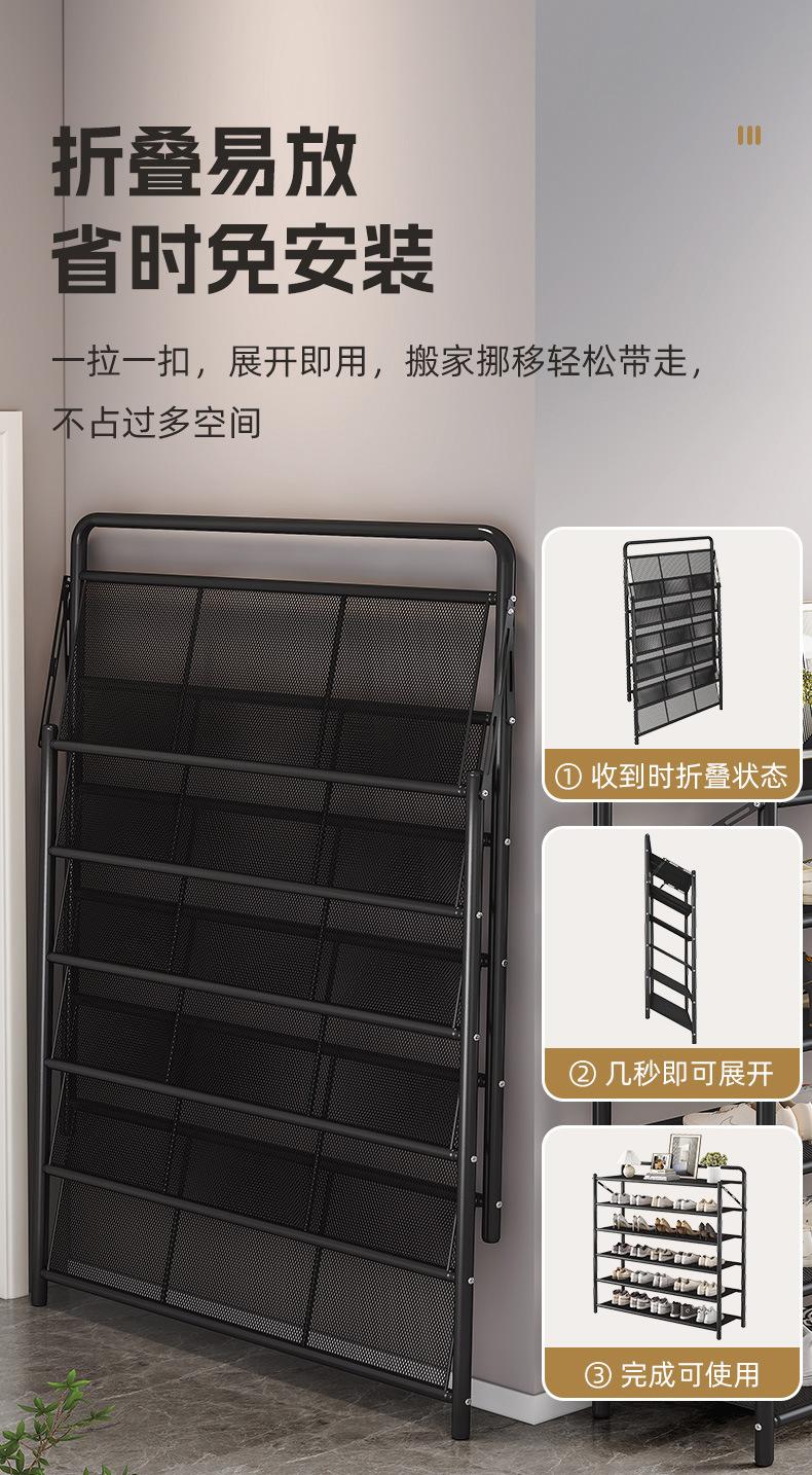Zapatero Plegable Sin Instalación para Hogar, Entrada, Multicapa, Casa de Renta, Pequeño, Estrecho, Simple Almacenamiento, Acero Inoxidable, Hierro Forjado, Gabinete para Zapatos