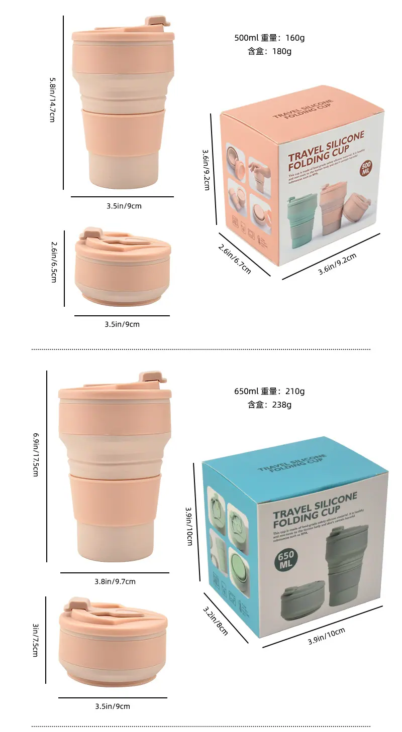 Vaso de Agua Plegable de Silicona Portátil para Viaje Vaso Deportivo para Acampada al Aire Libre Taza de Café Plegable Portátil Taza de Viaje