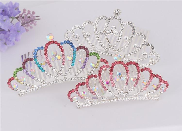 Corona Infantil Estilo Coreano con Peineta de Pedrería Joyería Princesa Cumpleaños Actuación Accesorios para el Cabello Corona de Aleación Joyería al por Mayor