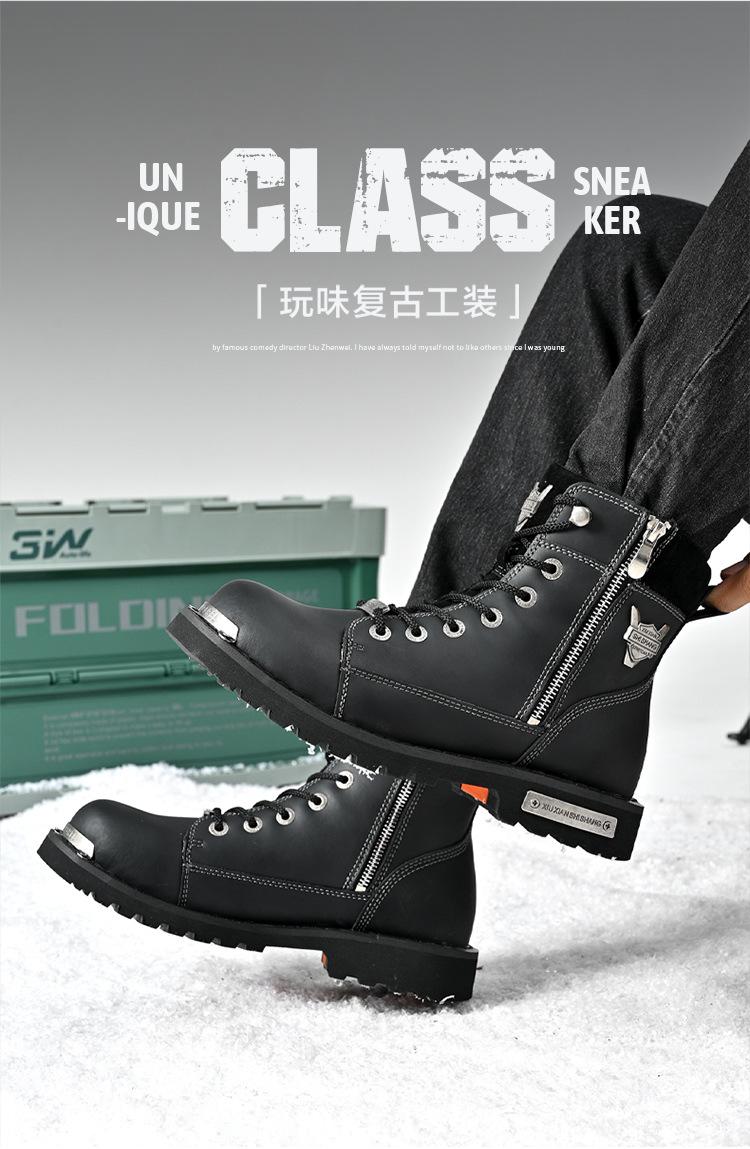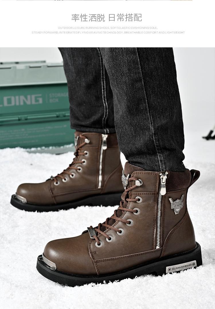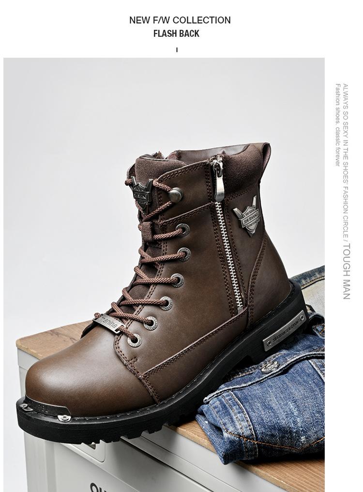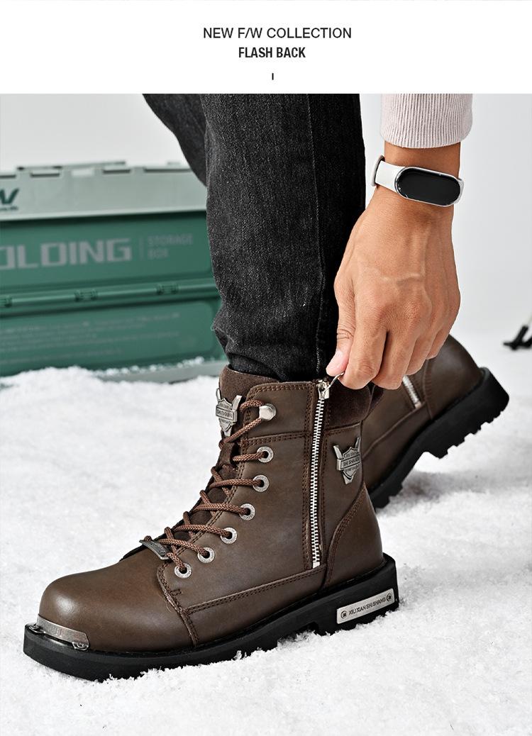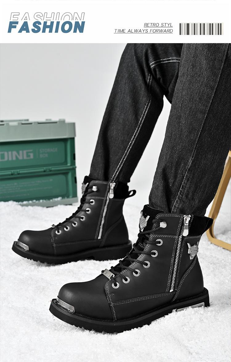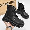 Botas para Hombre 2025 Nuevas Botas de Motociclista de Caña Alta con Suela Gruesa y Aumento de Altura Forradas con Forro Polar Botas de Trabajo de Cuero Genuino Botas Martin para Hombre