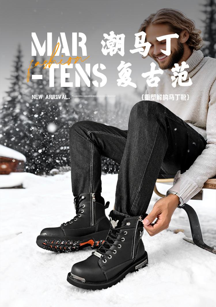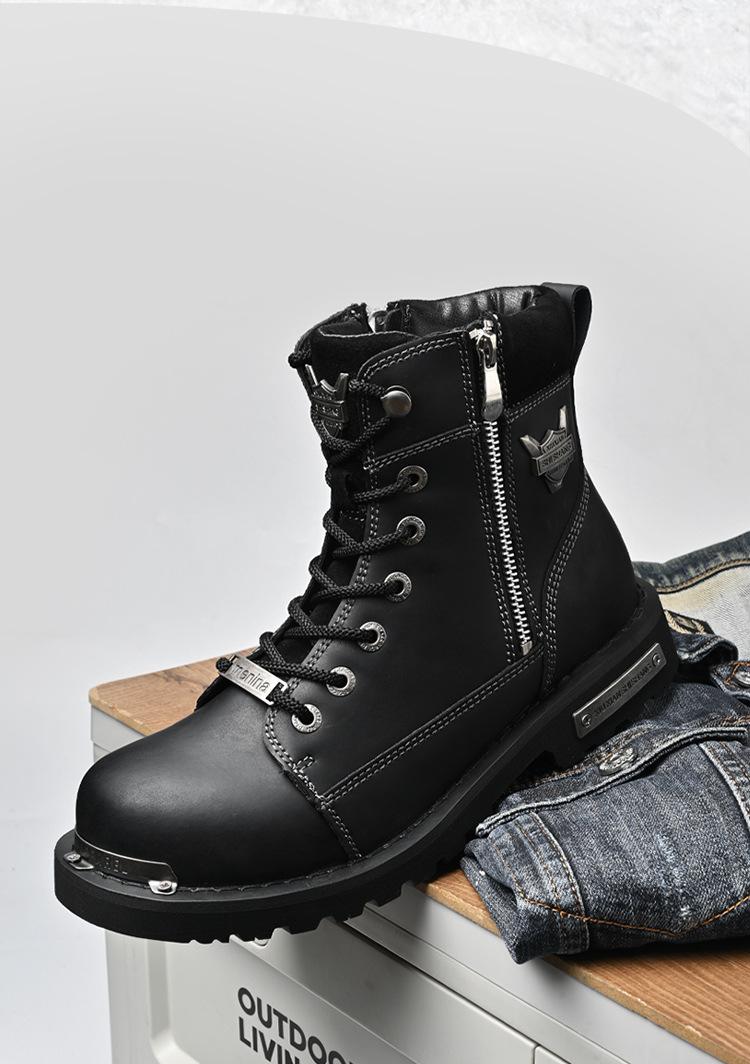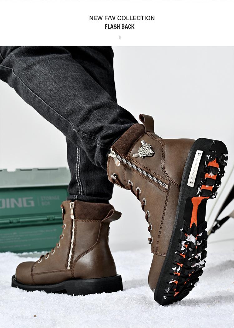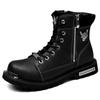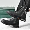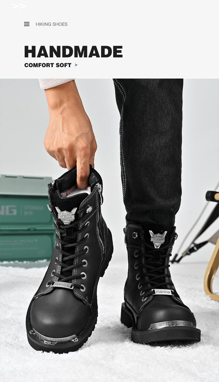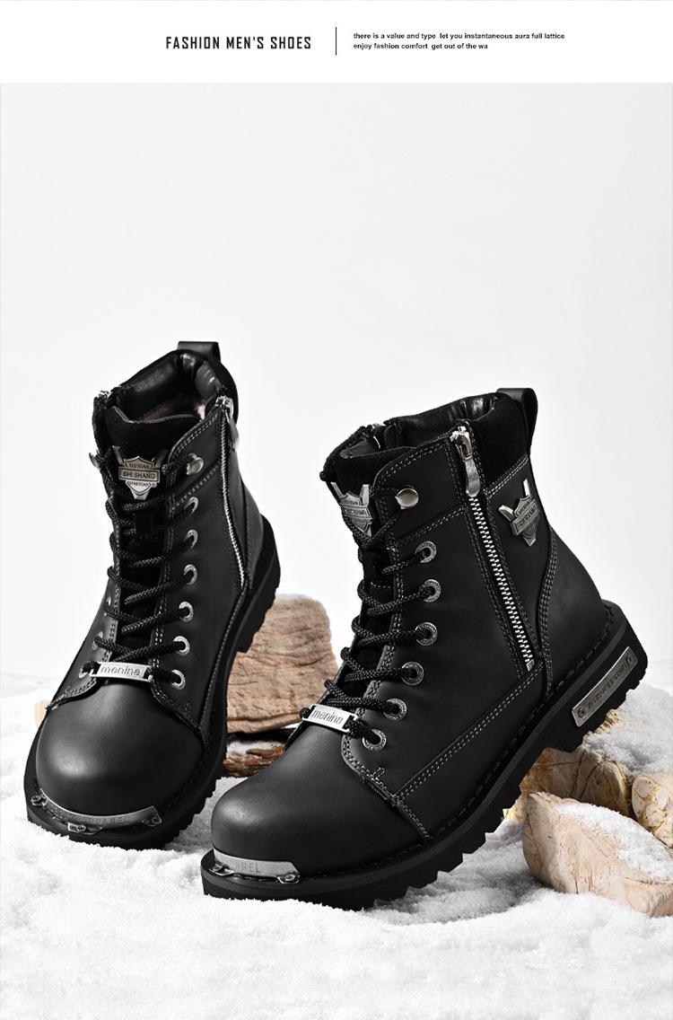 Botas para Hombre 2025 Nuevas Botas de Motociclista de Caña Alta con Suela Gruesa y Aumento de Altura Forradas con Forro Polar Botas de Trabajo de Cuero Genuino Botas Martin para Hombre