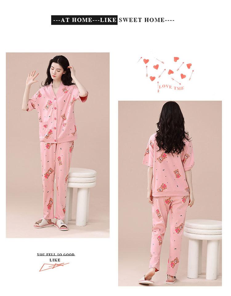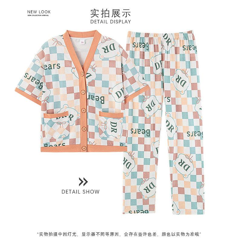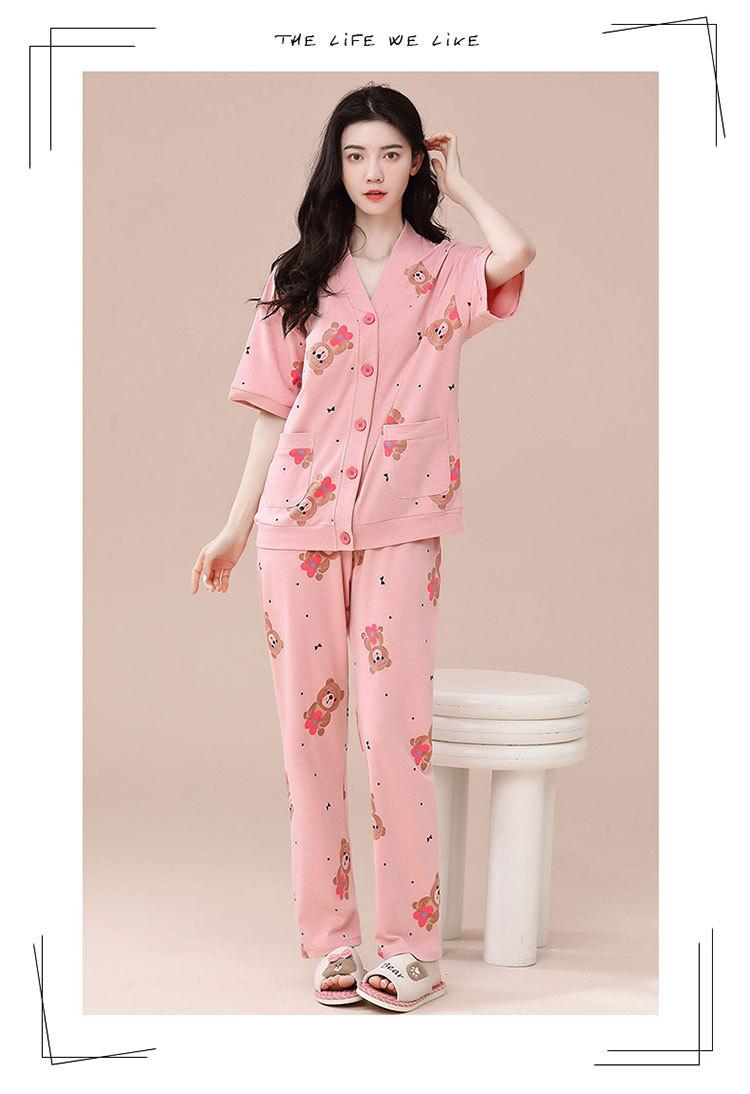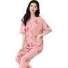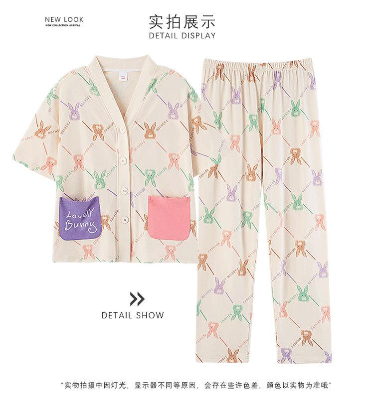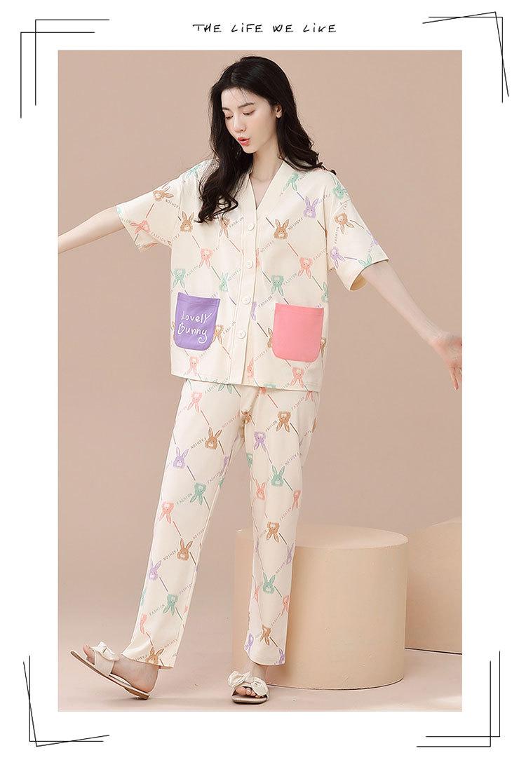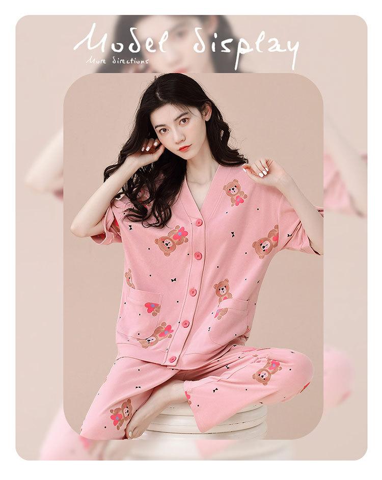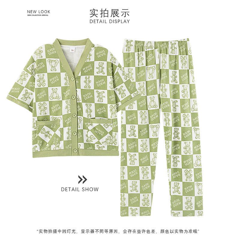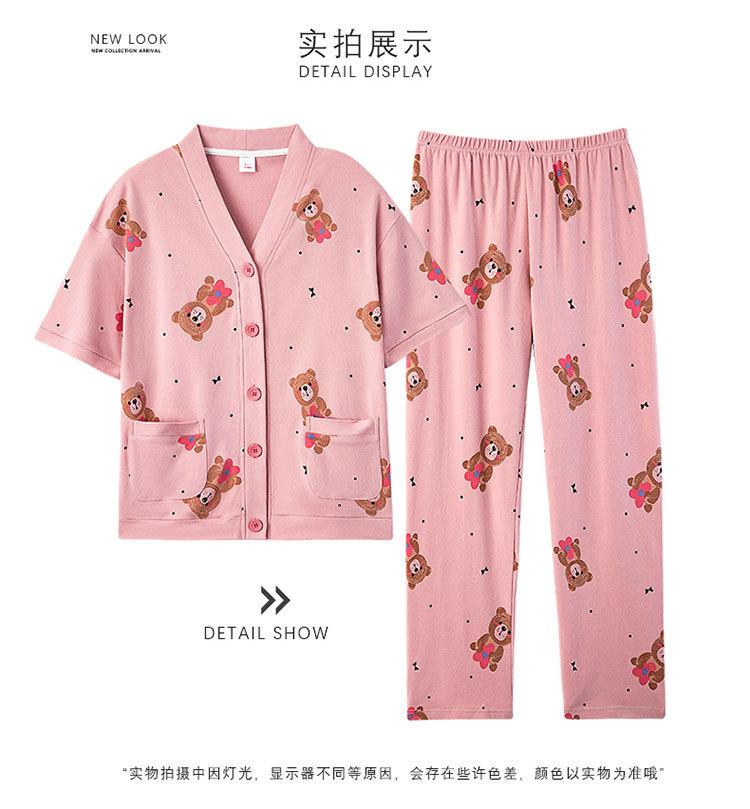 Cárdigan de cuello en V de manga corta Pantalones Pijama dulce coreano para mujer Algodón puro Verano Delgado Ropa exterior Traje para el hogar