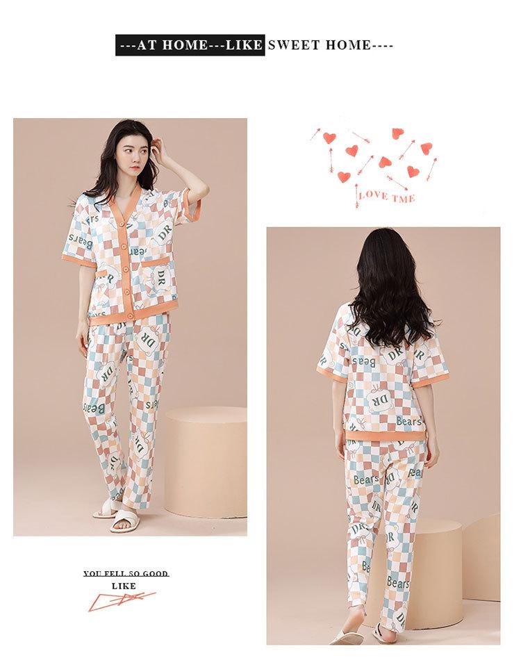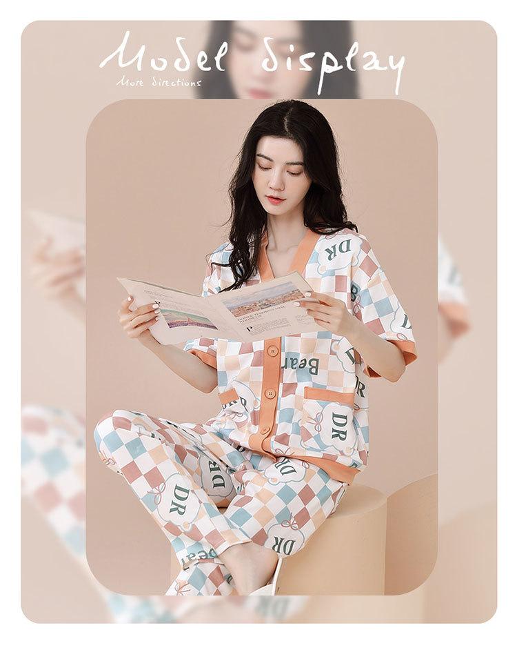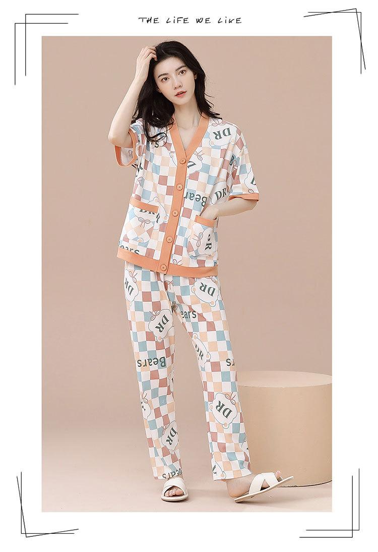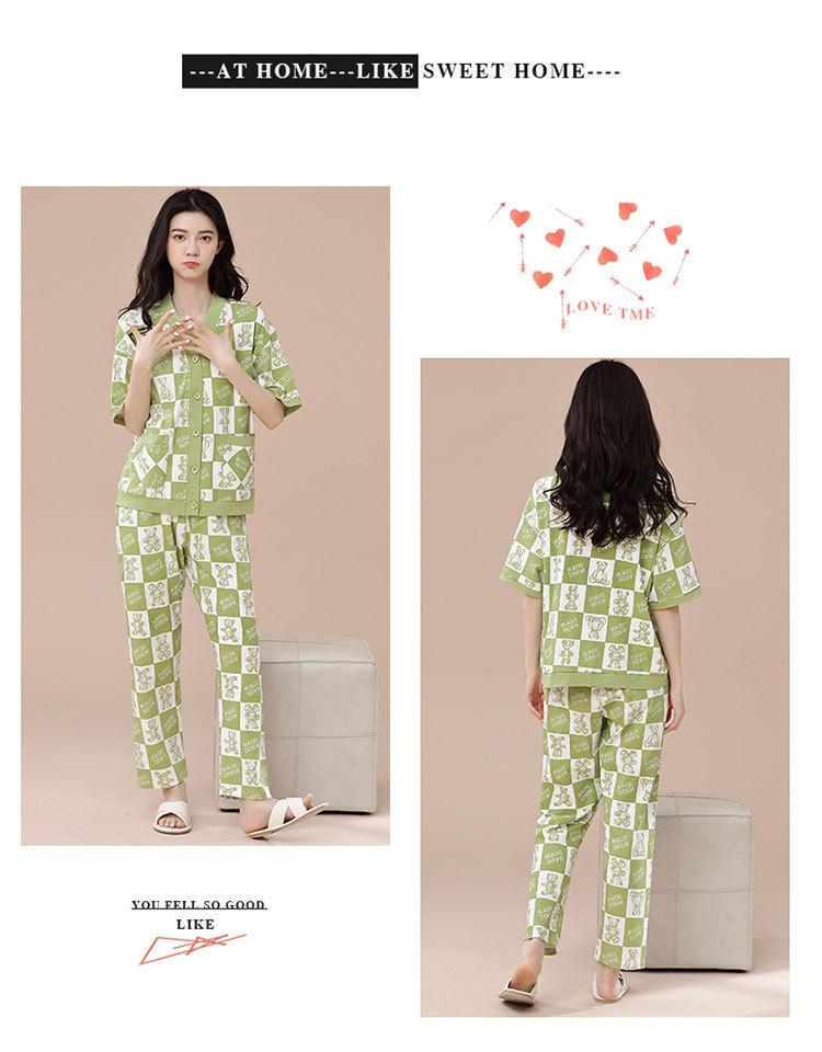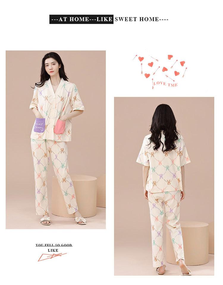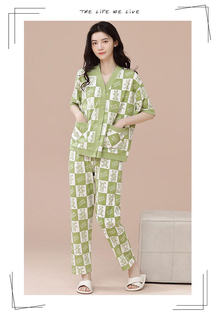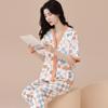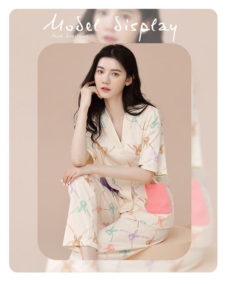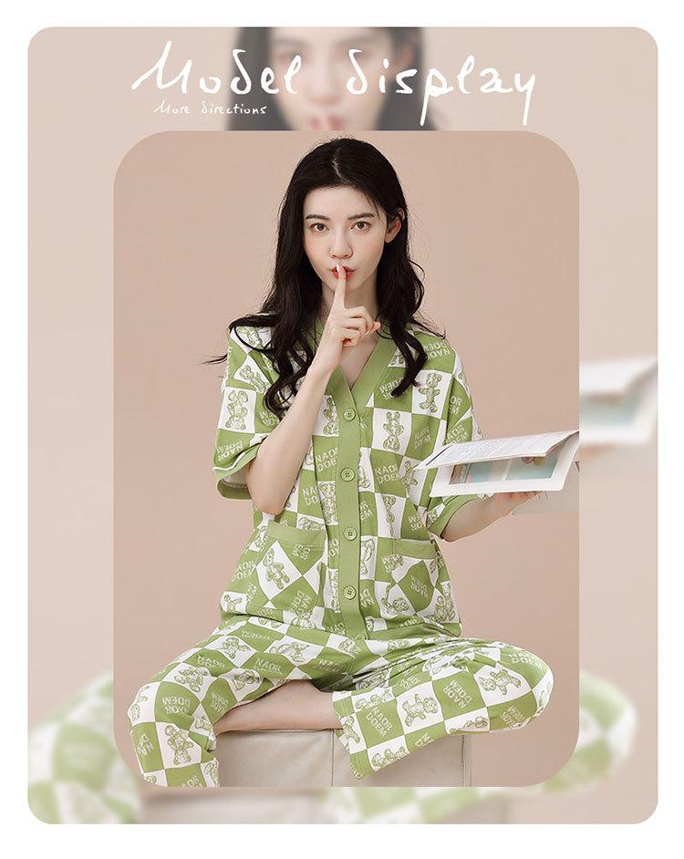 Cárdigan de cuello en V de manga corta Pantalones Pijama dulce coreano para mujer Algodón puro Verano Delgado Ropa exterior Traje para el hogar