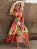 Cárdigan Popular Transfronterizo para Playa, Chifón de Manga Larga Estampado, Vacaciones, Protección Solar, Cárdigan Bikini, Falda Larga, Cobertura Exterior