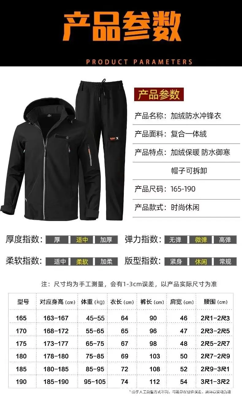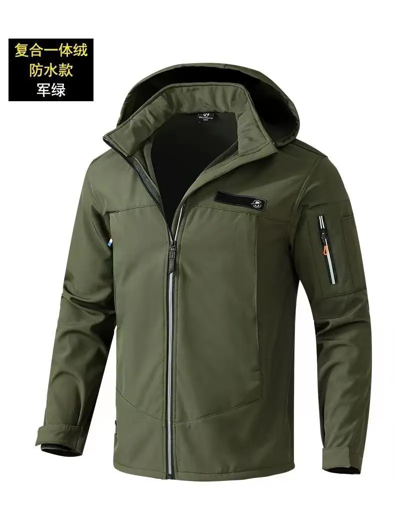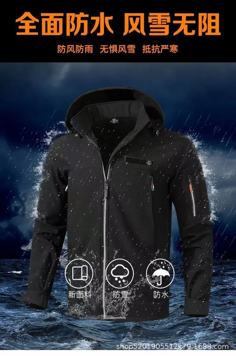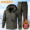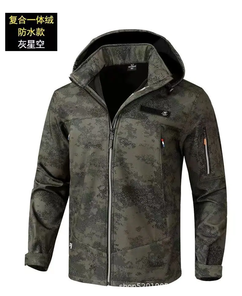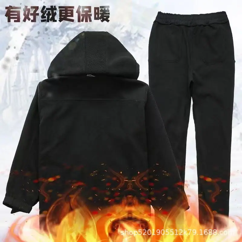 Traje de chaqueta gruesa de terciopelo de invierno al por mayor, ropa de montañismo para exteriores a prueba de viento e impermeable, ropa de trabajo casual abrigada y a prueba de frío