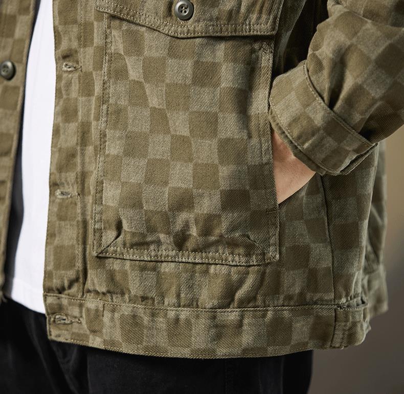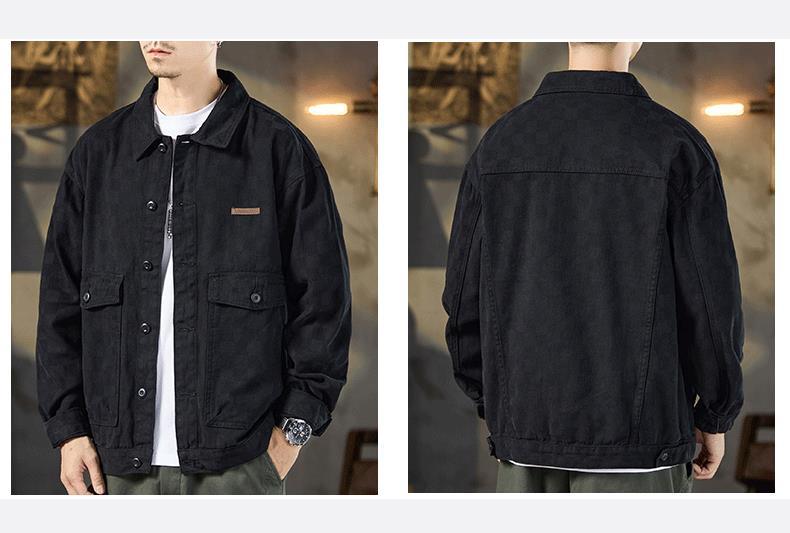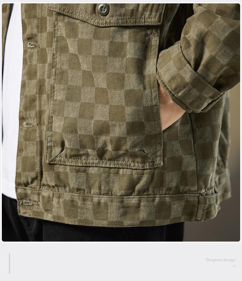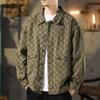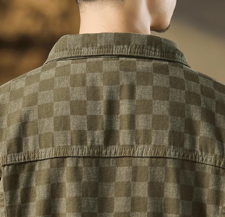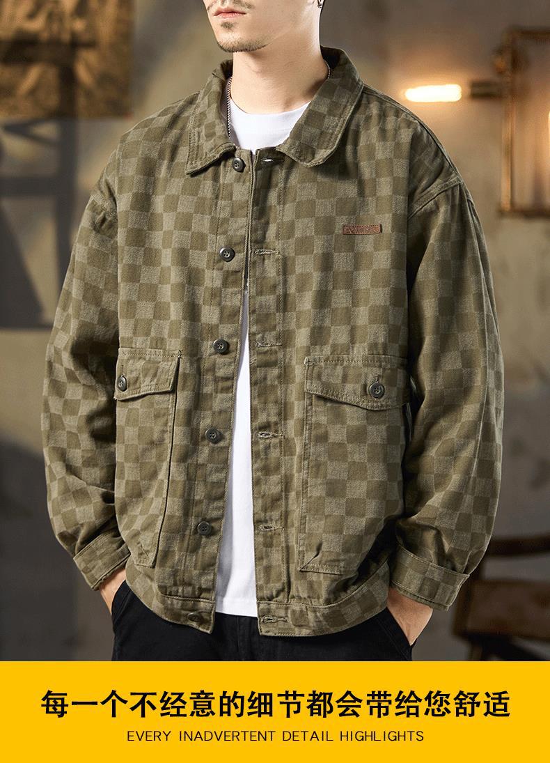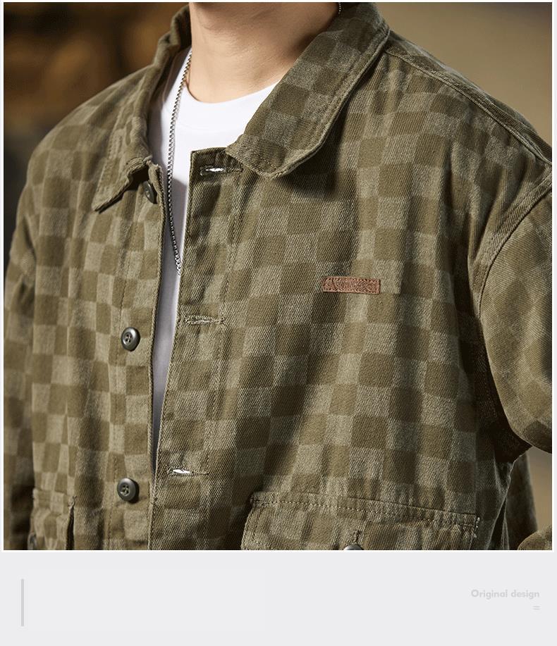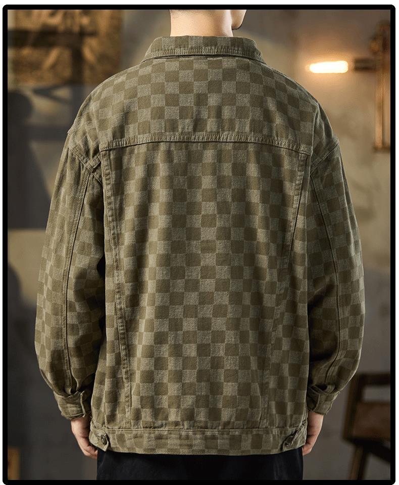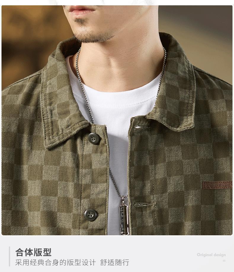 Chaqueta de mezclilla a cuadros de alta gama para hombre, estilo primavera y otoño, marca de moda, casual, para trabajo, chaqueta retro para hombre, top