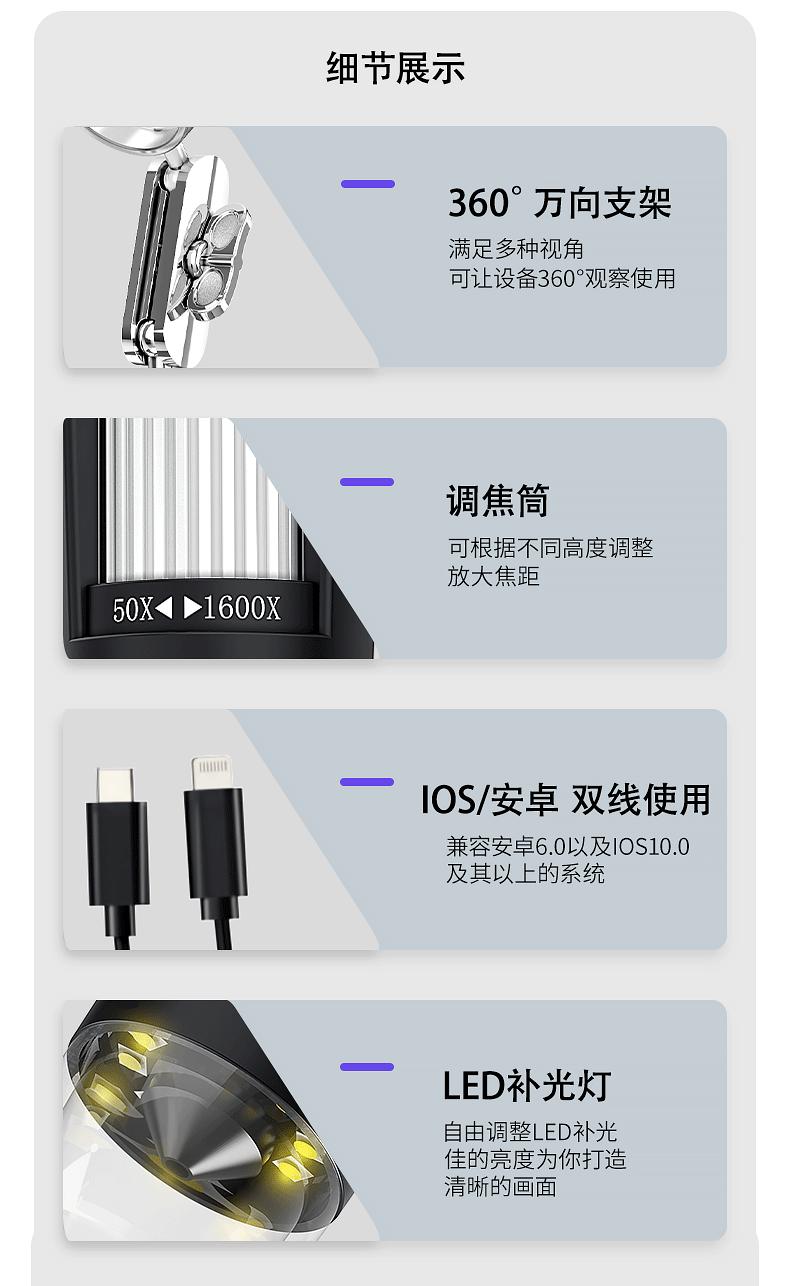 Nuevo Microscopio Universal para Teléfono Móvil Detección de Folículos Pilosos Microscopio Electrónico Mantenimiento Industrial Microscopio Digital HD