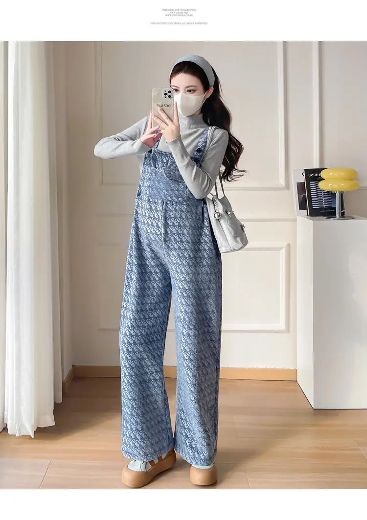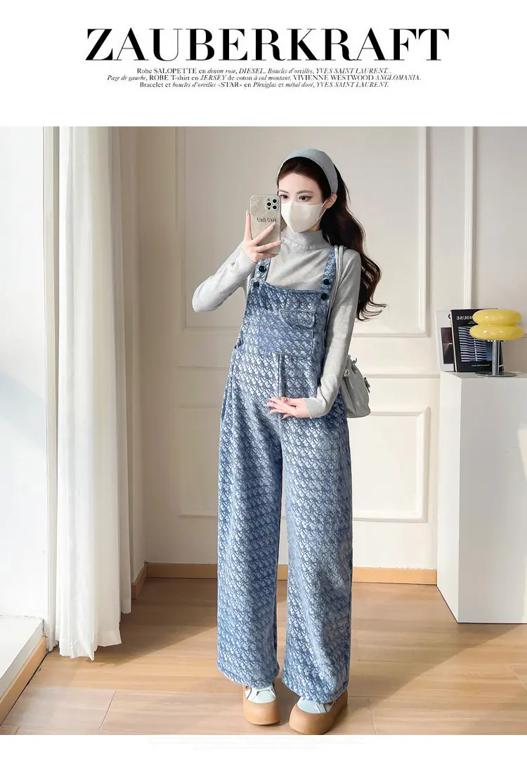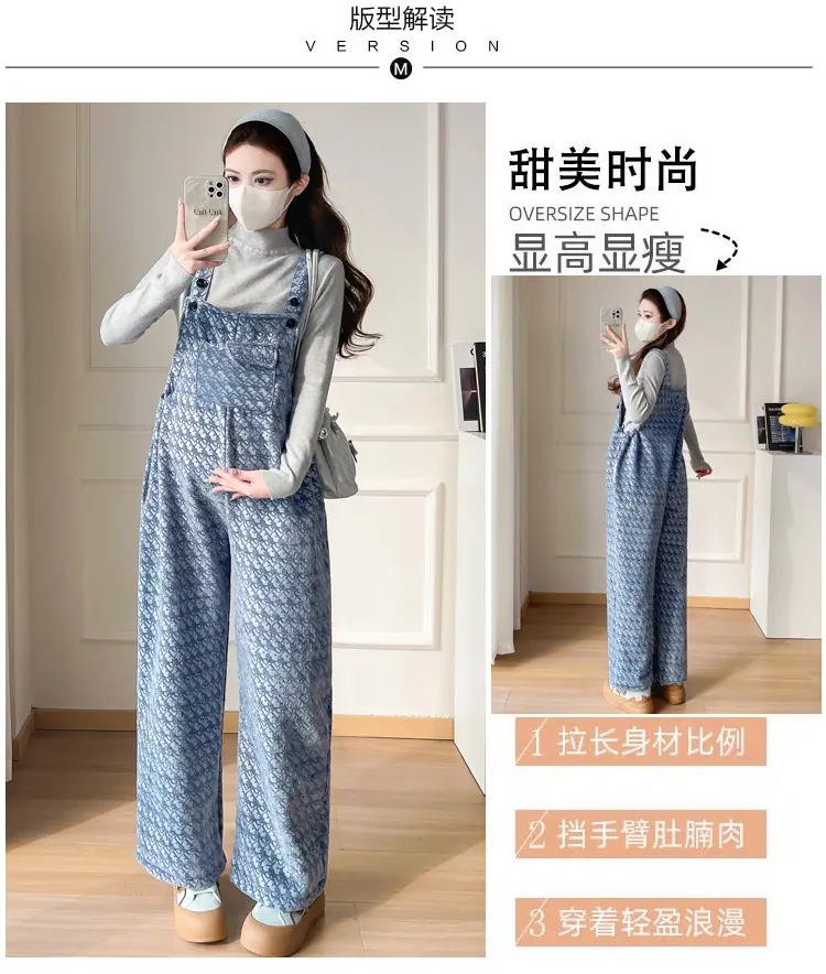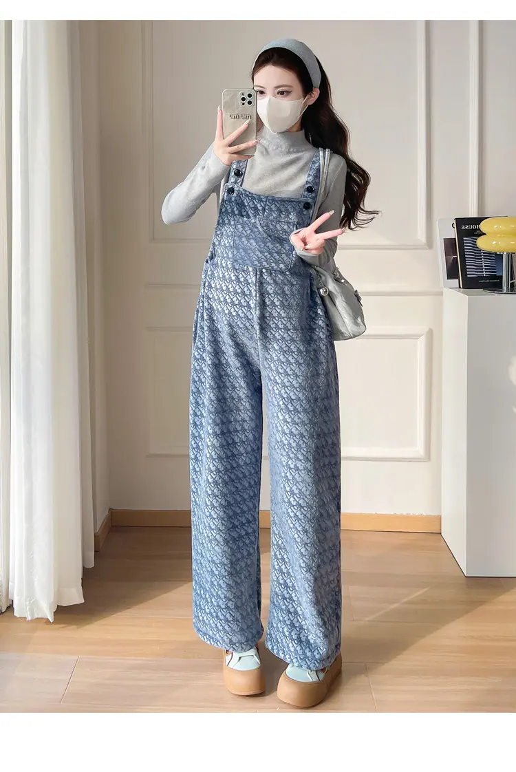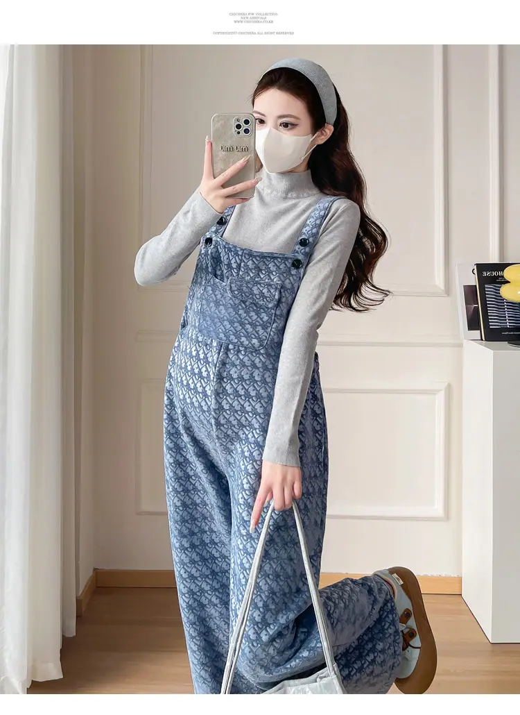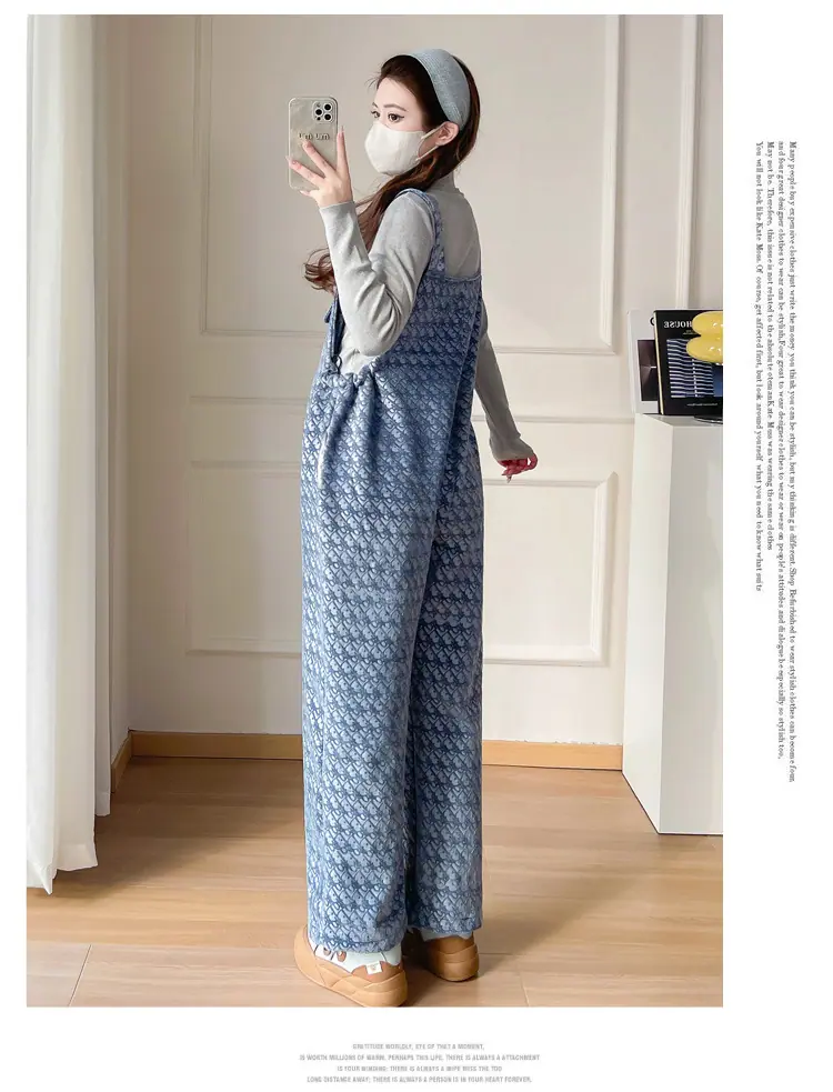 2024 Invierno Nuevo Estilo Conjunto de Maternidad Forrado de Felpa Engrosado Adelgazante Versátil Moda Conjunto de Overol de Maternidad