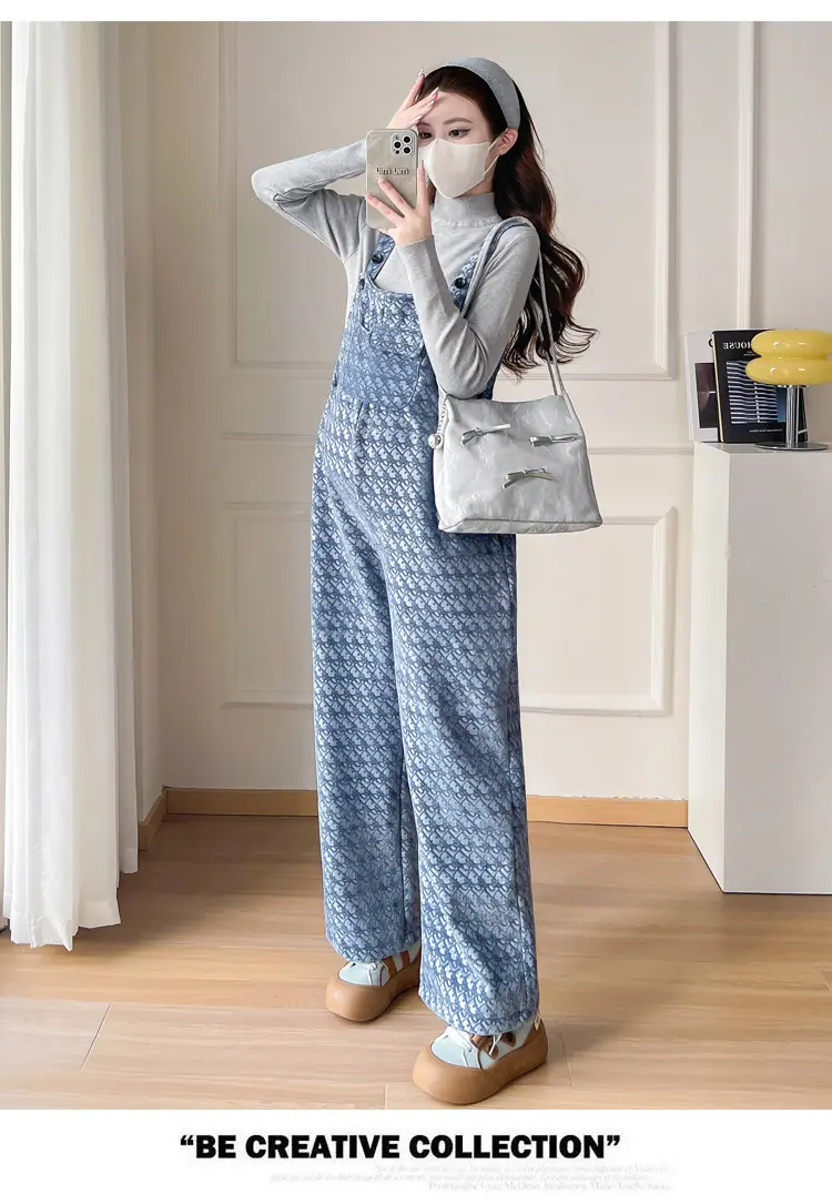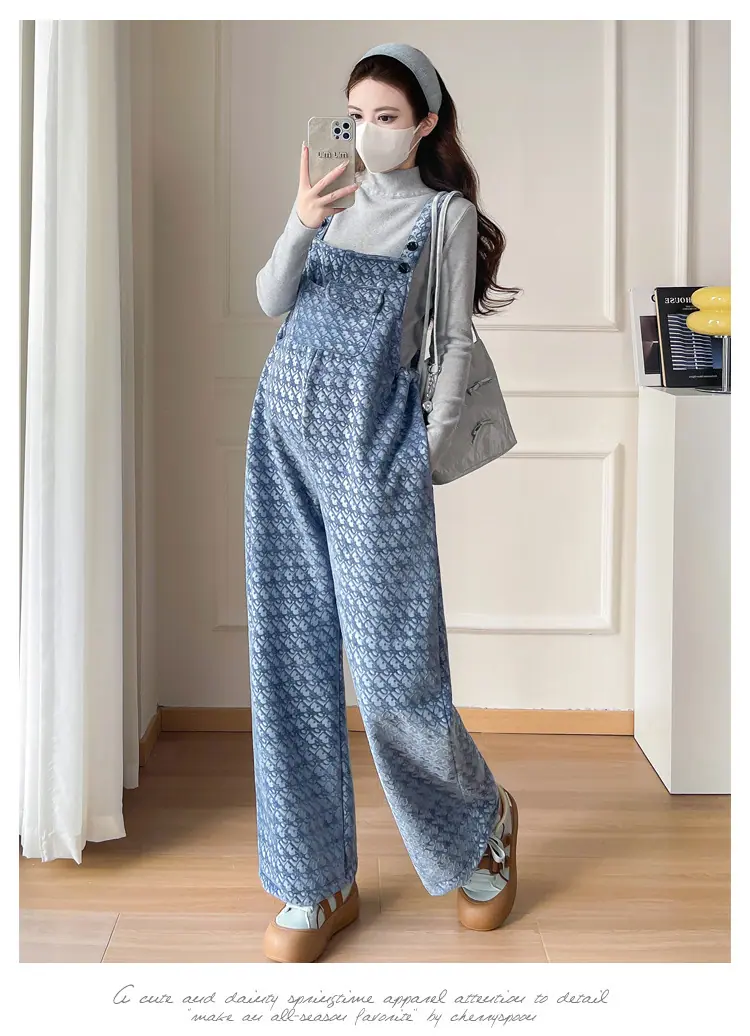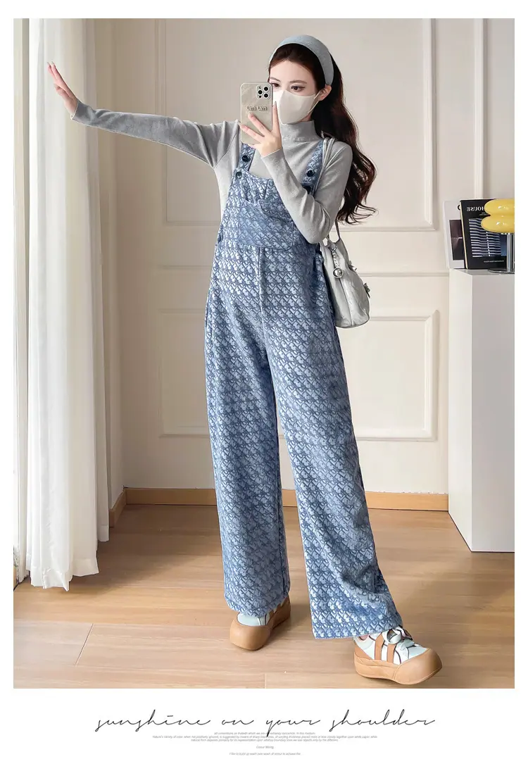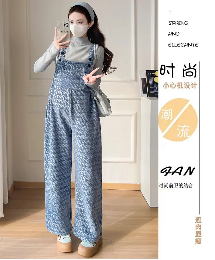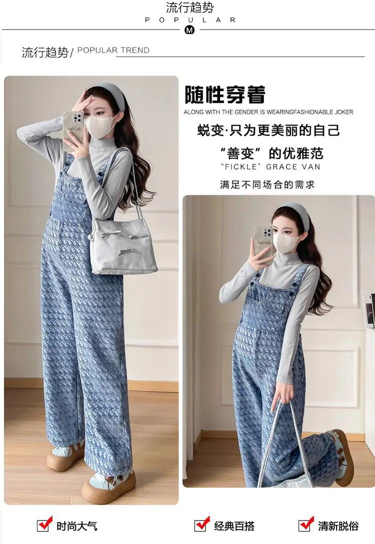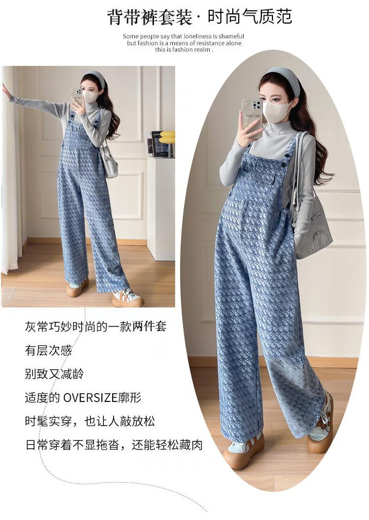 2024 Invierno Nuevo Estilo Conjunto de Maternidad Forrado de Felpa Engrosado Adelgazante Versátil Moda Conjunto de Overol de Maternidad