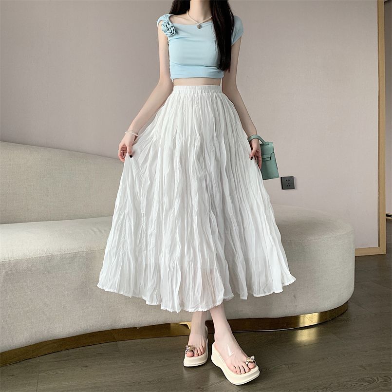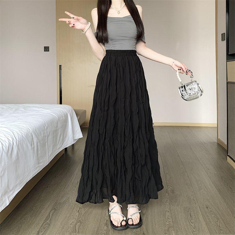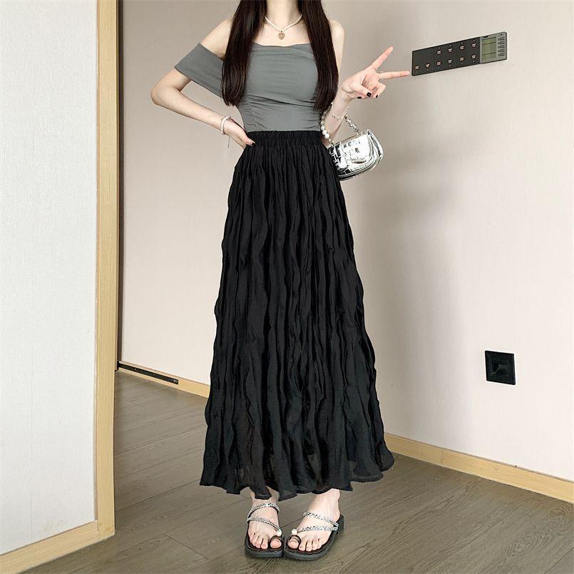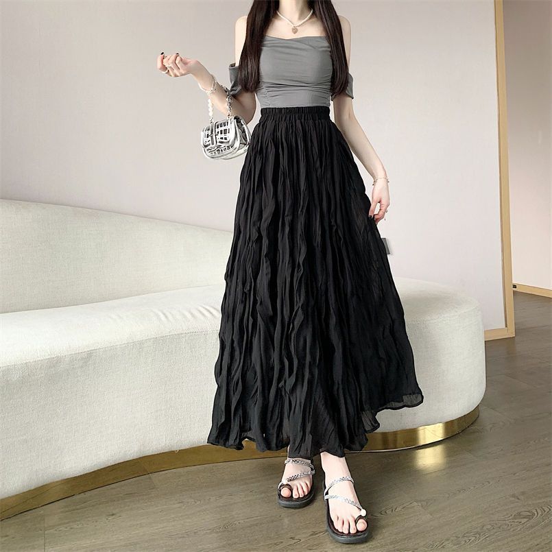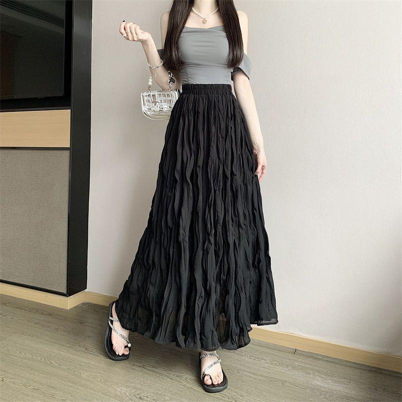 Compra Falda de Verano Línea A 2025 Nueva Falda Paraguas de Cintura Alta Falda Midi Falda Larga Falda Plisada Simple de Moda Falda para Mujer al por mayor en Joom.pro