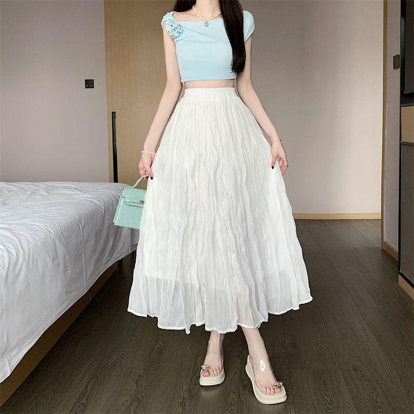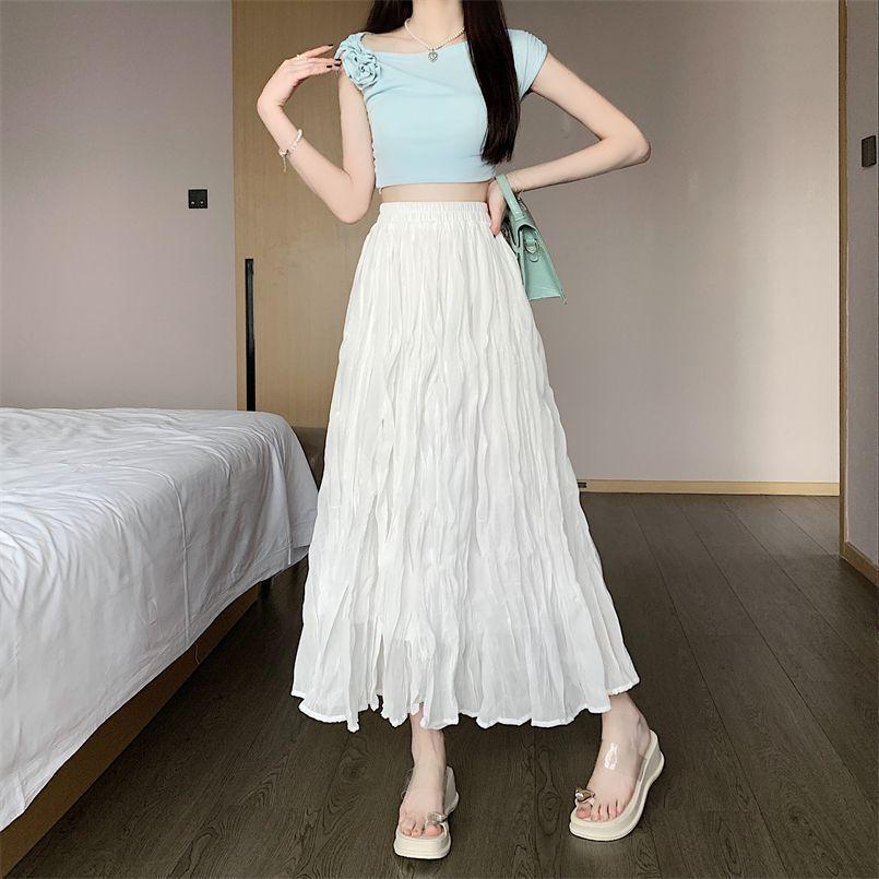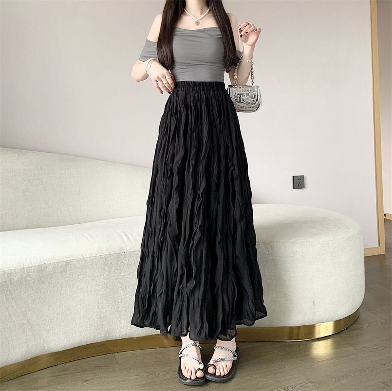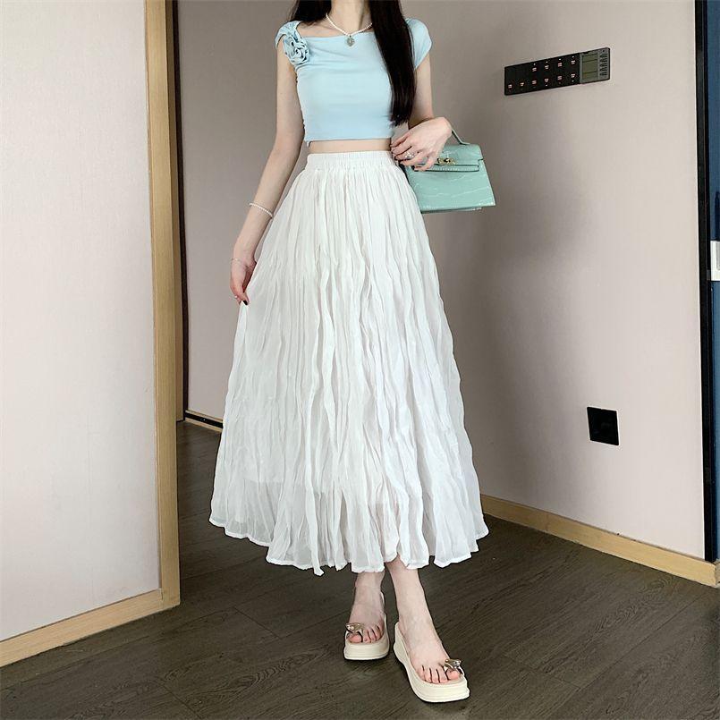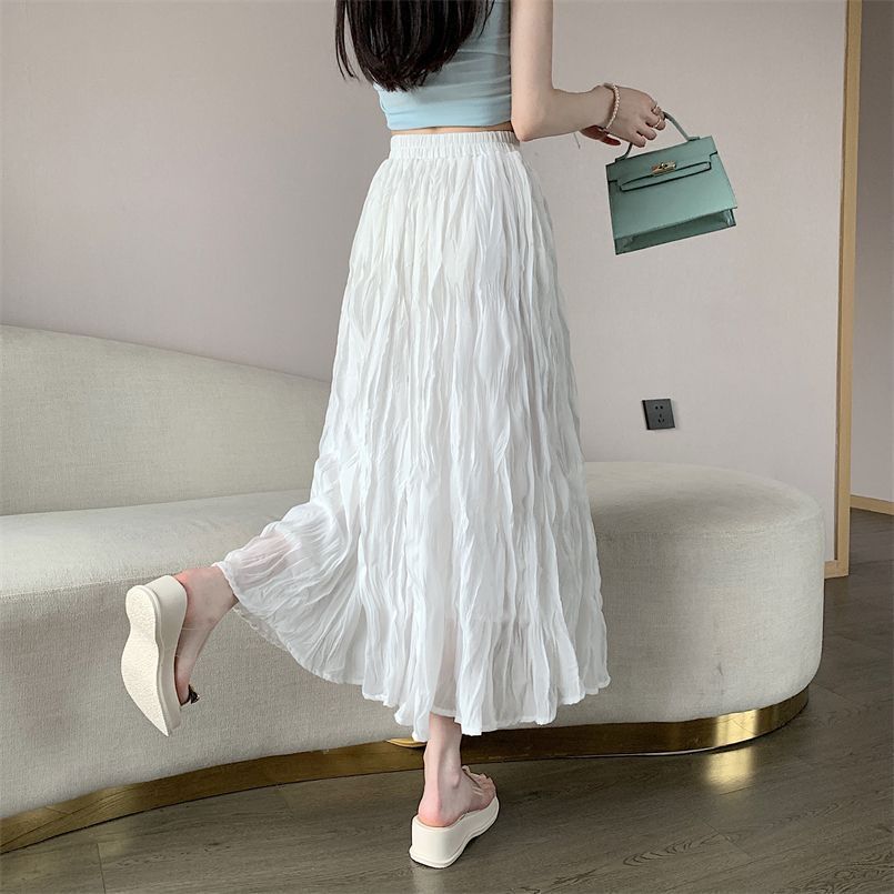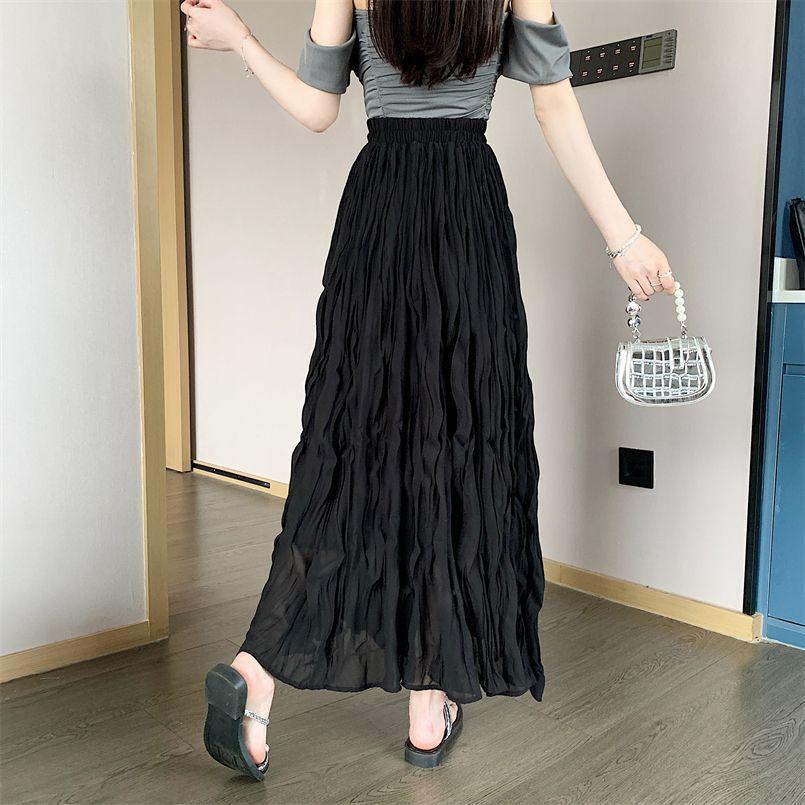 Compra Falda de Verano Línea A 2025 Nueva Falda Paraguas de Cintura Alta Falda Midi Falda Larga Falda Plisada Simple de Moda Falda para Mujer al por mayor en Joom.pro