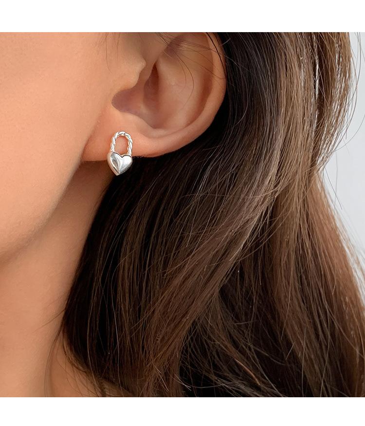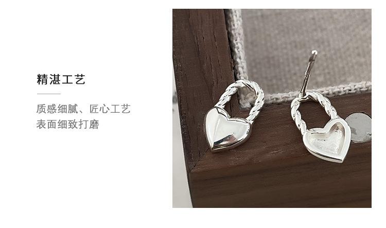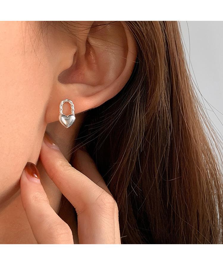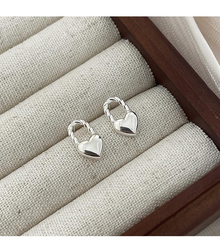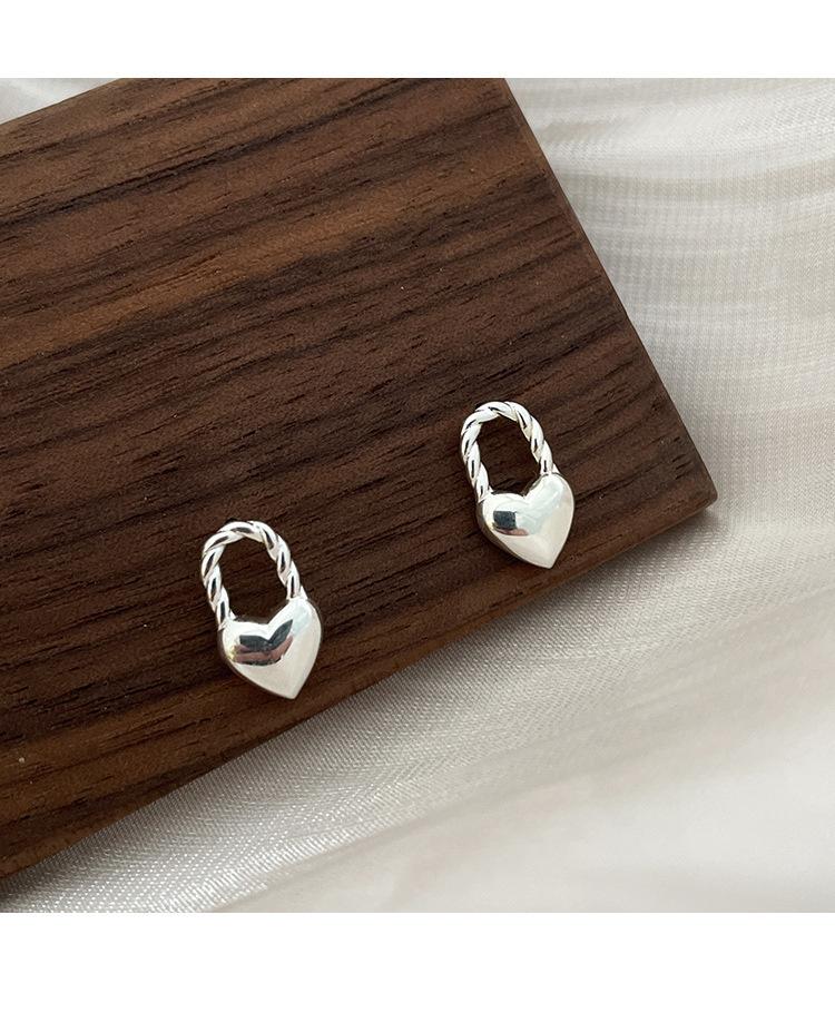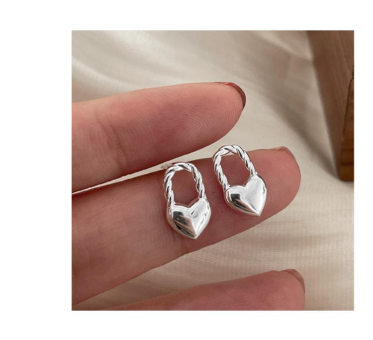 Aretes de Tuerca con Candado de Corazón de Punto Cable de Personalidad Estilo Coreano para Mujer Plata Pura Simples Estilo Frío Exquisitos Aretes Aretes de Lujo Ligero