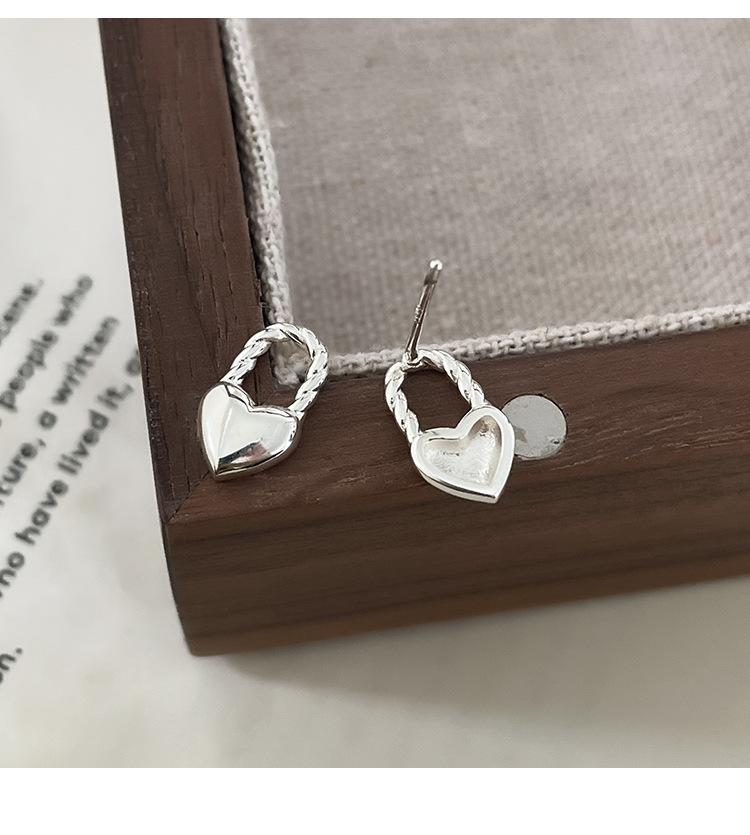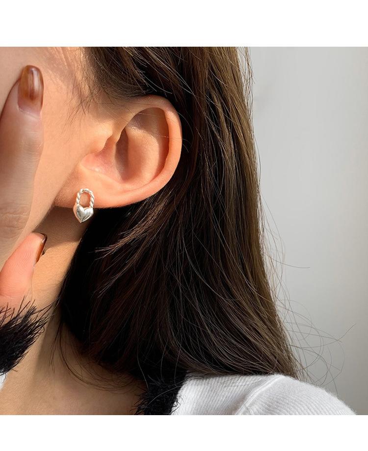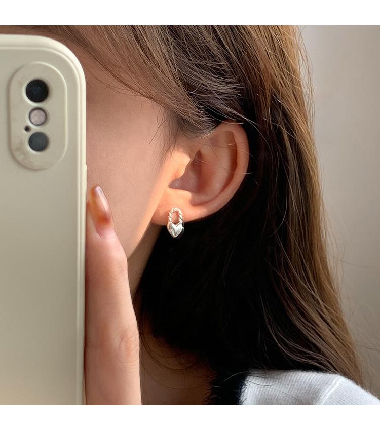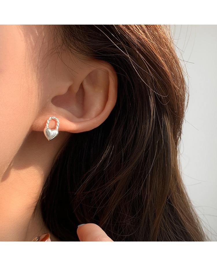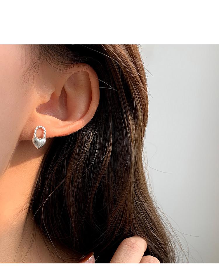 Aretes de Tuerca con Candado de Corazón de Punto Cable de Personalidad Estilo Coreano para Mujer Plata Pura Simples Estilo Frío Exquisitos Aretes Aretes de Lujo Ligero