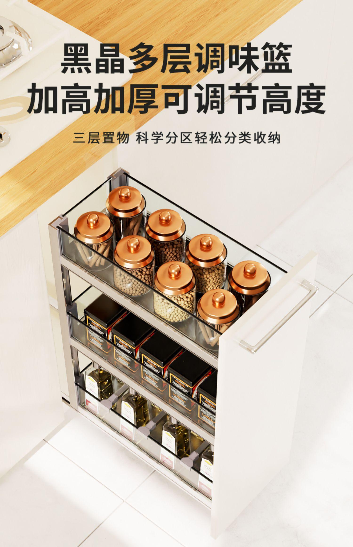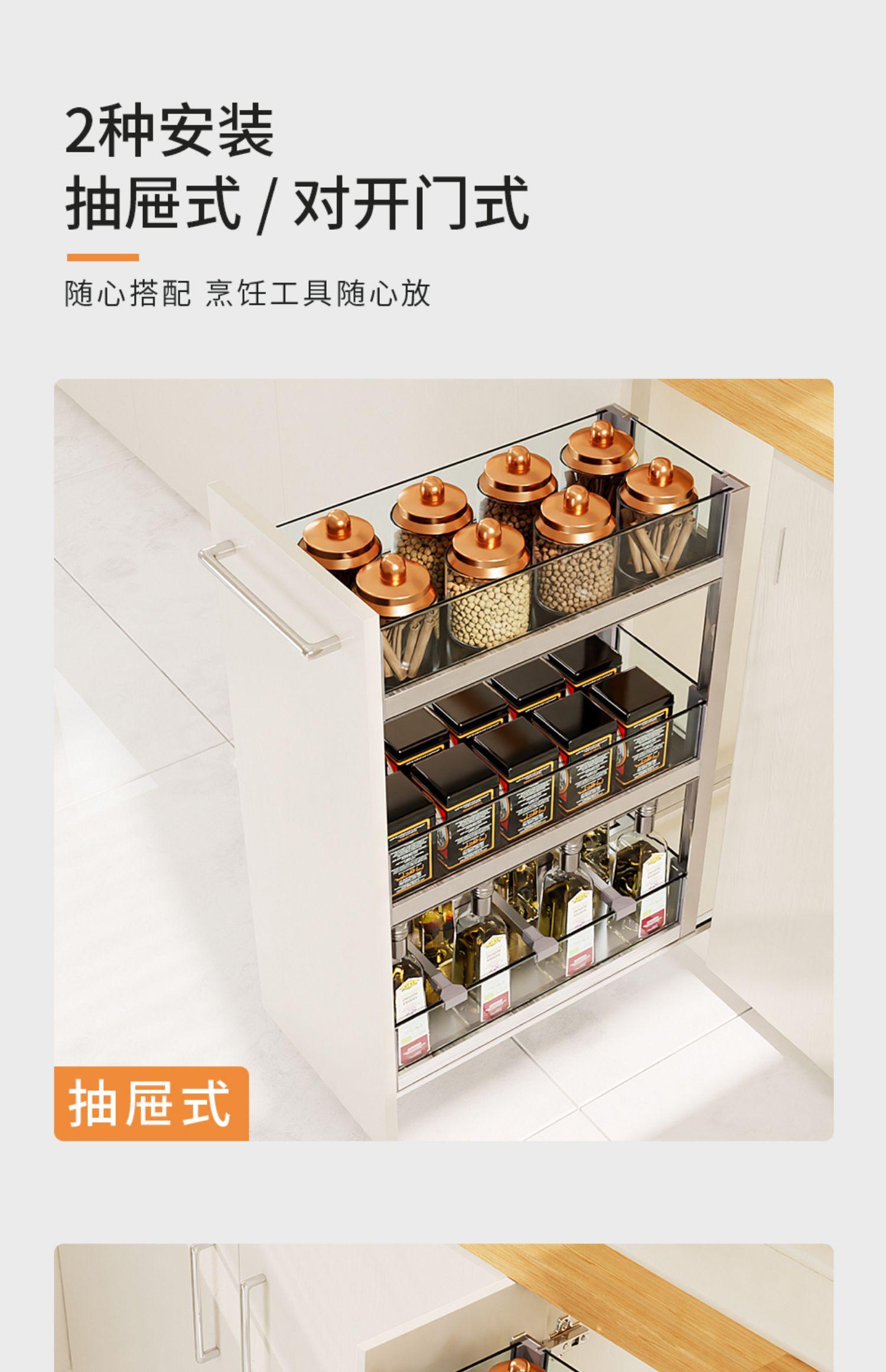 Compra Cs Cesta extraíble para alacena de cocina Vidrio Alacena estrecha Cesta para condimentos Mini estante de almacenamiento para condimentos 2 niveles 3 niveles Riel inferior Otros al por mayor en Joom.pro