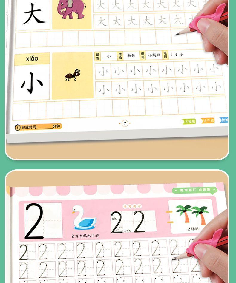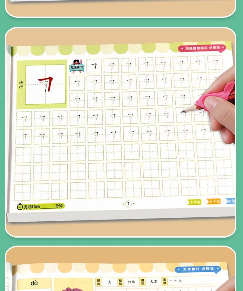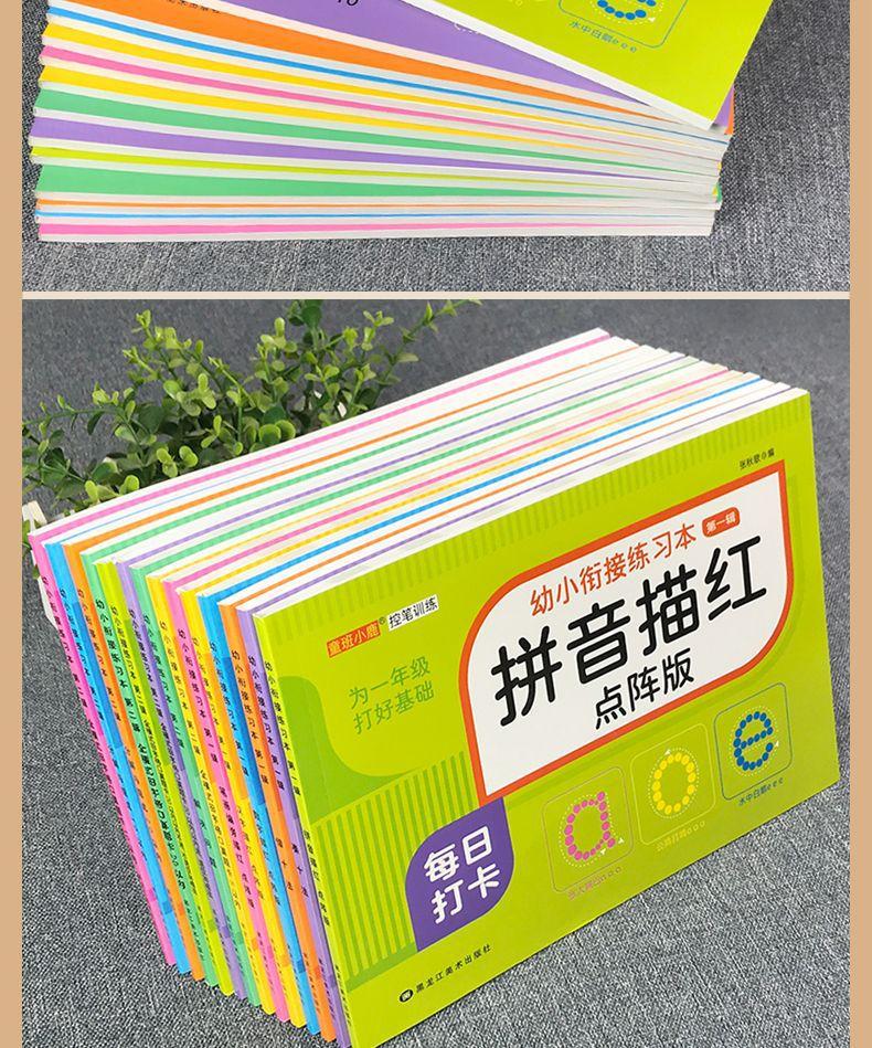 [4 dot matrix version with red drawings] pinyin + numbers + radical strokes + chinese characters, [2 dot matri...