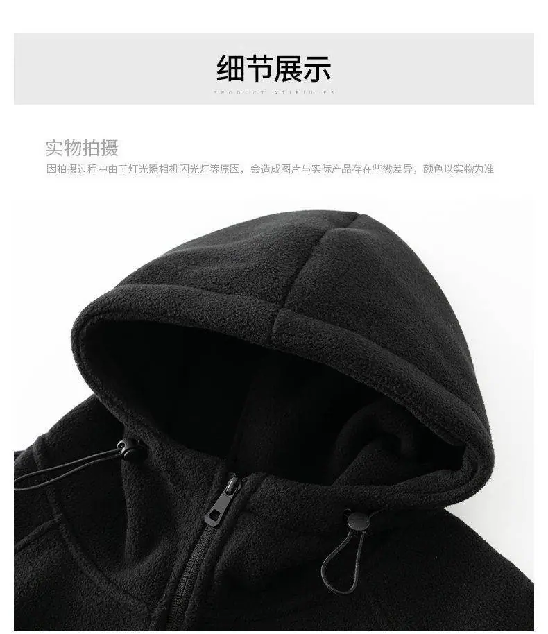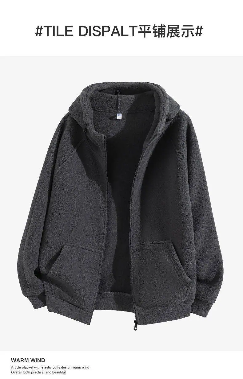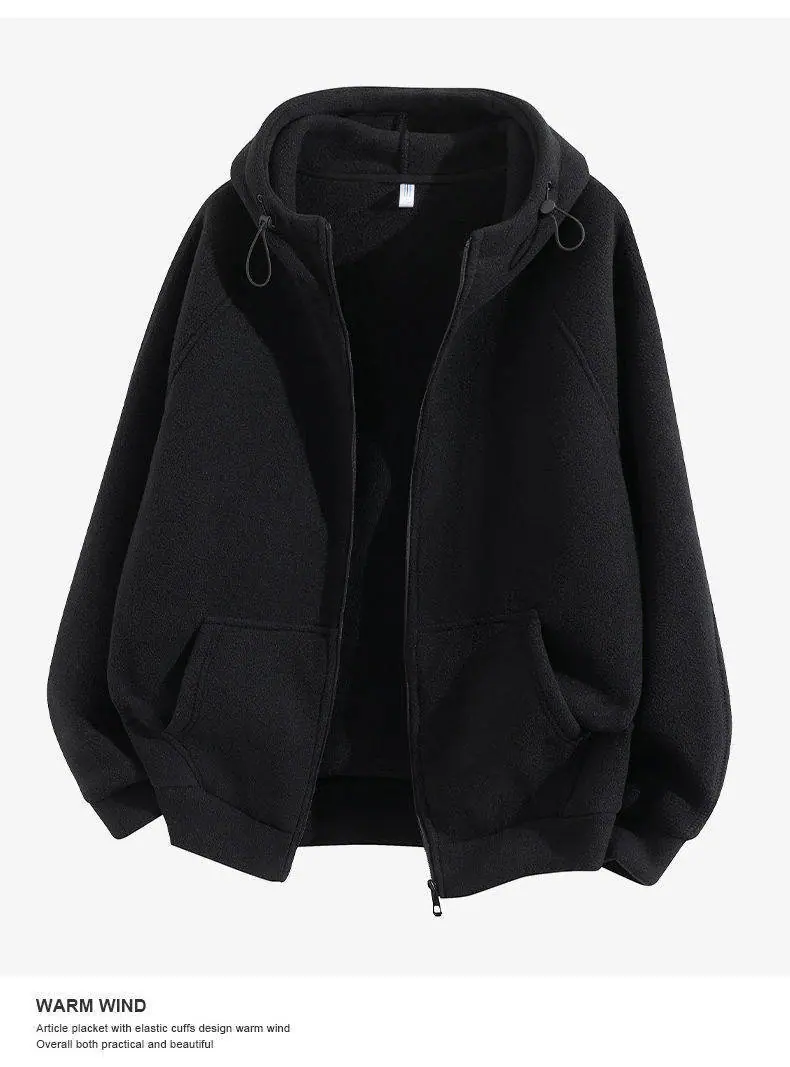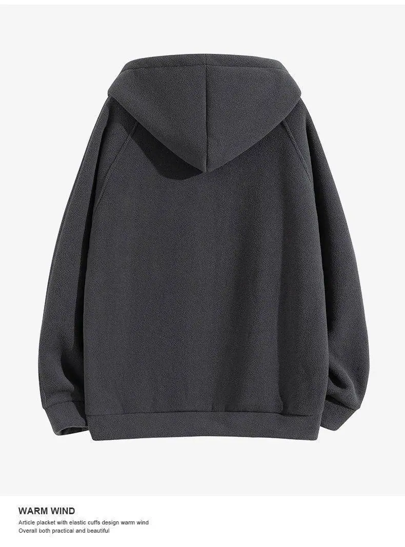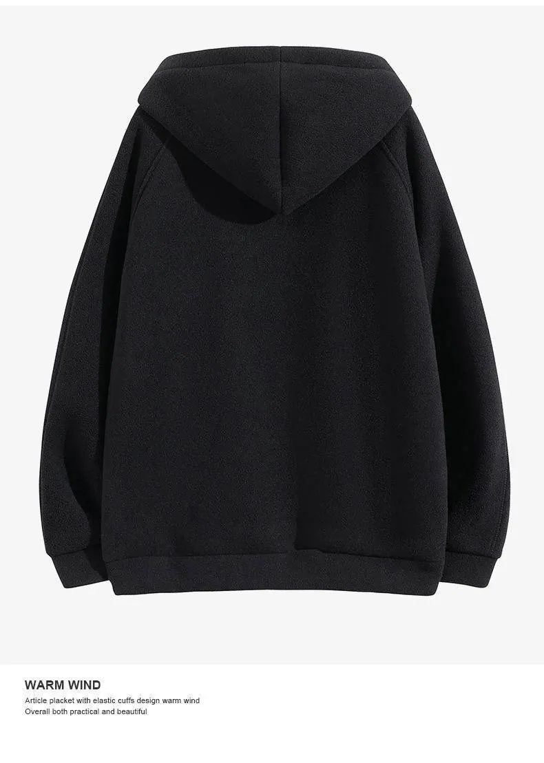 Cárdigan Sudadera con Capucha de Forro Polar Estilo Doméstico para Hombre Otoño e Invierno Suelto Casual Grueso con Terciopelo Chaqueta de Tendencia