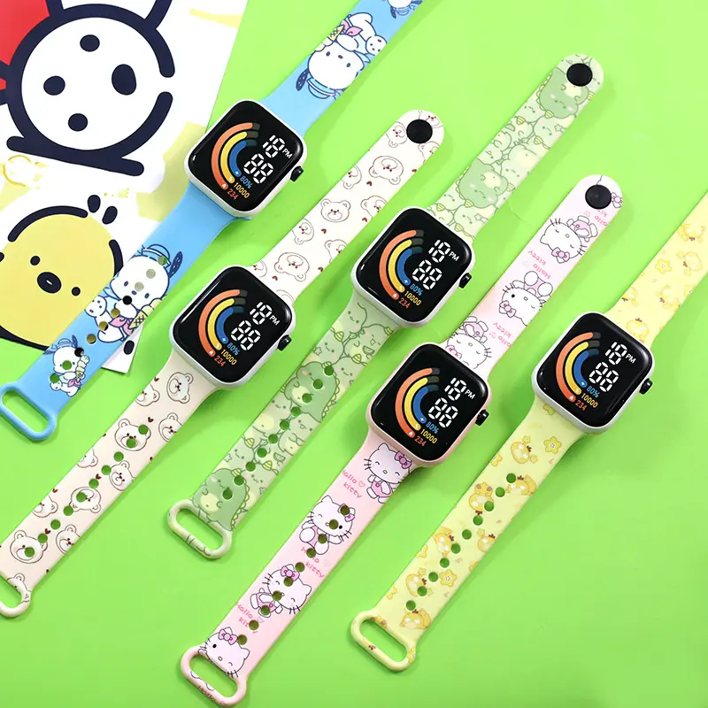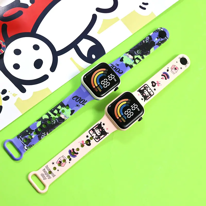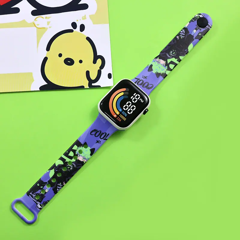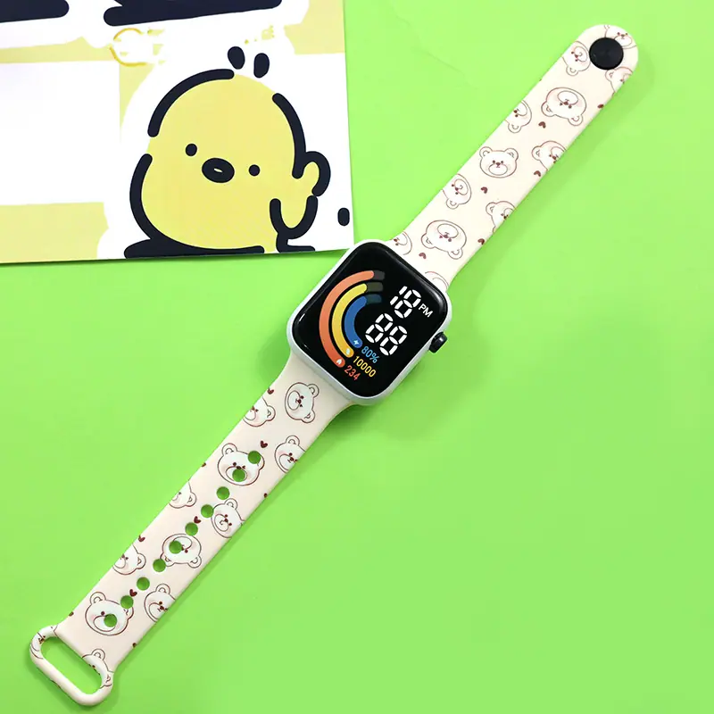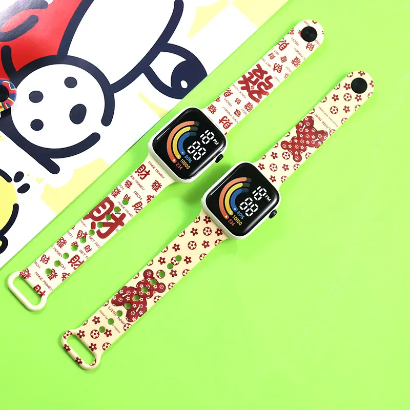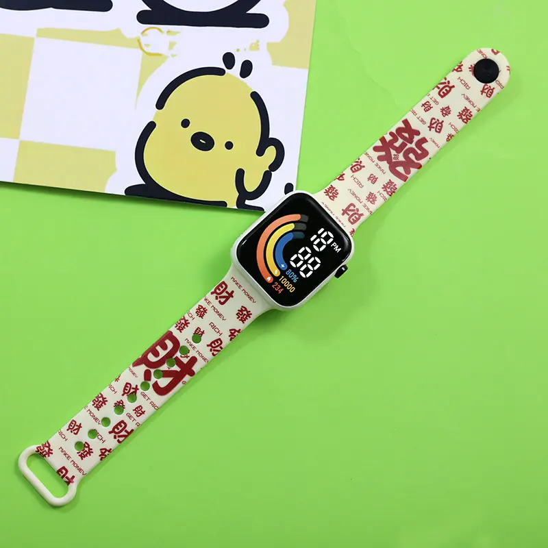 Reloj electrónico de impresión de comercio exterior caliente en vivo alto valor de color estudiantes exterior botón arcoíris pequeño cuadrado reloj electrónico al por mayor