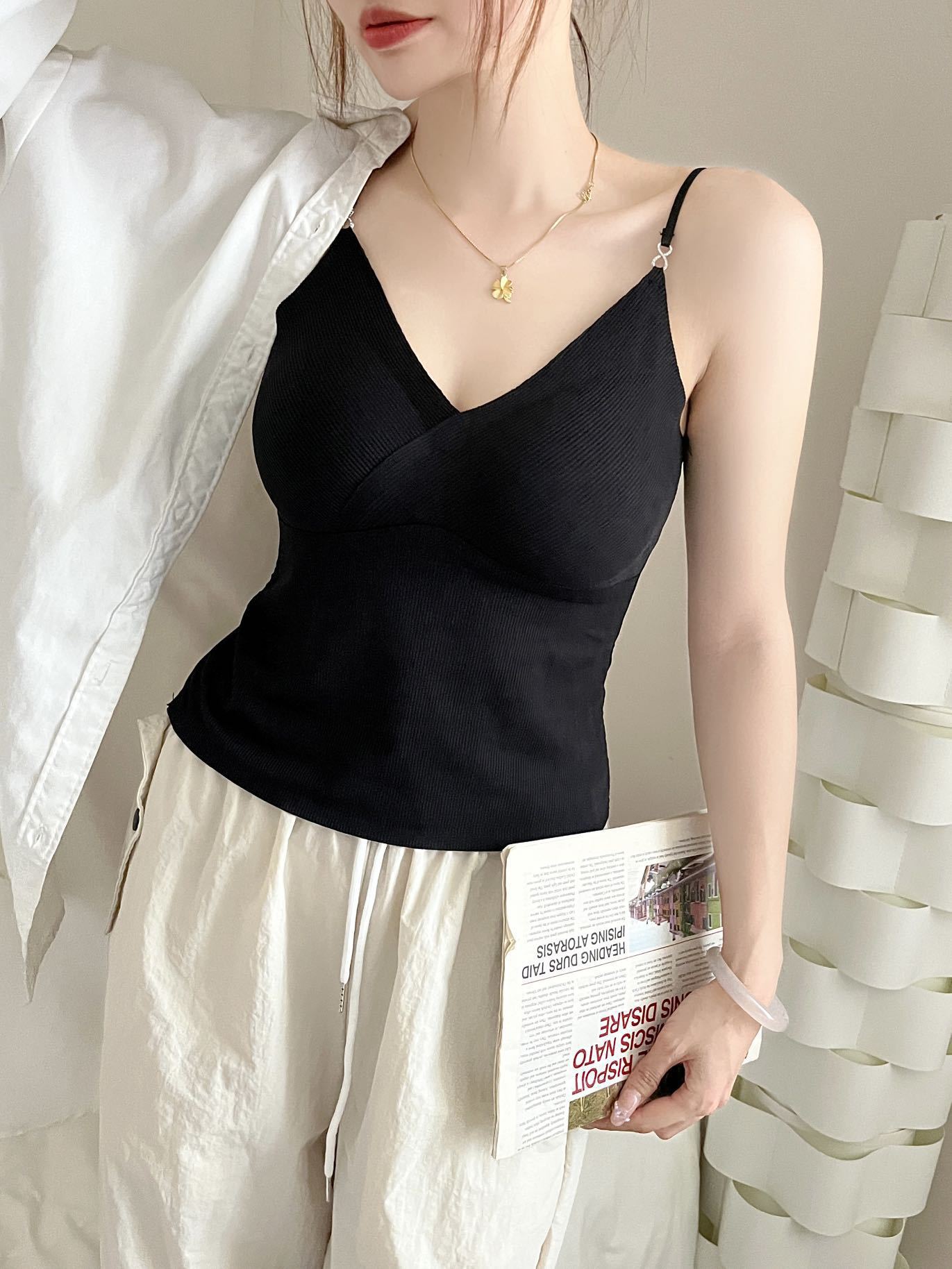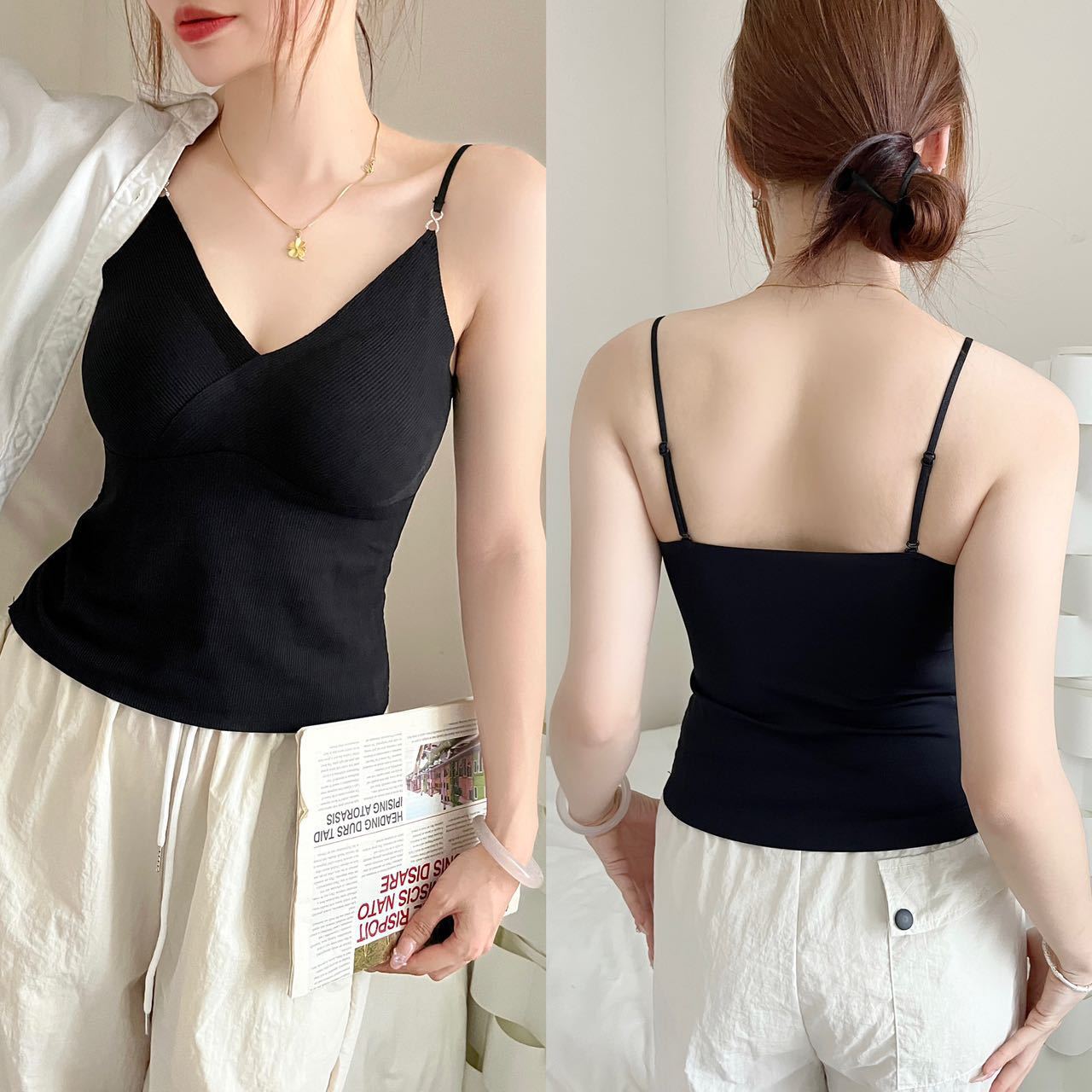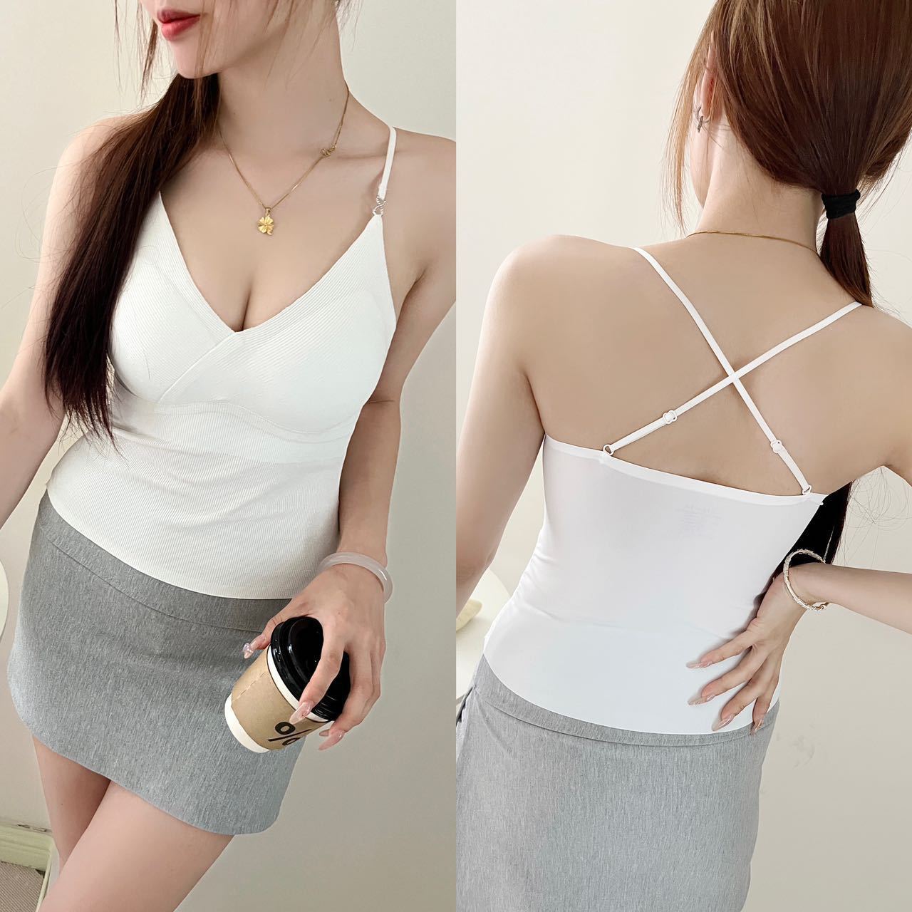 Compra 2024 Nuevo Estilo Americano Camisola Chaleco con Patrón Vertical para Uso Exterior con Almohadilla en el Pecho Sujetador de Espalda Hermosa Top Básico de Una Pieza para Mujer al por mayor en Joom.pro