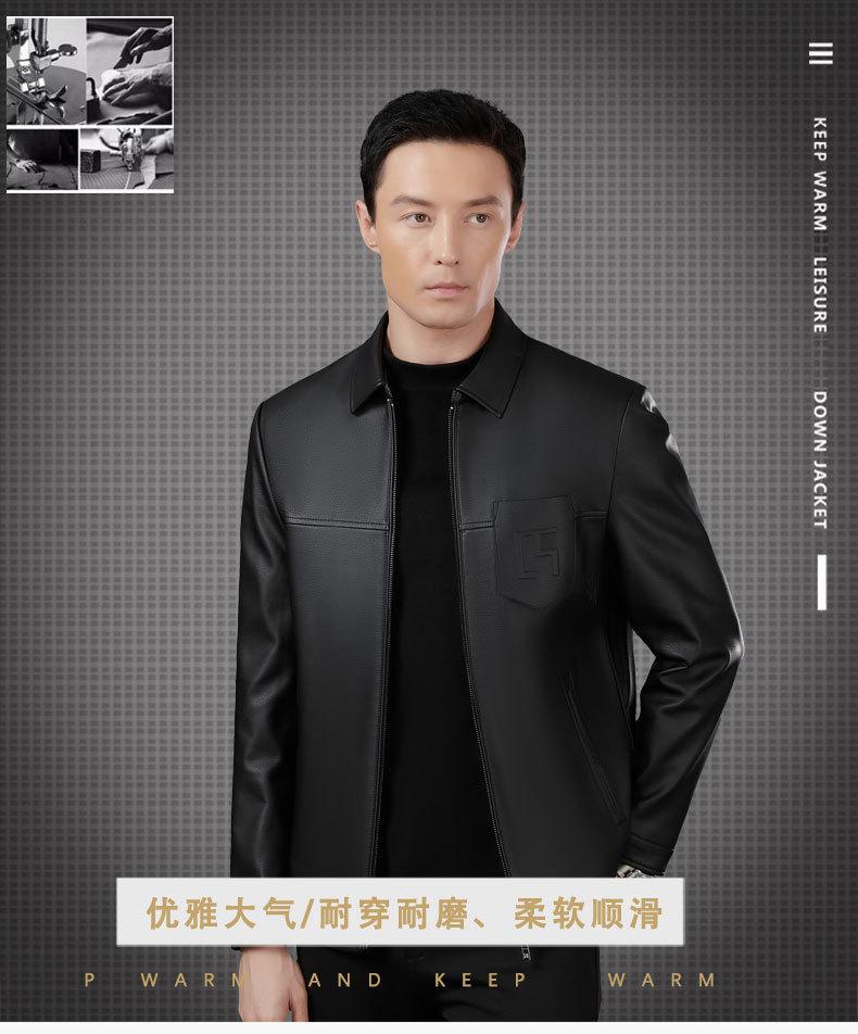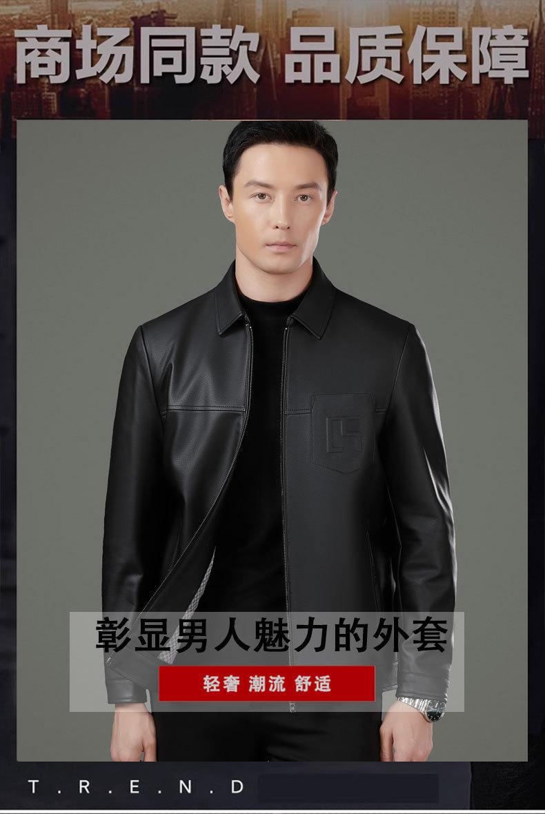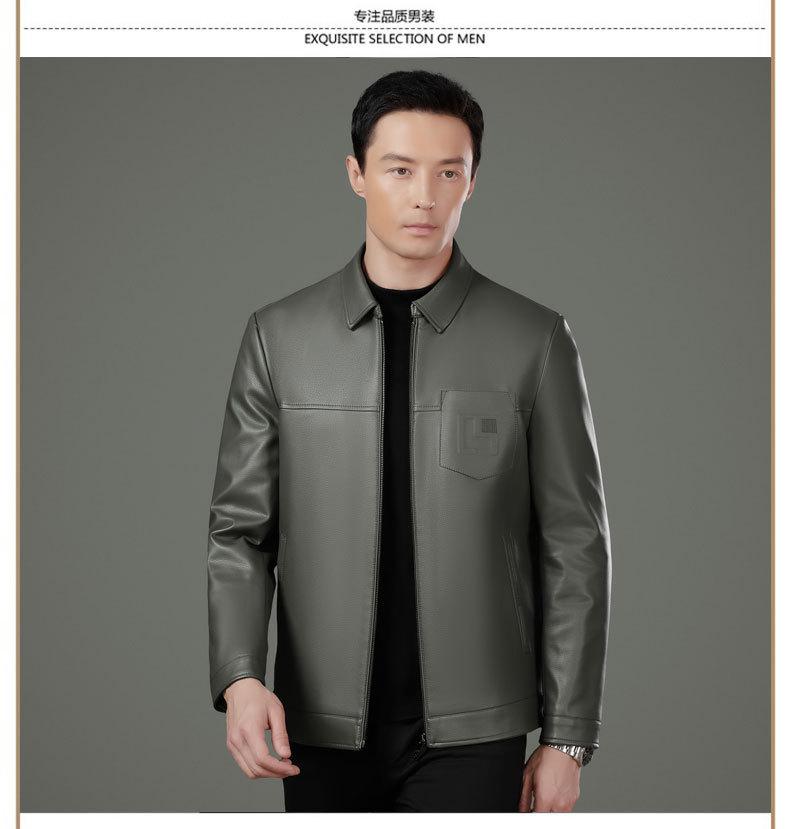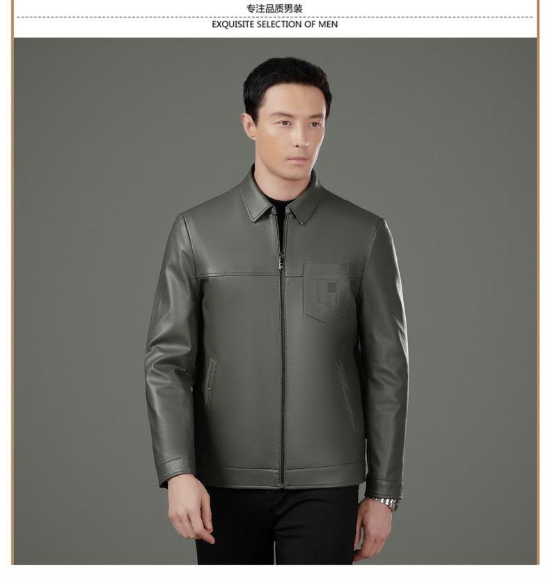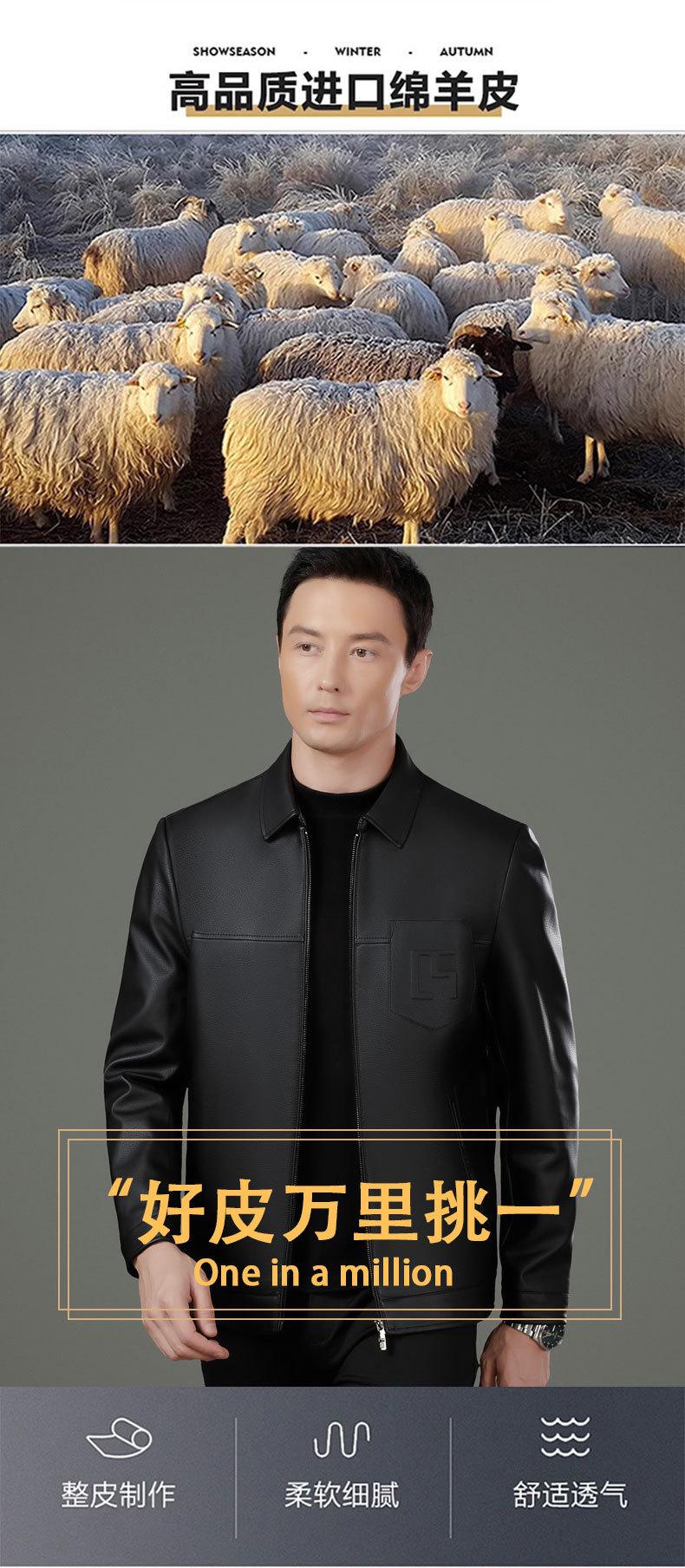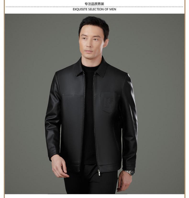 Chaqueta de Cuero para Hombre Haining Otoño Nueva Chaqueta de Piel de Oveja Casual para Hombre de Mediana Edad Ropa de Papá Abrigo de Cuero con Solapa