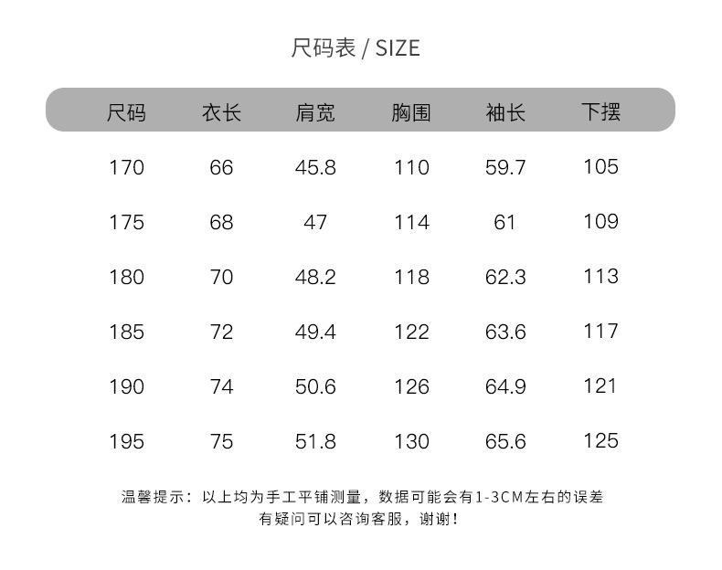 170/48, 175/50, 180/52, 185/54, 190/56, 195/58