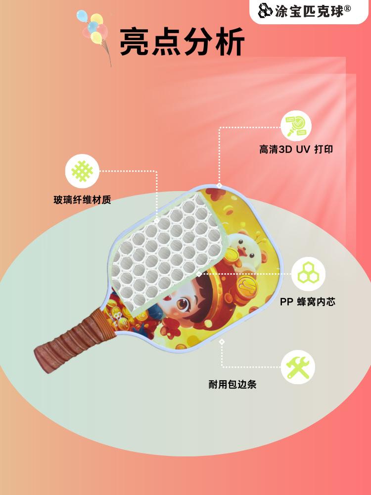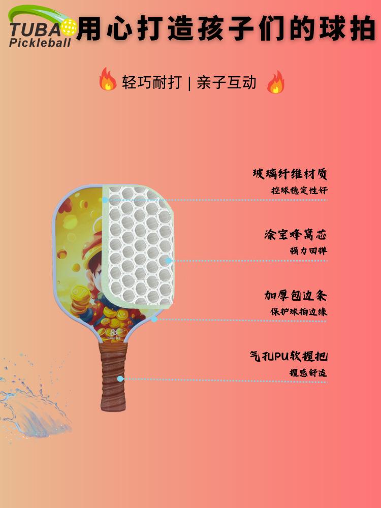 Paleta de Pickleball para Niños Fibra de Vidrio Estudiante Entrenamiento Padre-Hijo Competición Nivel Profesional Juego Completo