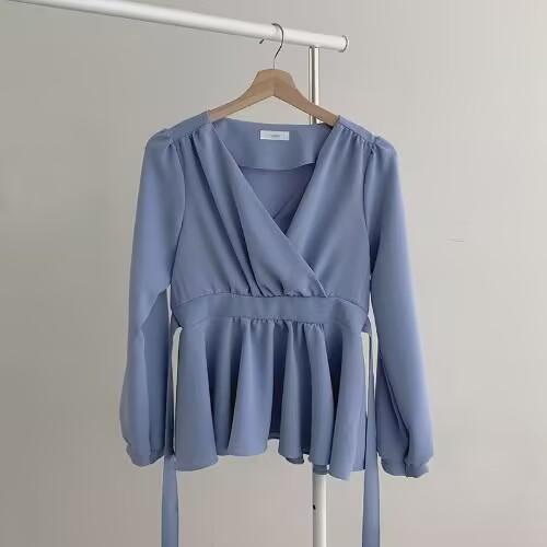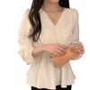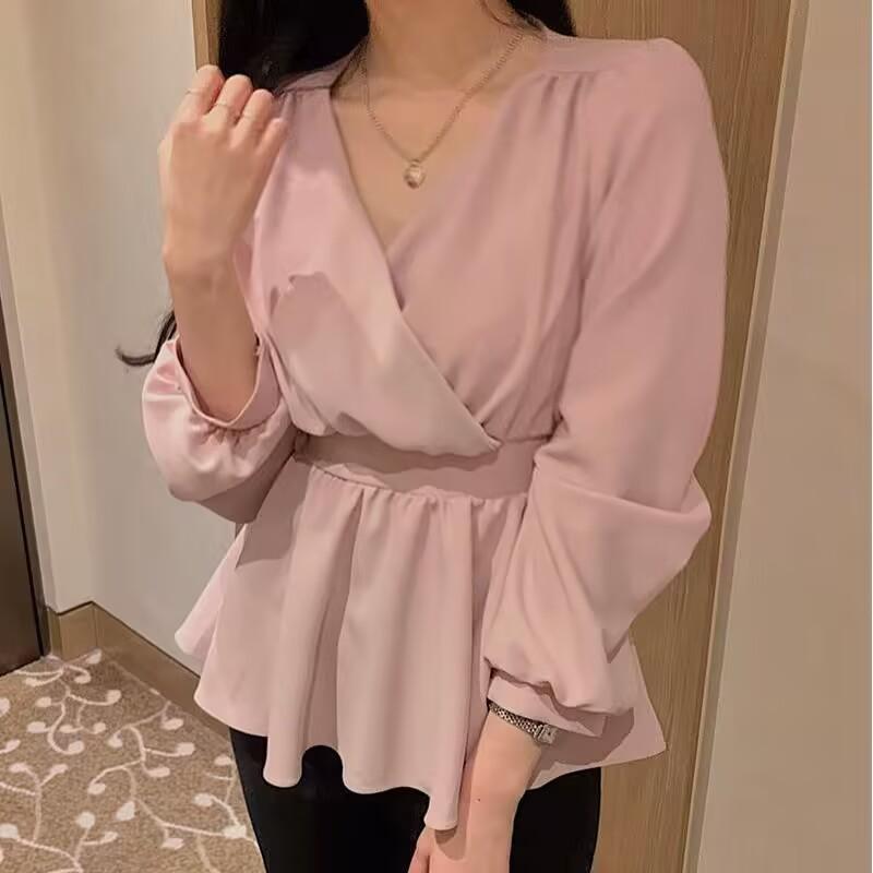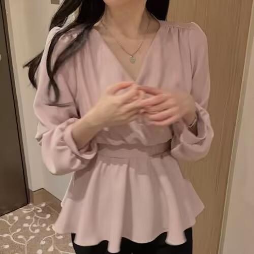 2025 Principios de Primavera Nuevo Elegante Cuello en V Súper de Hada Dulce Temperamento Ajustado con Lazo Camisa Top de Manga Larga