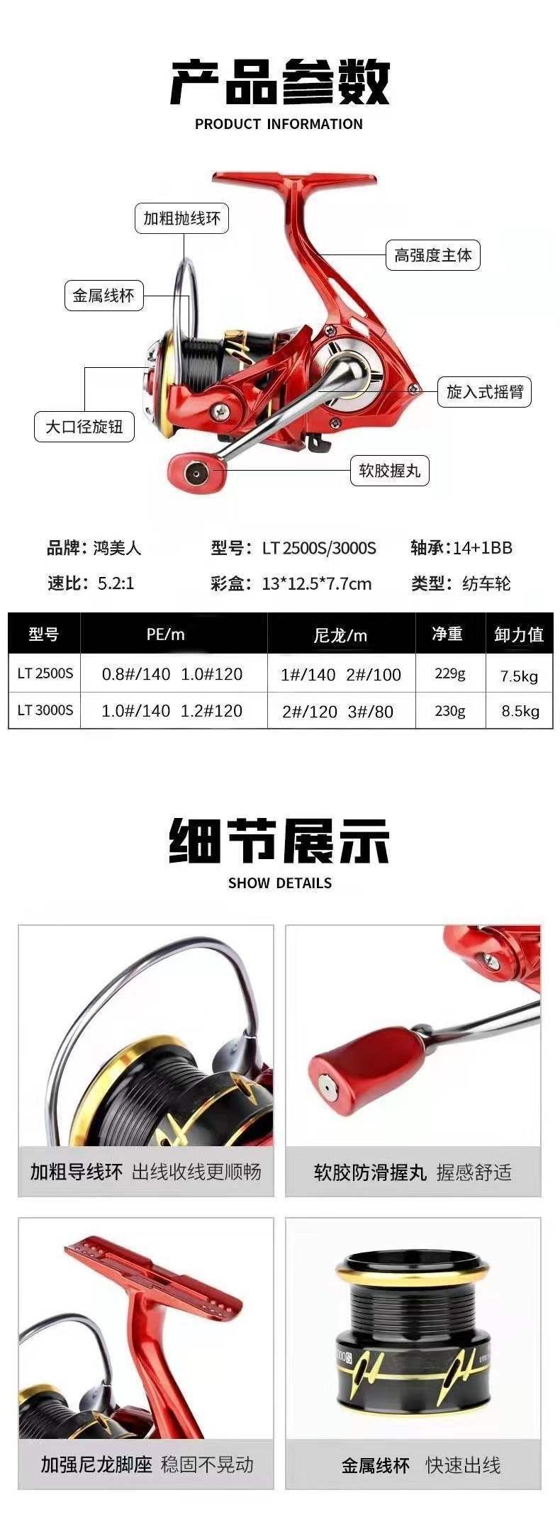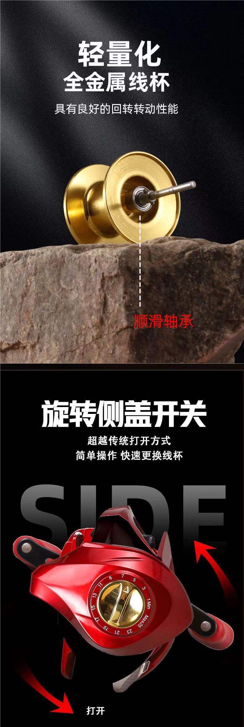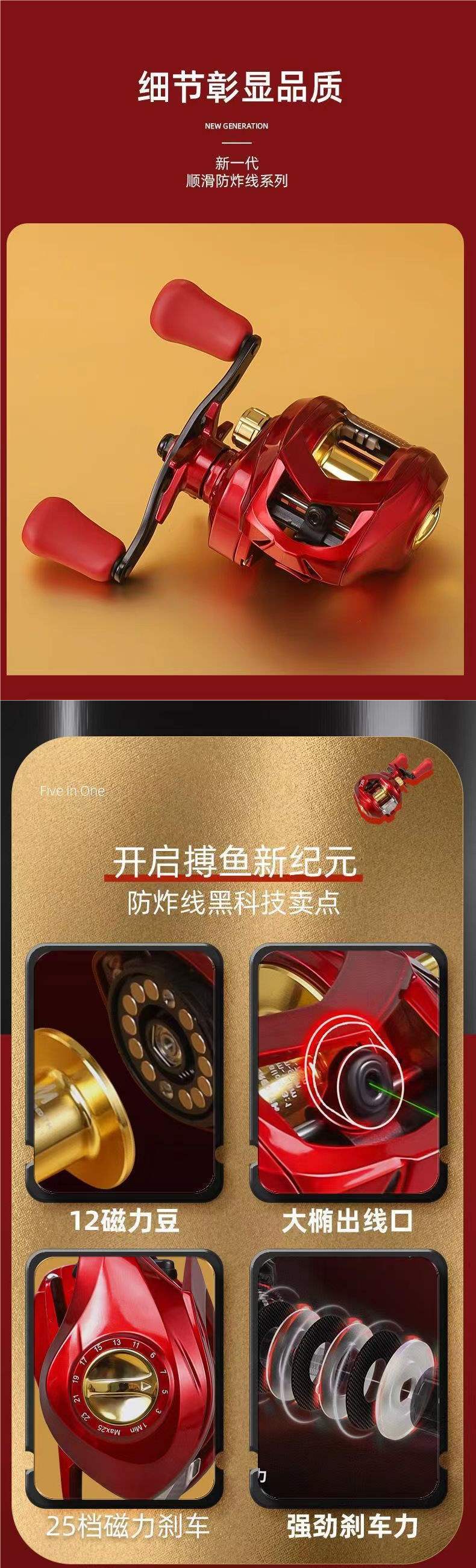 Carrete de Caída Venta Individual Todo Metal Rojo Carrete de Pesca Carrete de Caída Luya Carrete Giratorio