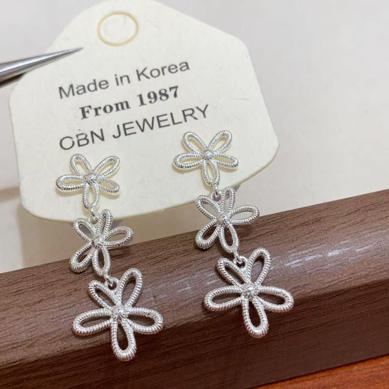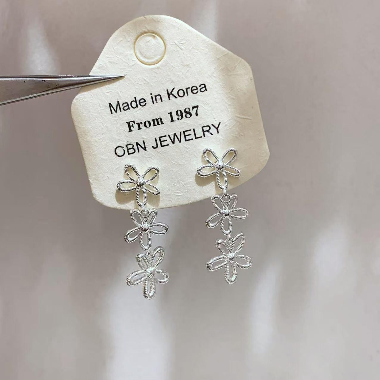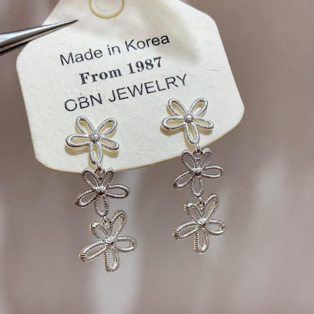 Aretes de Flores Huecas Múltiples para Mujer Aretes Simples de Alta Gama con Aguja de Plata Personalidad Nicho Temperamento Versátil Moda Europea y Americana