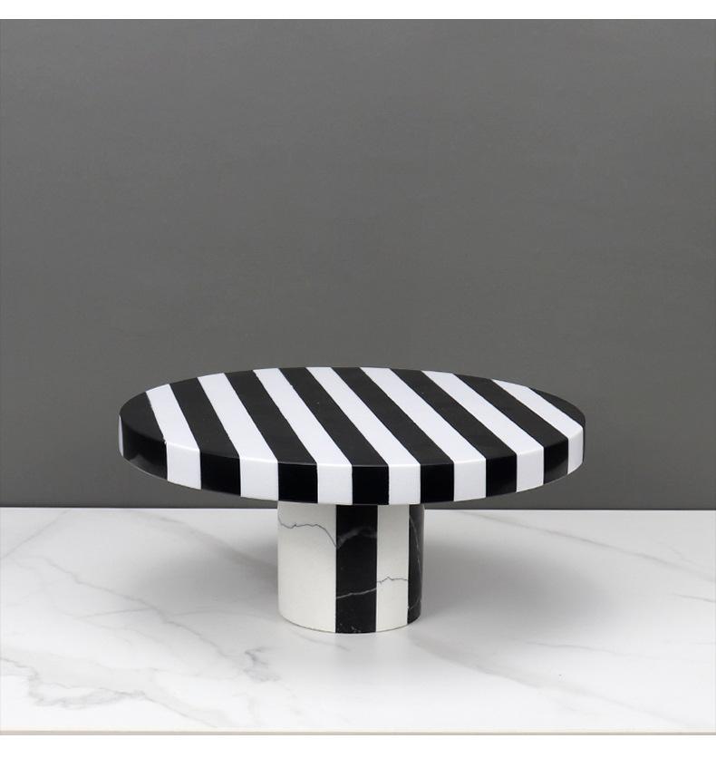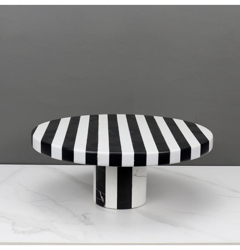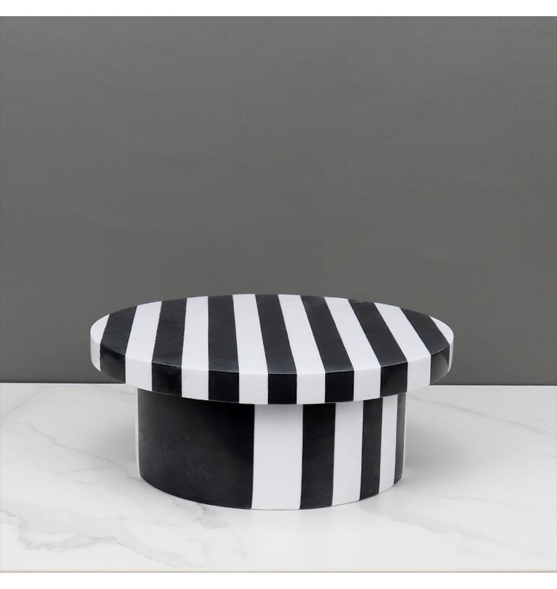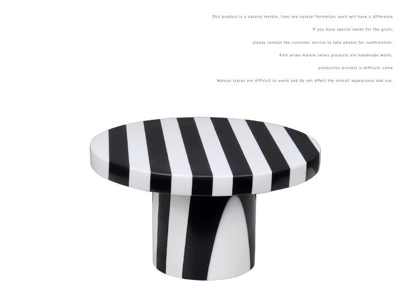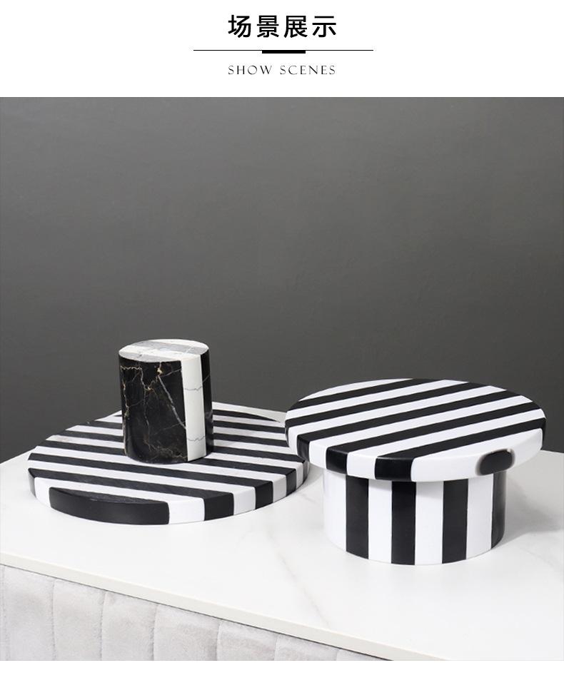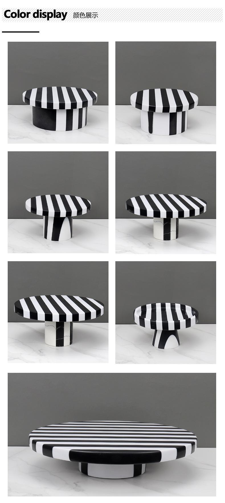 Bandeja Redonda Patchwork de Mármol a Rayas Blanco y Negro Minimalista Moderno Piso Muestra Hogar Sala de Estar Mesa de Centro Adorno de Escritorio