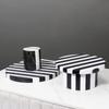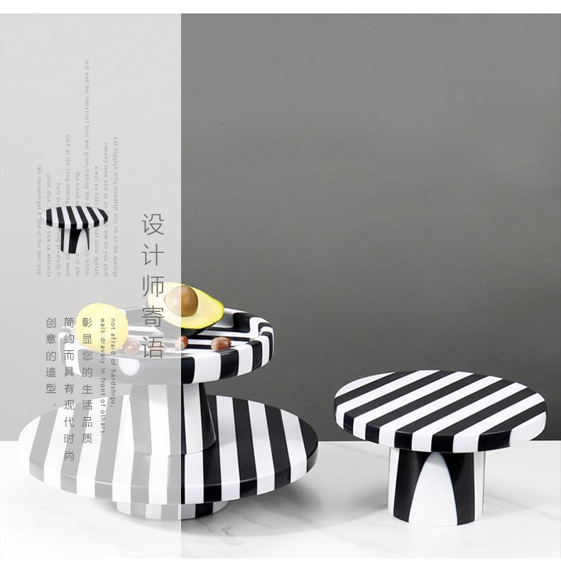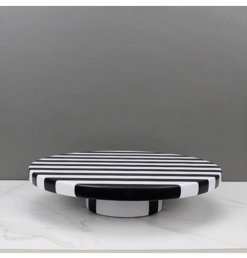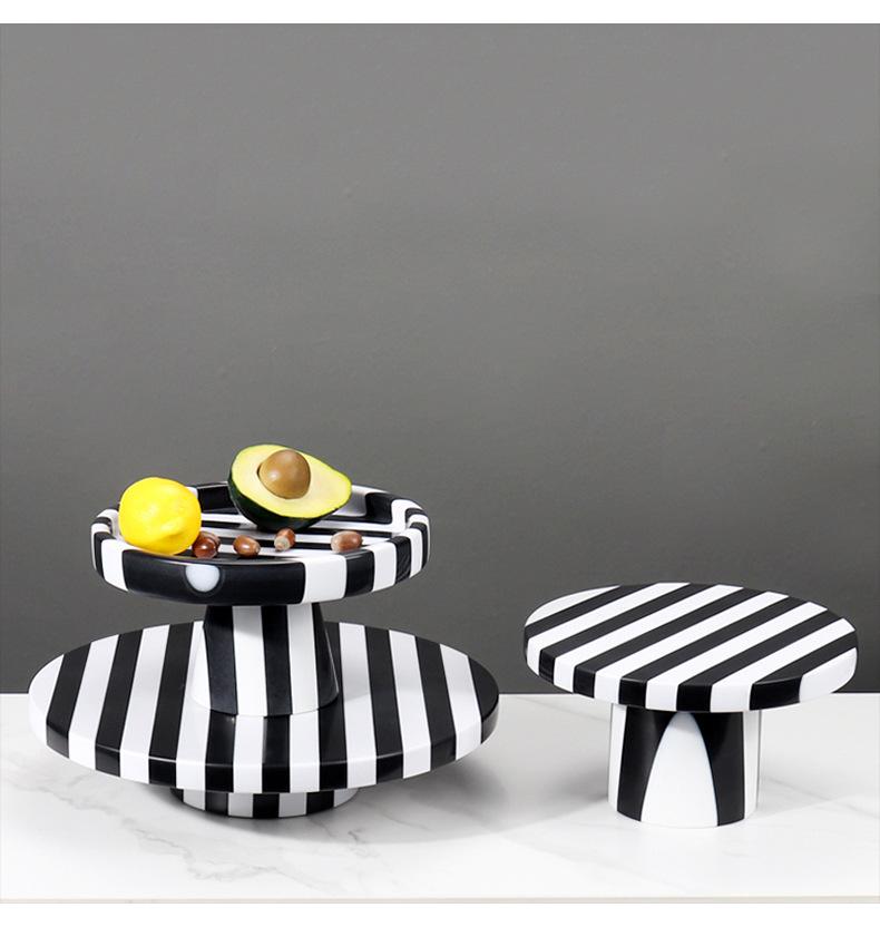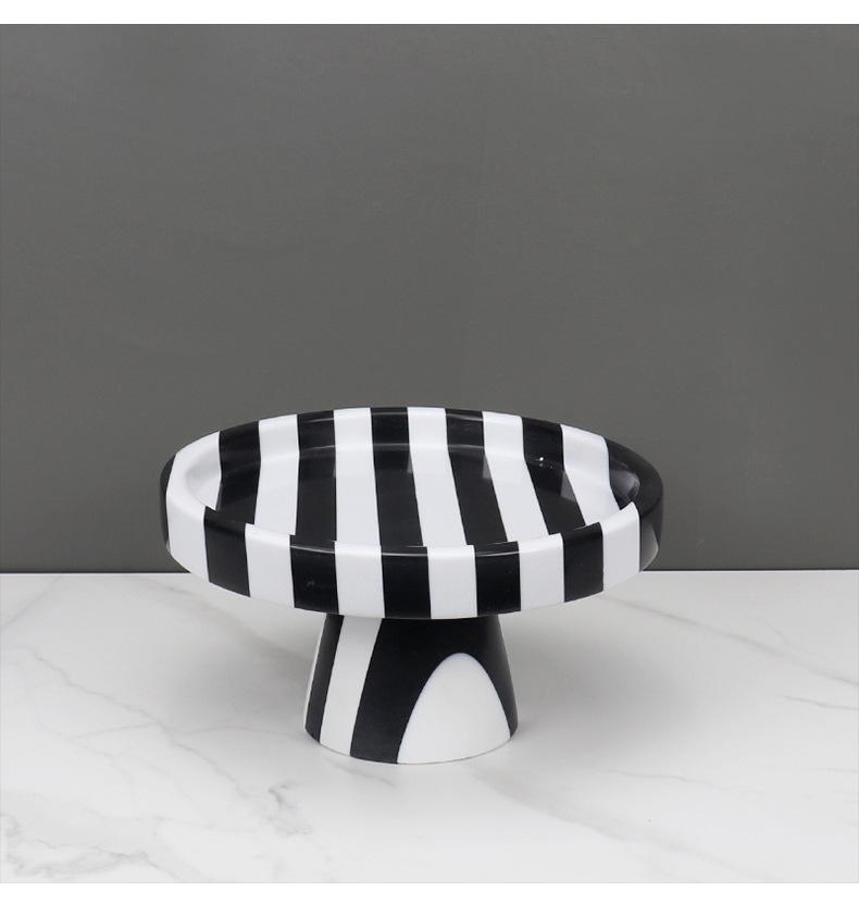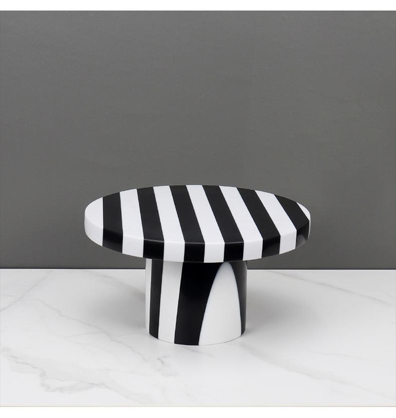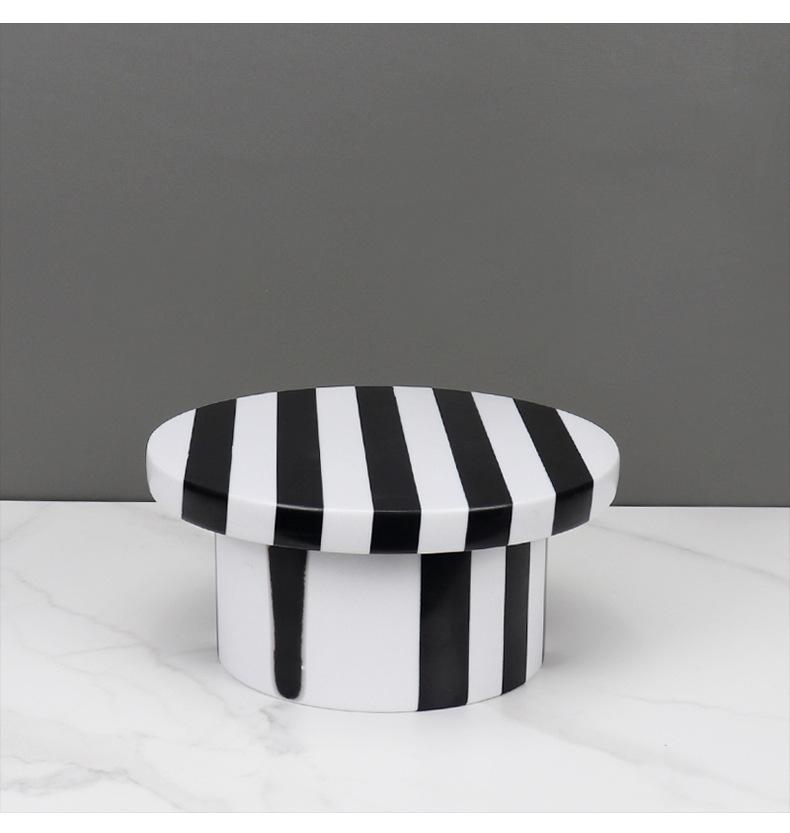 Bandeja Redonda Patchwork de Mármol a Rayas Blanco y Negro Minimalista Moderno Piso Muestra Hogar Sala de Estar Mesa de Centro Adorno de Escritorio