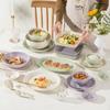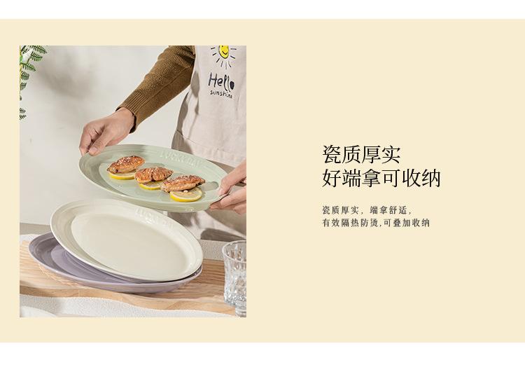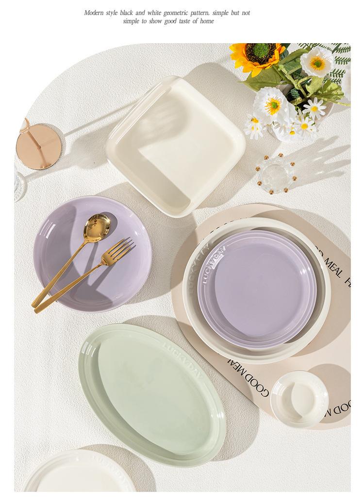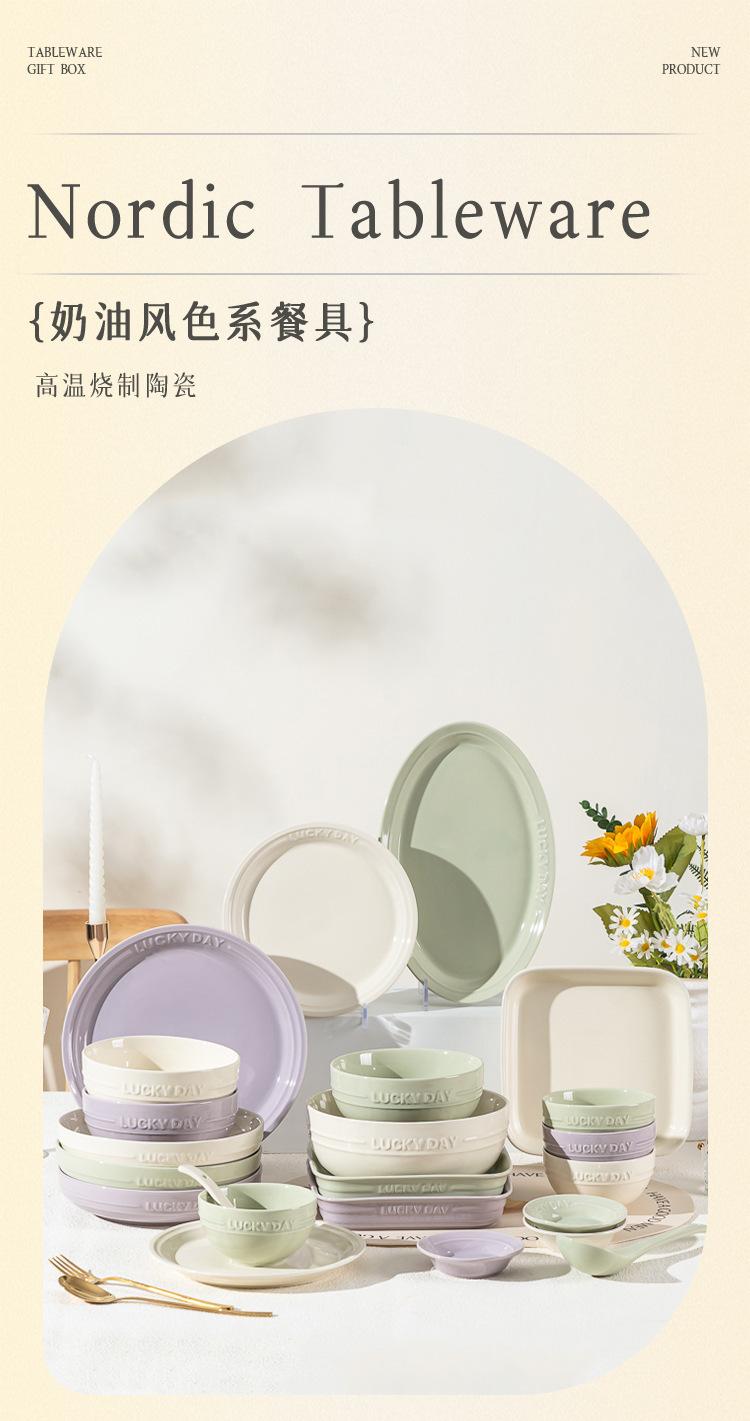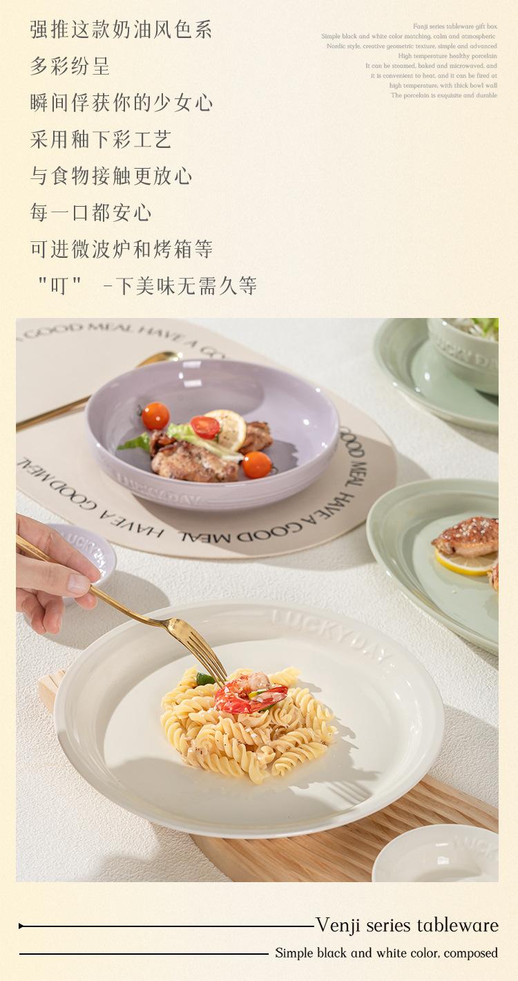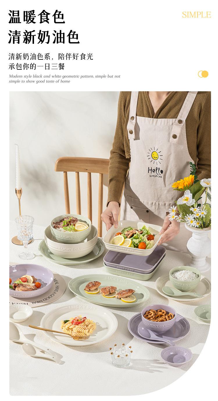 Vajilla de cerámica de color bajo vidriado de estilo japonés para el hogar, tazón de arroz, plato de pescado, plato de condimentos, cuchara, tazón de sopa, letra simple en relieve