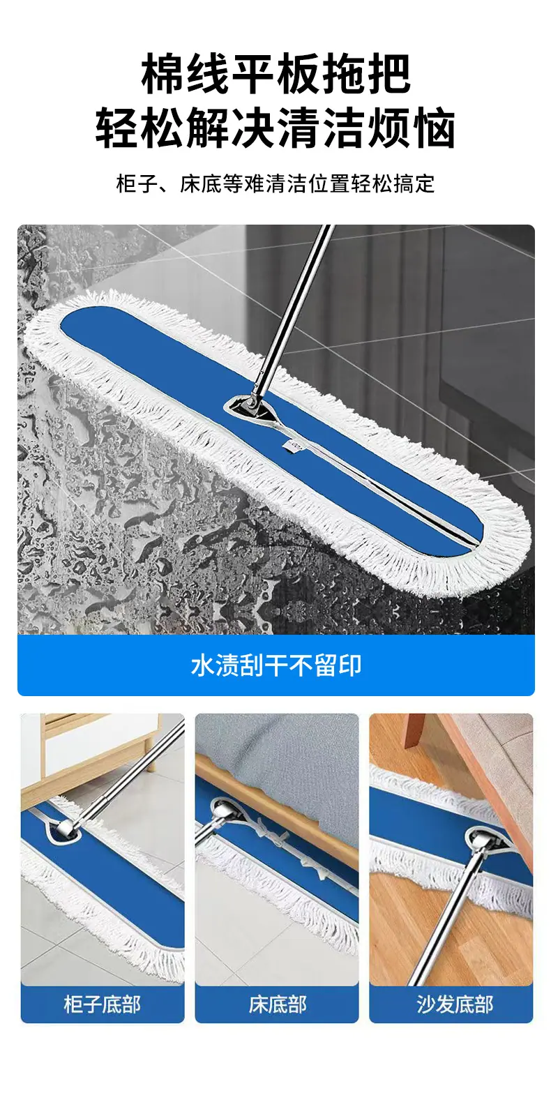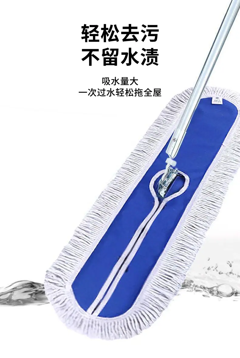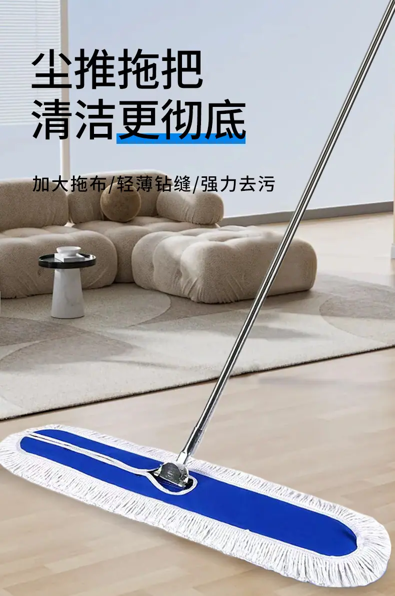 Blue 90cm complete set of dust push mop (with stainless steel pole)