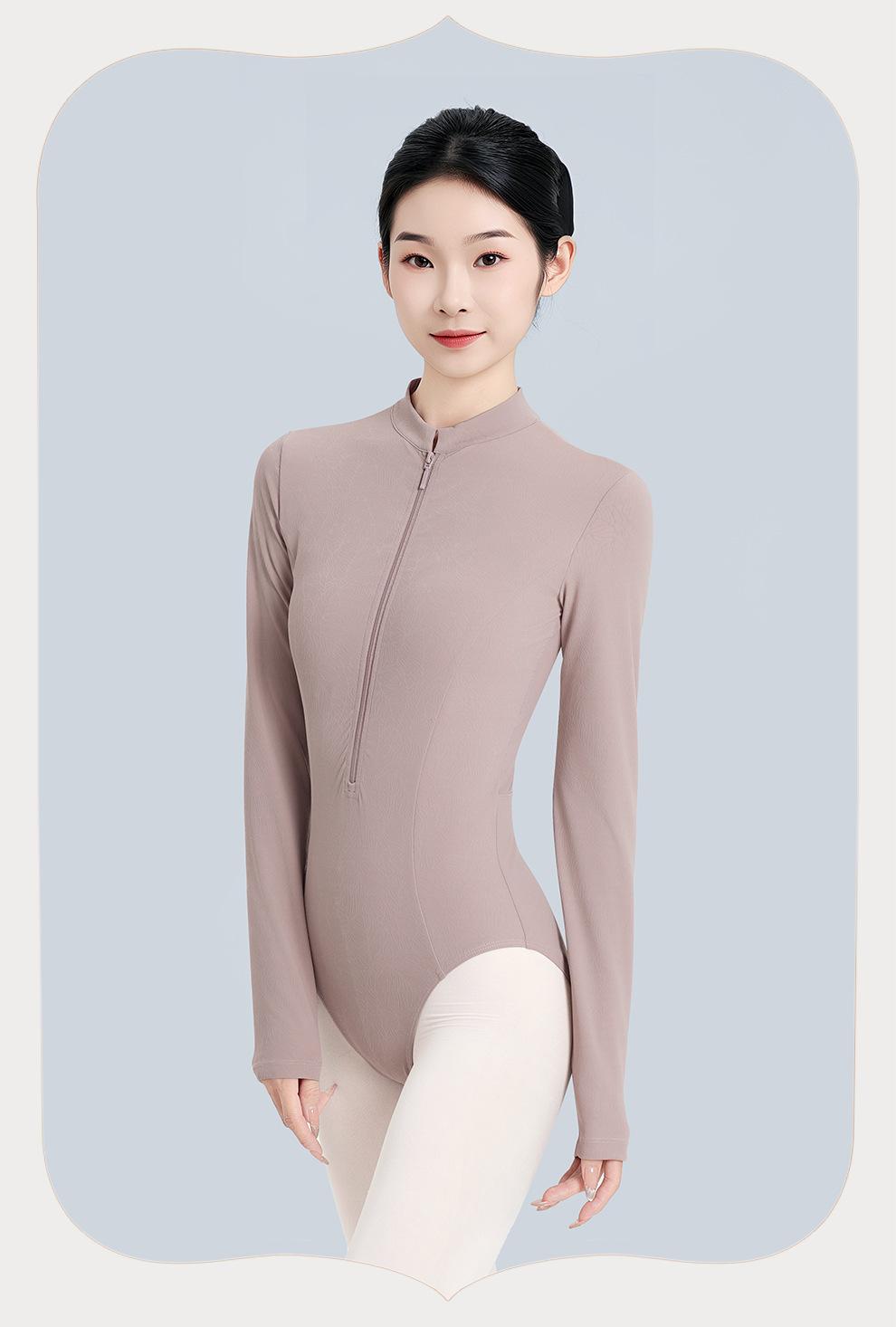 Ropa de Yoga Mujer Adulto Otoño Manga Larga Ropa de Baile Ballet Patinaje Artístico Ropa de Danza China Cuello Alto Cremallera Maillot de Gimnasia