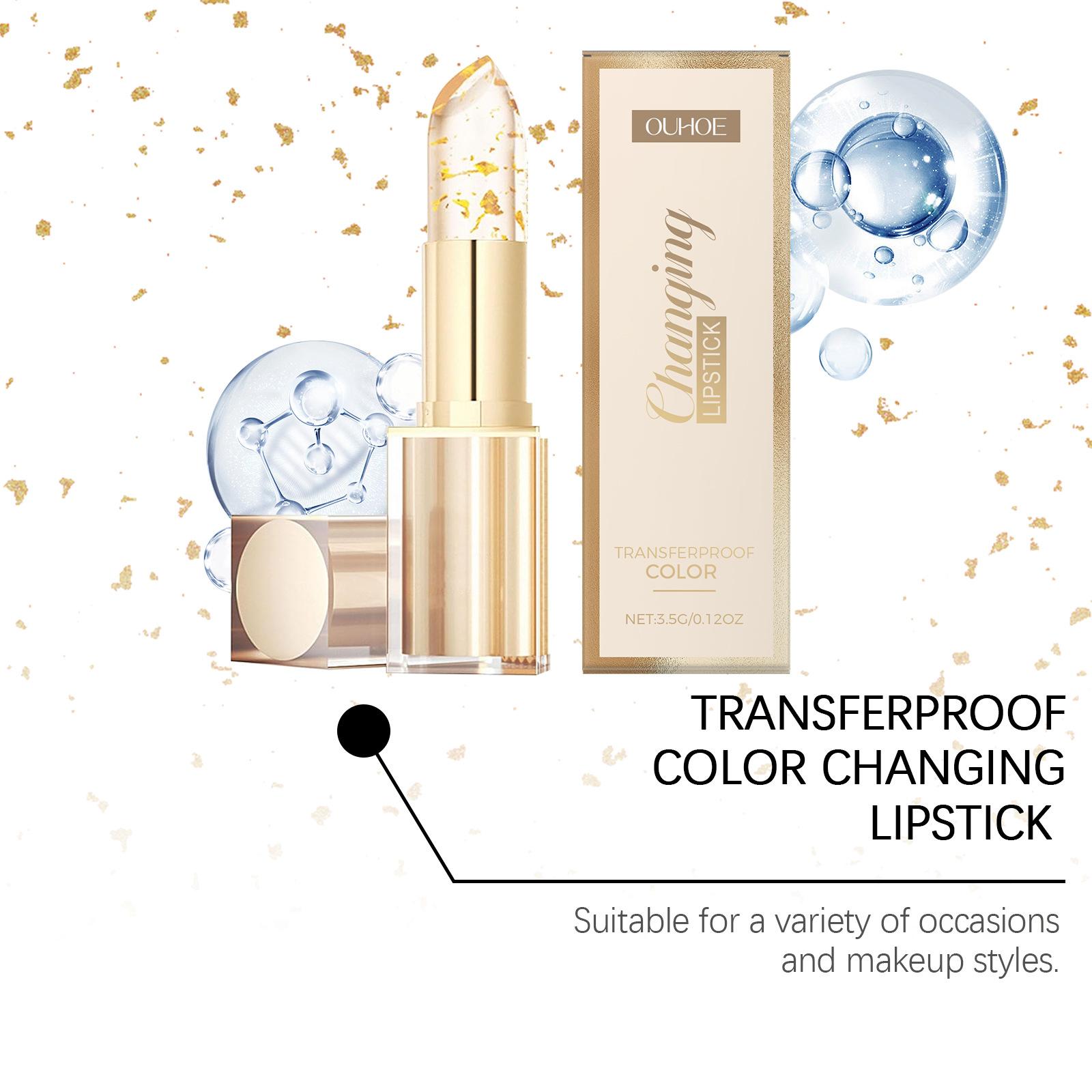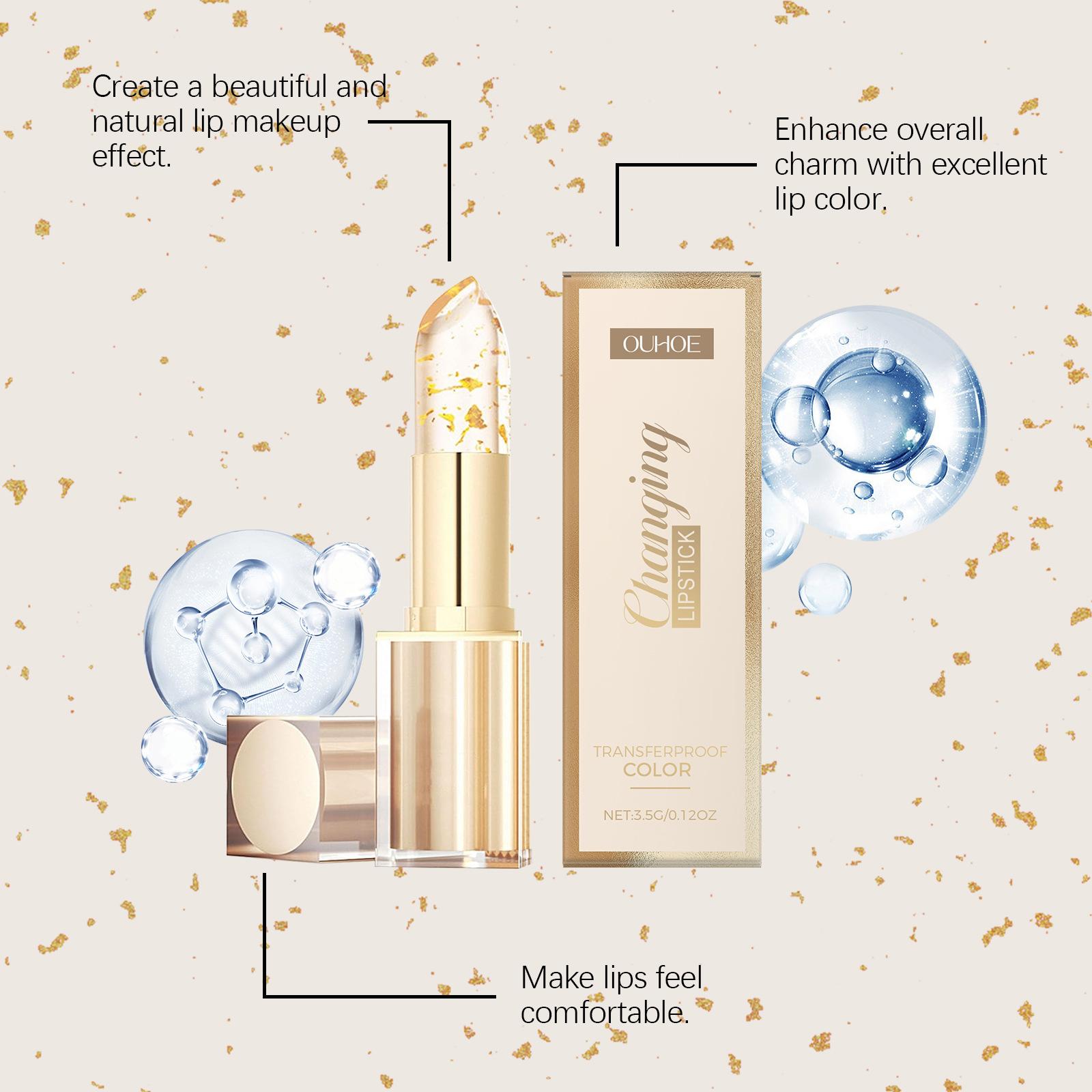 Ouhoe Labial Nutritivo Cambiante de Color con Lámina de Oro Nutritivo Hidratante Agua Ligera Cristal Suave Piel de Labios Labial No Grasoso