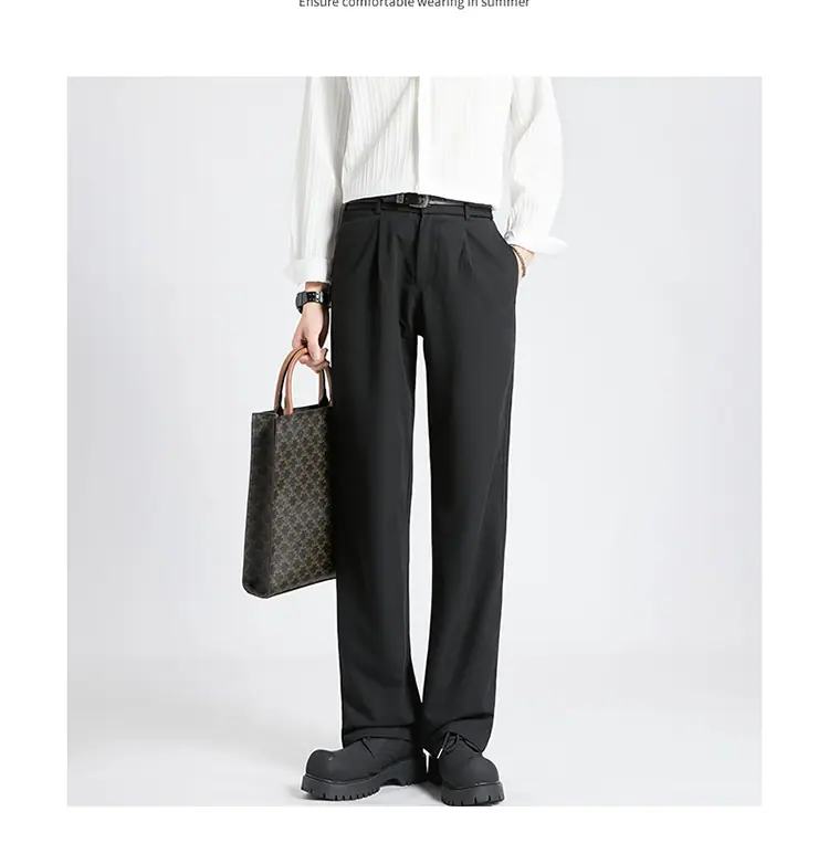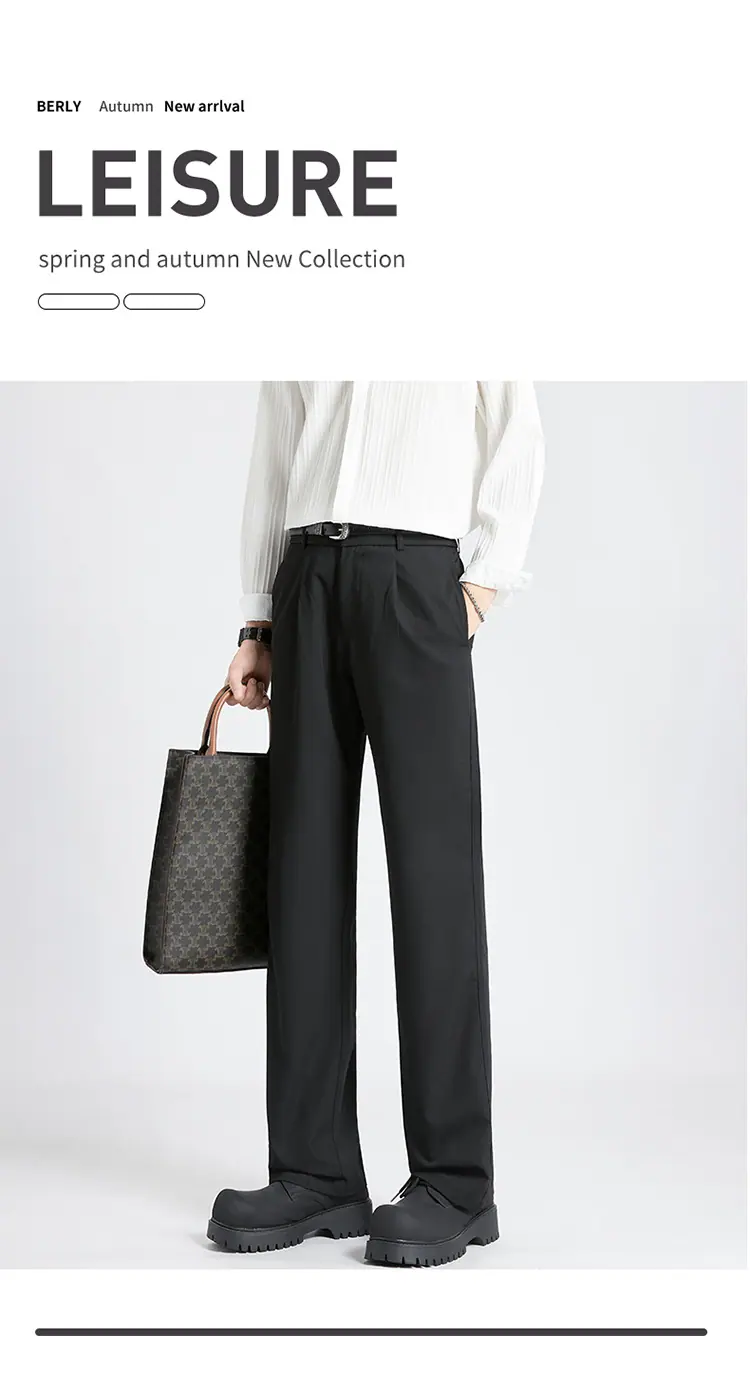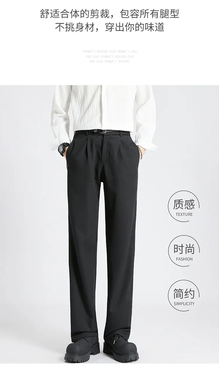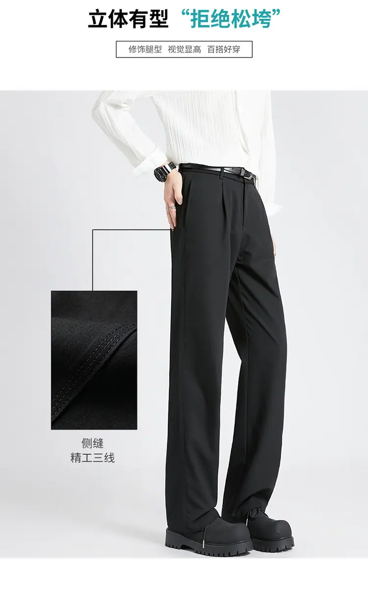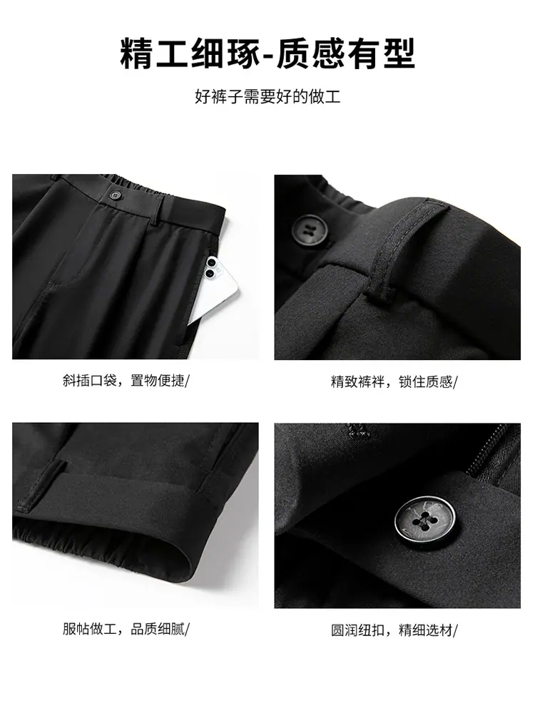 Pantalones de Traje Business Casual de Otoño Temprano para Hombre, Pantalones Resistentes a las Arrugas que No Necesitan Planchado, Pierna Recta, Ropa Formal de Negocios, Pantalones Largos Negros