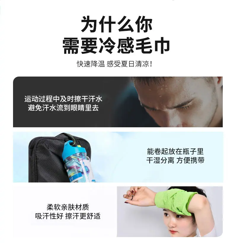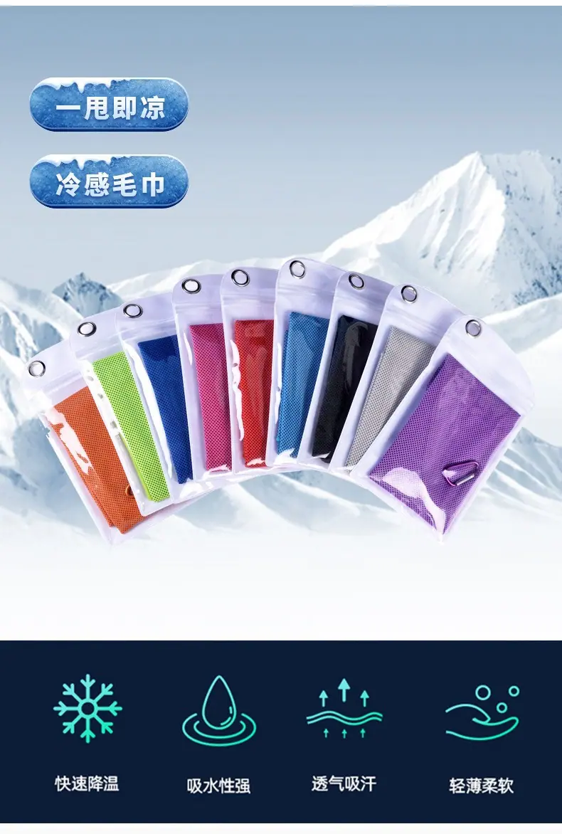 Toalla fría de alta calidad de secado rápido transfronteriza, toalla de hielo, toalla de hielo de verano, bolsa para senderismo al aire libre, toalla deportiva, toalla para el sudor