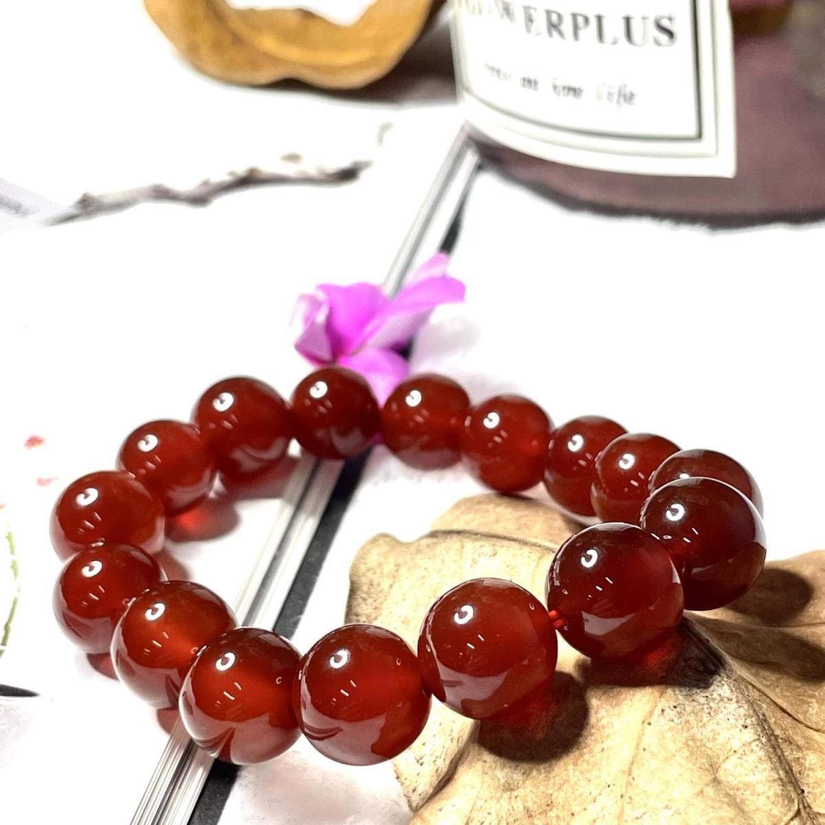 Pulsera de Ágata Roja Natural de una Sola Vuelta, Pulsera de Joyería de Ágata Roja al por Mayor, Modelo para Pareja Simple y Elegante, Suministro Directo del Fabricante