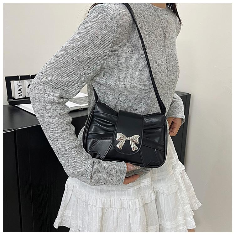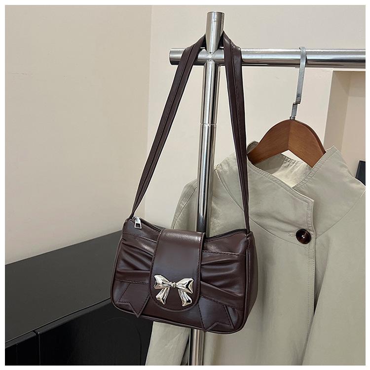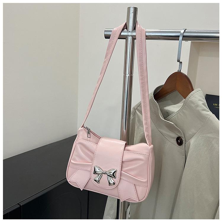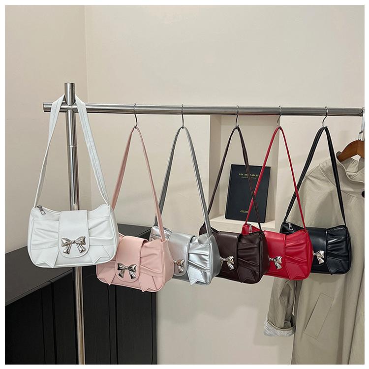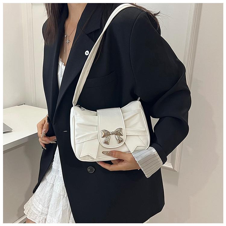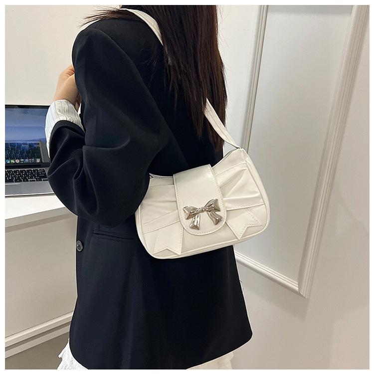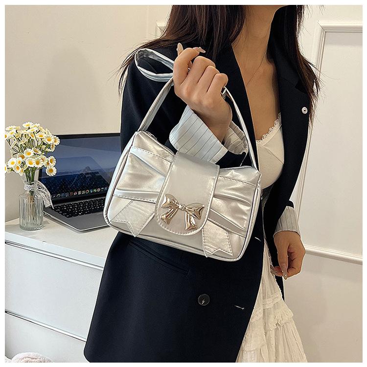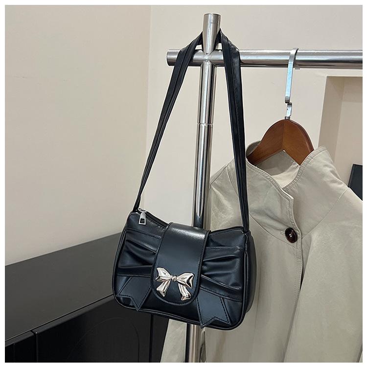 Bolso de Hombro Único Plisado Estilo Coreano con Lazo para Mujer 2025 Primavera y Verano Nuevo Versátil Bolso de Axila Ins para Mujer
