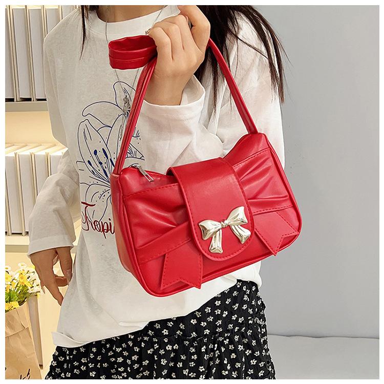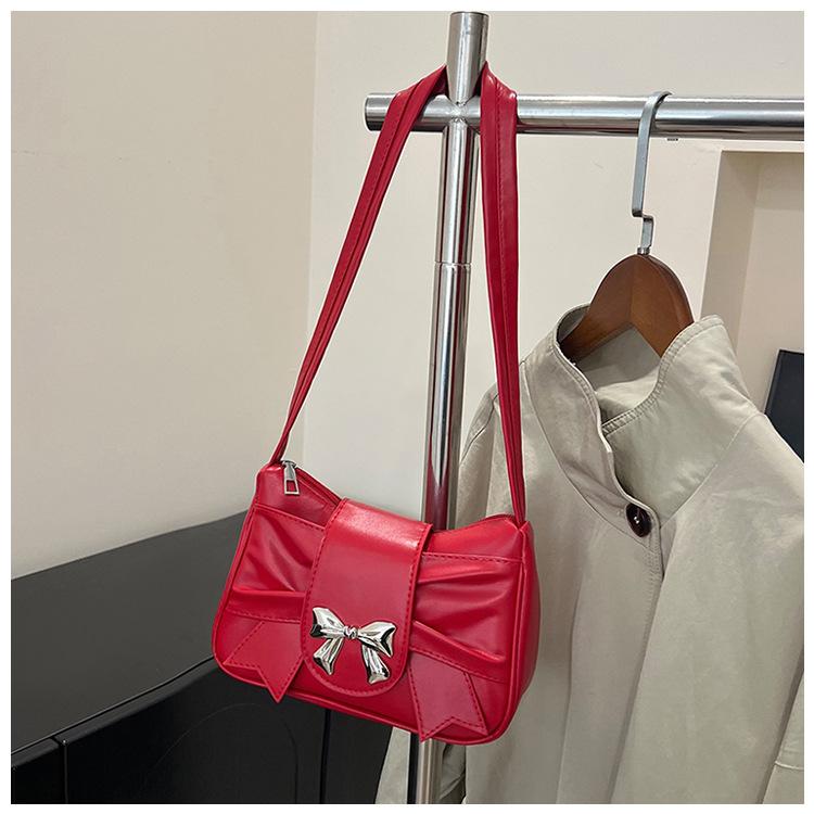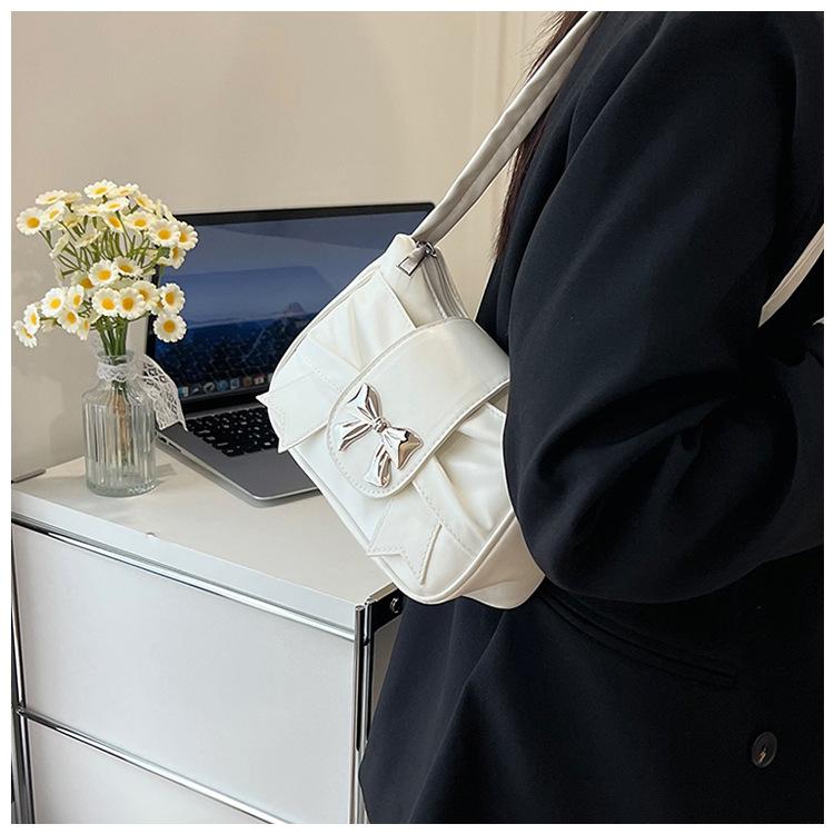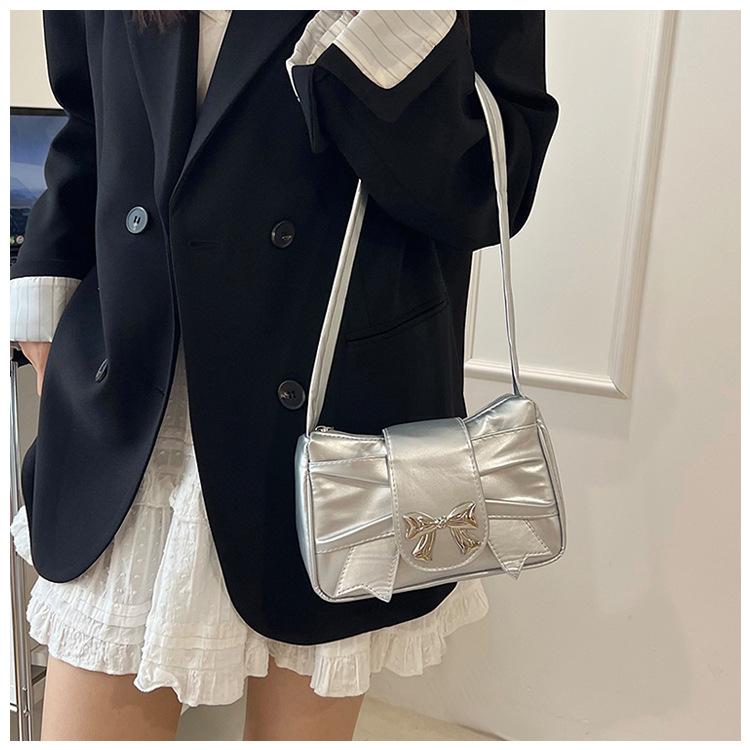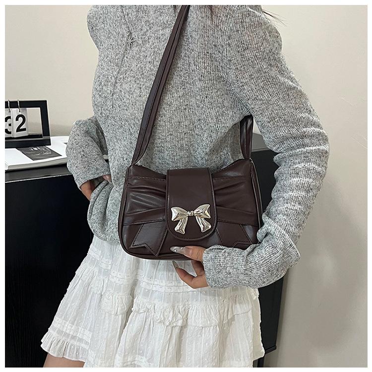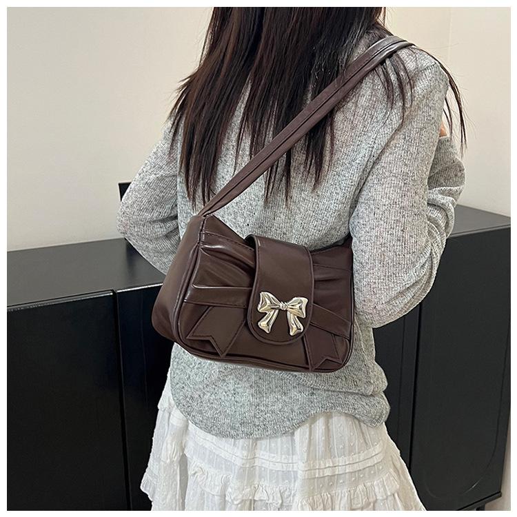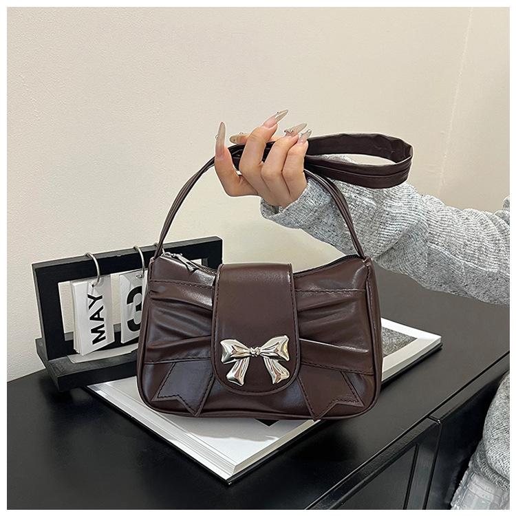 Bolso de Hombro Único Plisado Estilo Coreano con Lazo para Mujer 2025 Primavera y Verano Nuevo Versátil Bolso de Axila Ins para Mujer